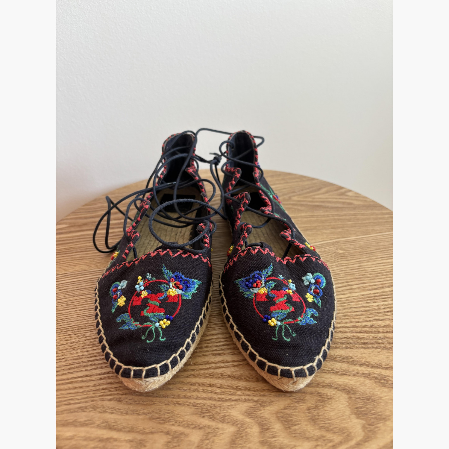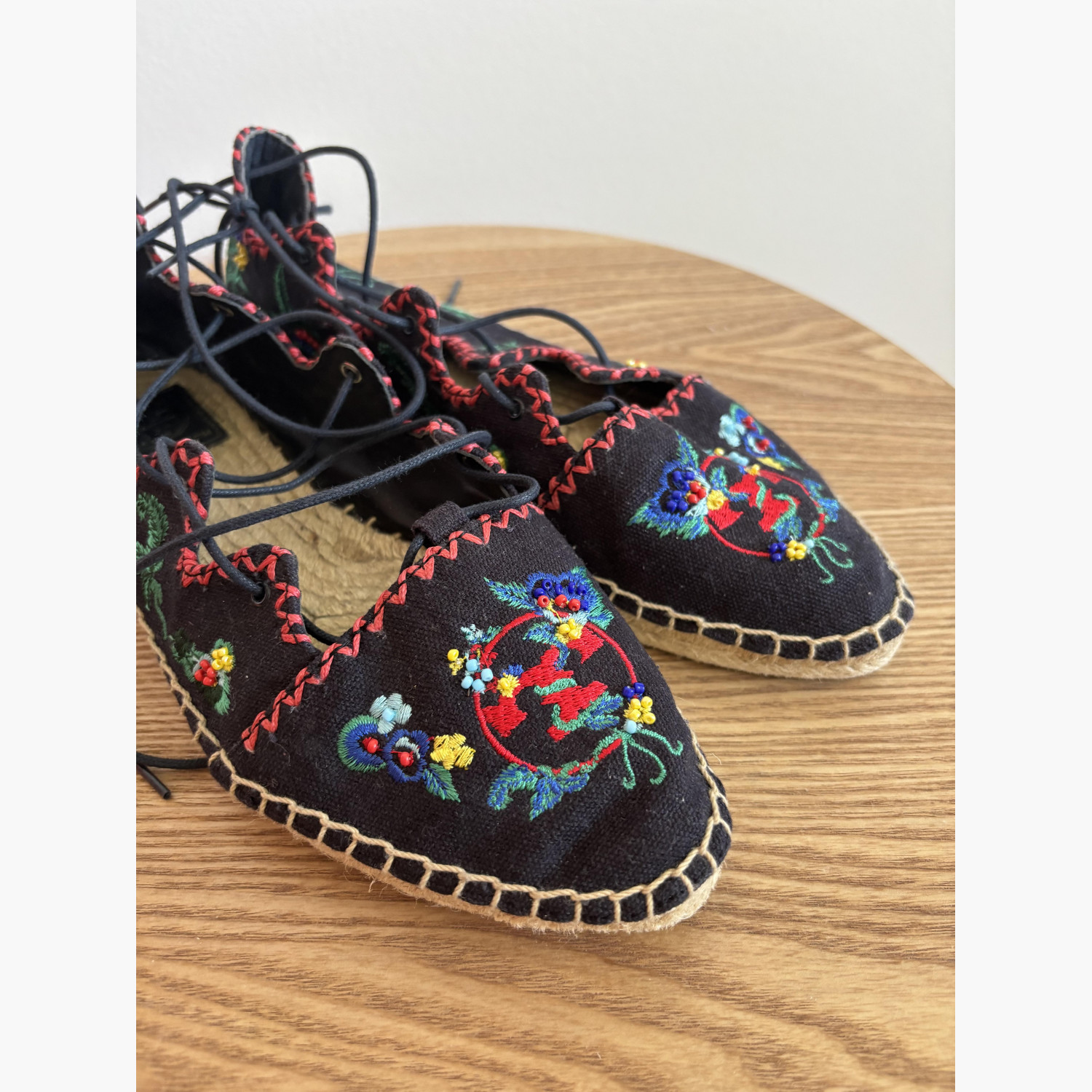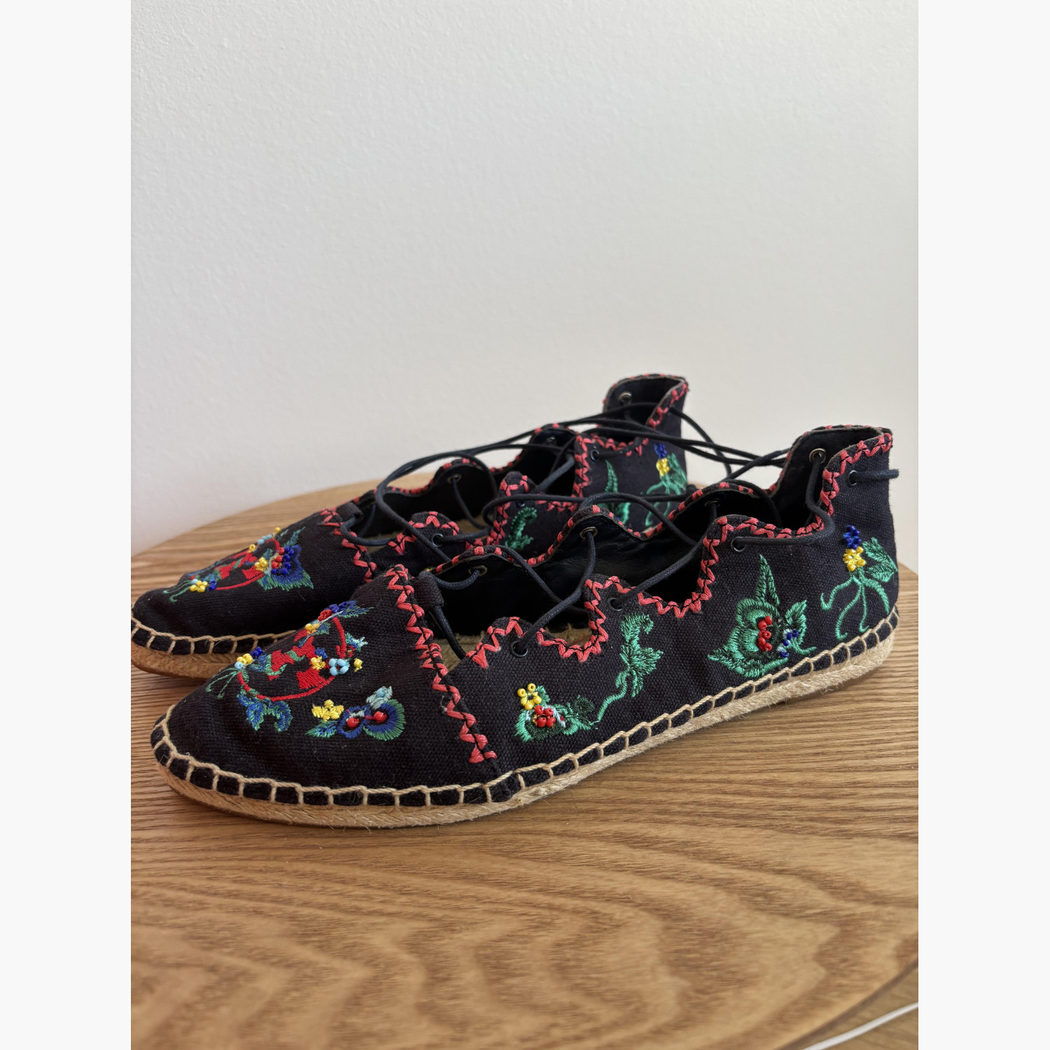 Эспадрильи с вышивкой. Модель в насыщенном тёмно-синем цвете. Сзади — мягкая кожаная вставка на пятке для дополнительного комфорта и элегантного вида.