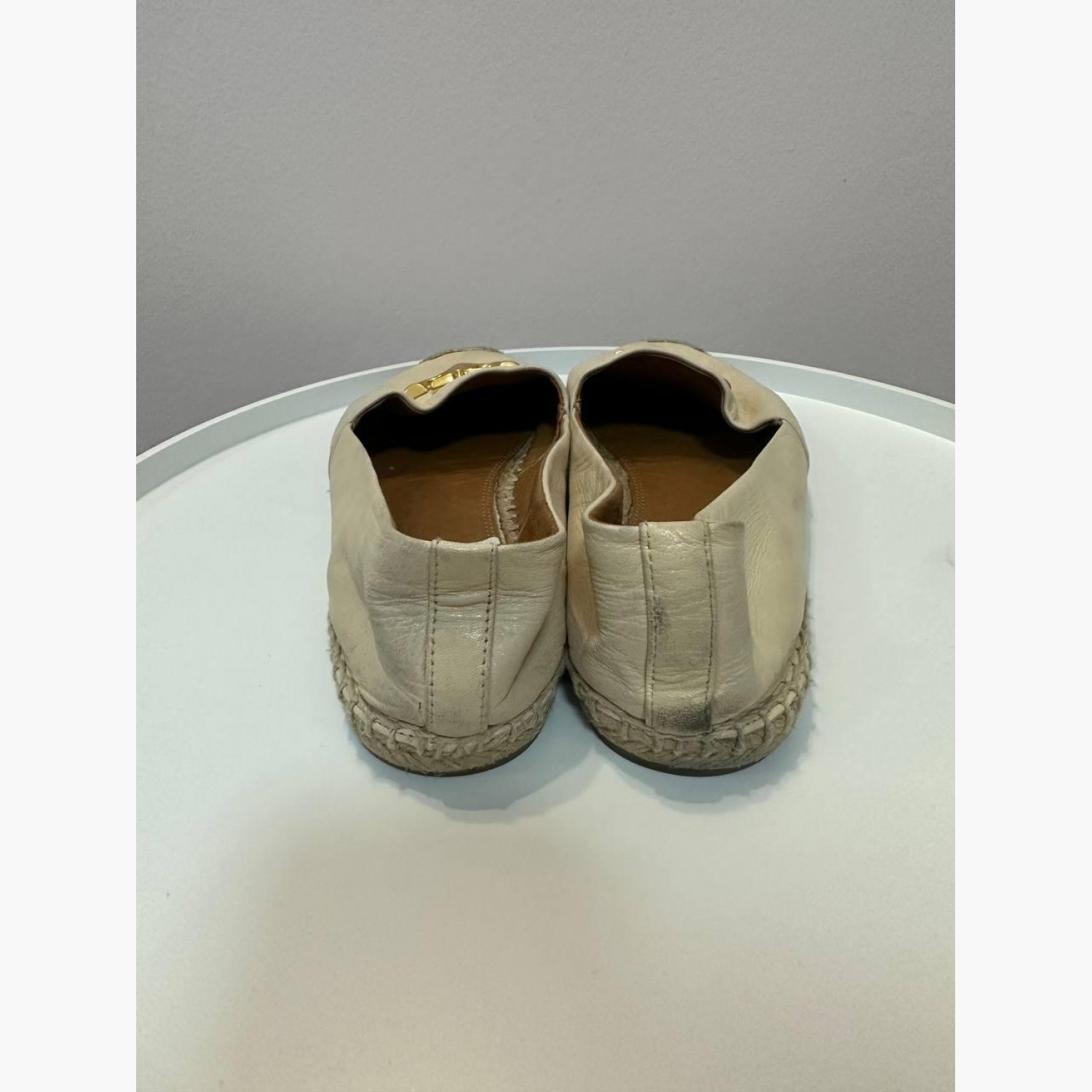 Кожаные эспадрильи в отличном состоянии. Не были в носке, но имеют незначительный дефект в виде потертости на коже.