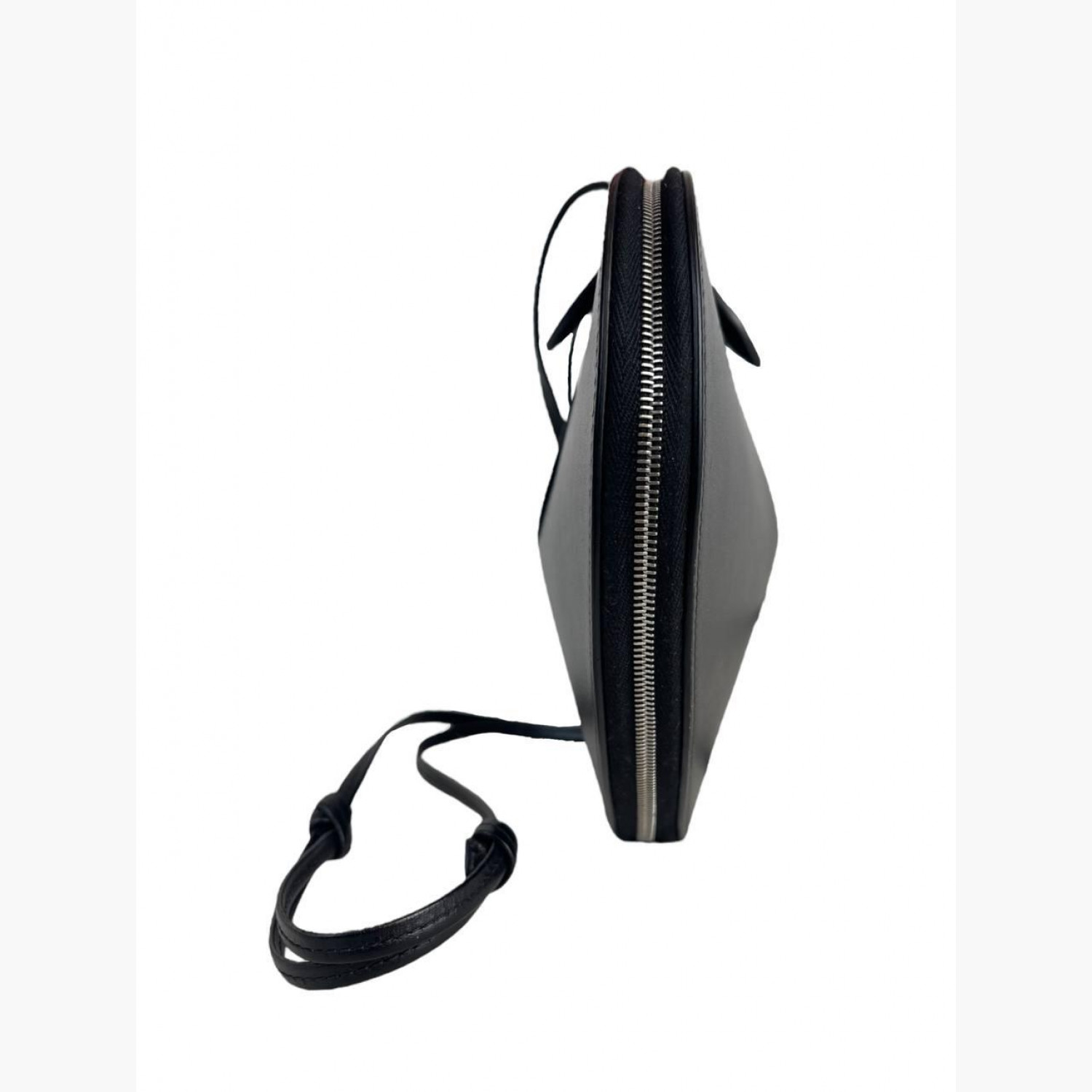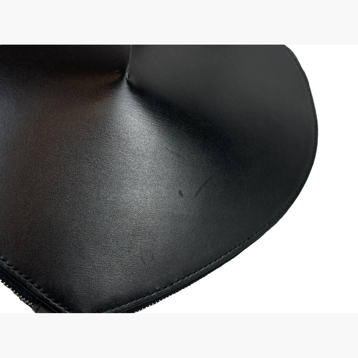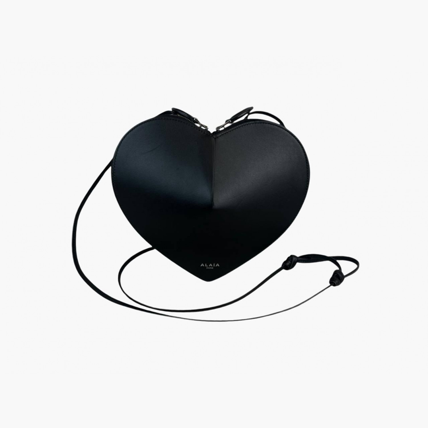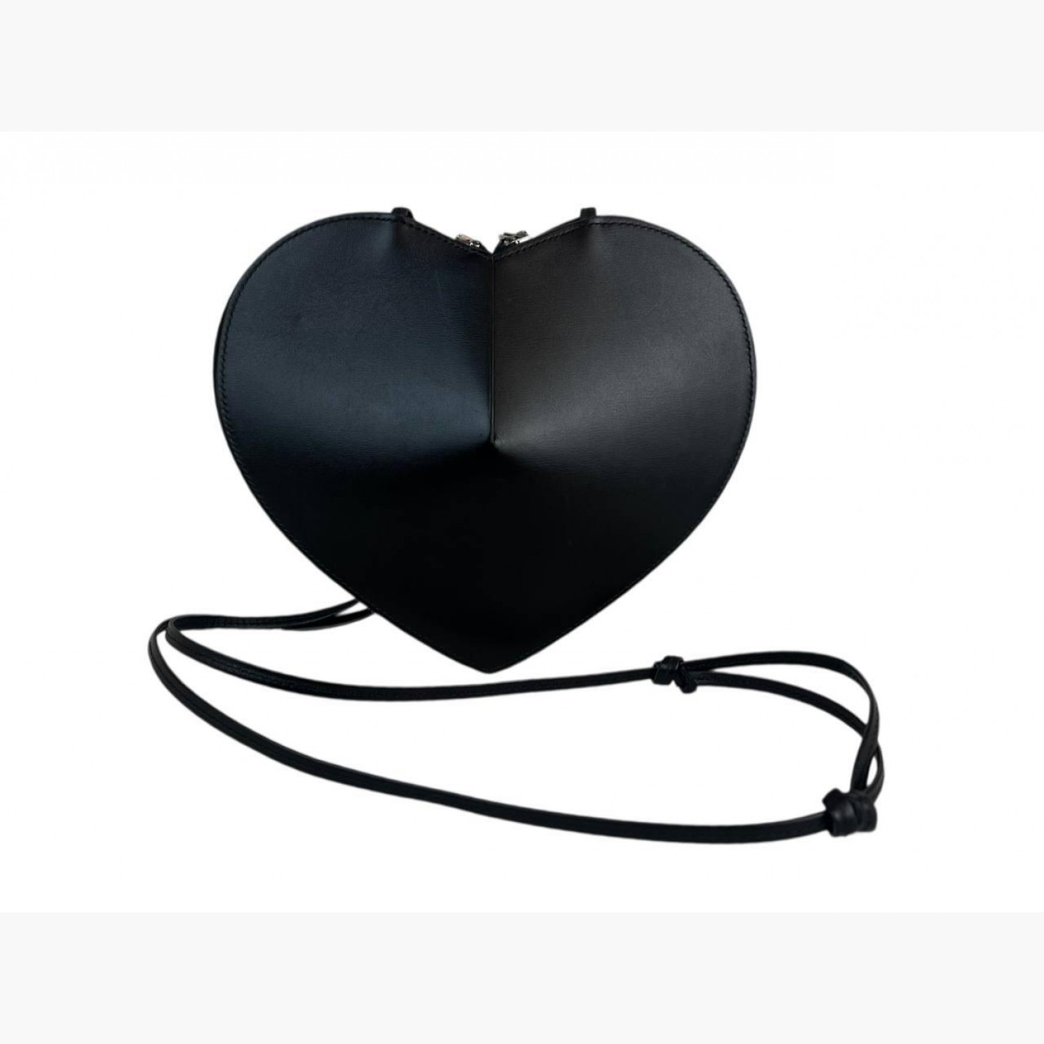Черная кожаная сумочка в форме сердца. Внутри одно основное отделение без карманов. В отличном состоянии, есть незначительные следы носки.