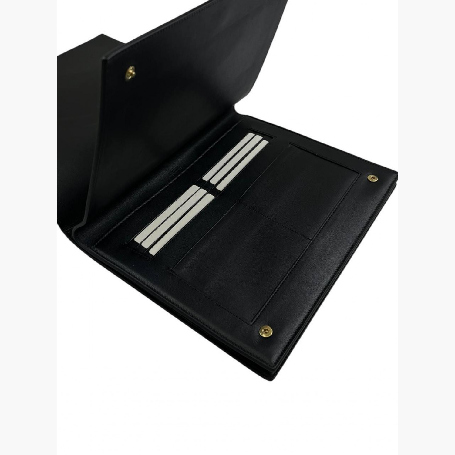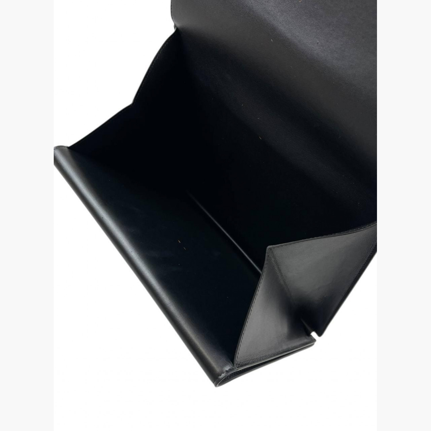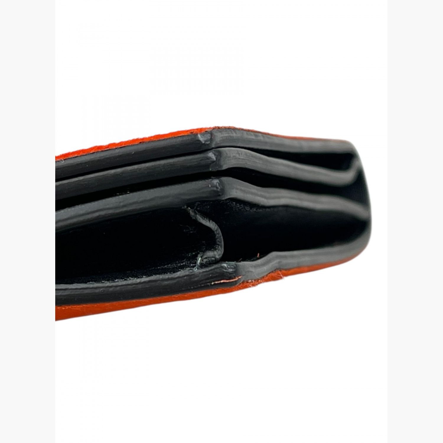 Клатч выполнен из шерсти пони, окрашенной в коралловый цвет. Внутри два основных отделения: в первом — открытый карман с шестью отделениями для карт и двойным открытым карманом под ними; во втором — открытый карман и карман на молнии. В отличном состоянии, есть незначительные следы носки.