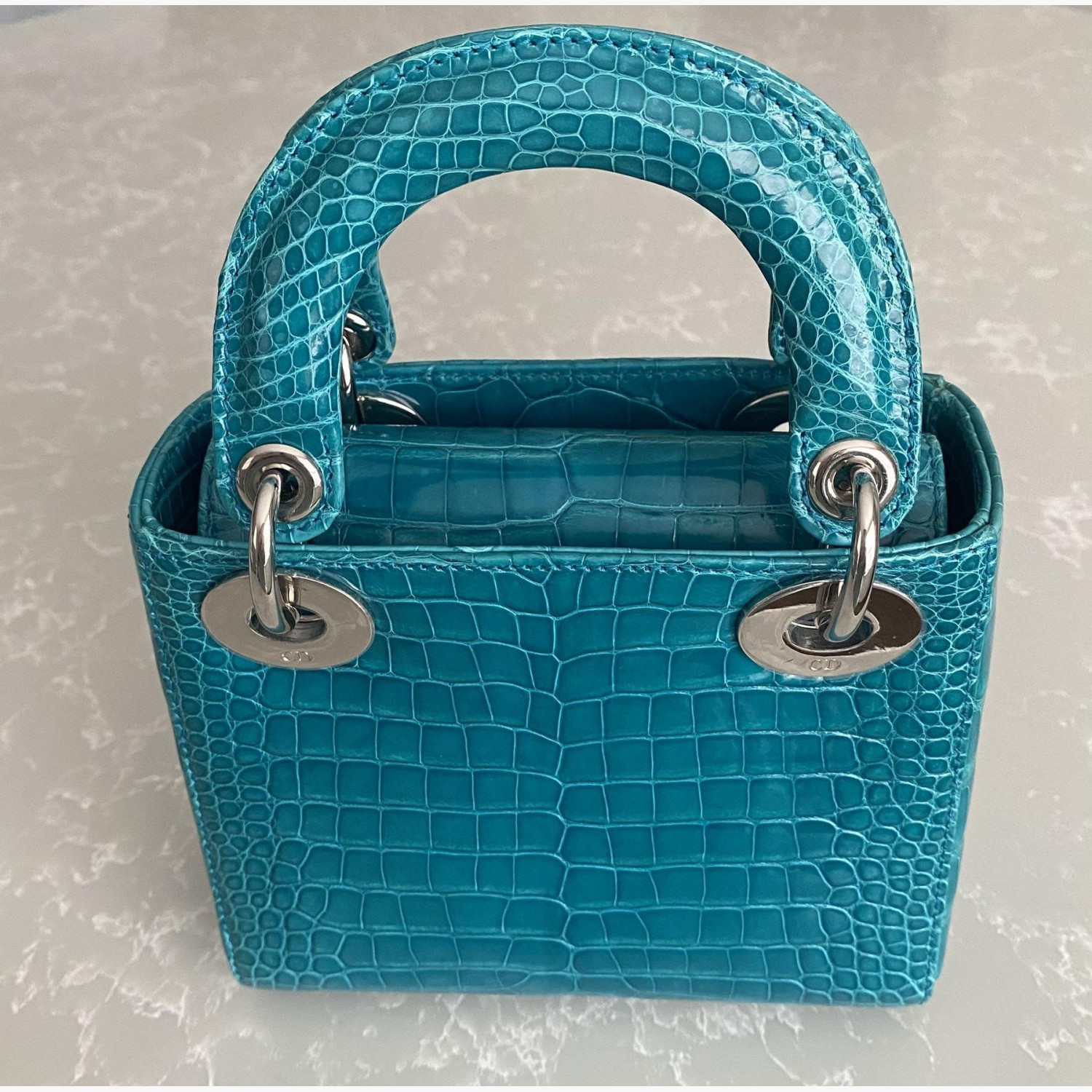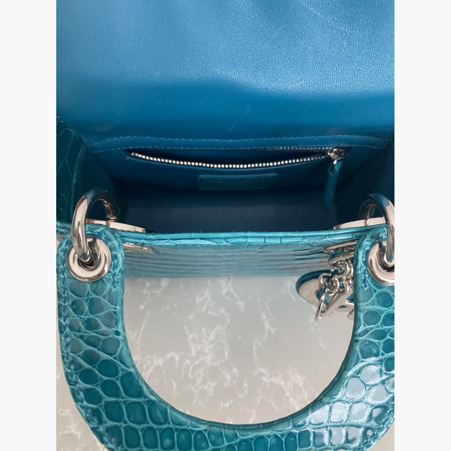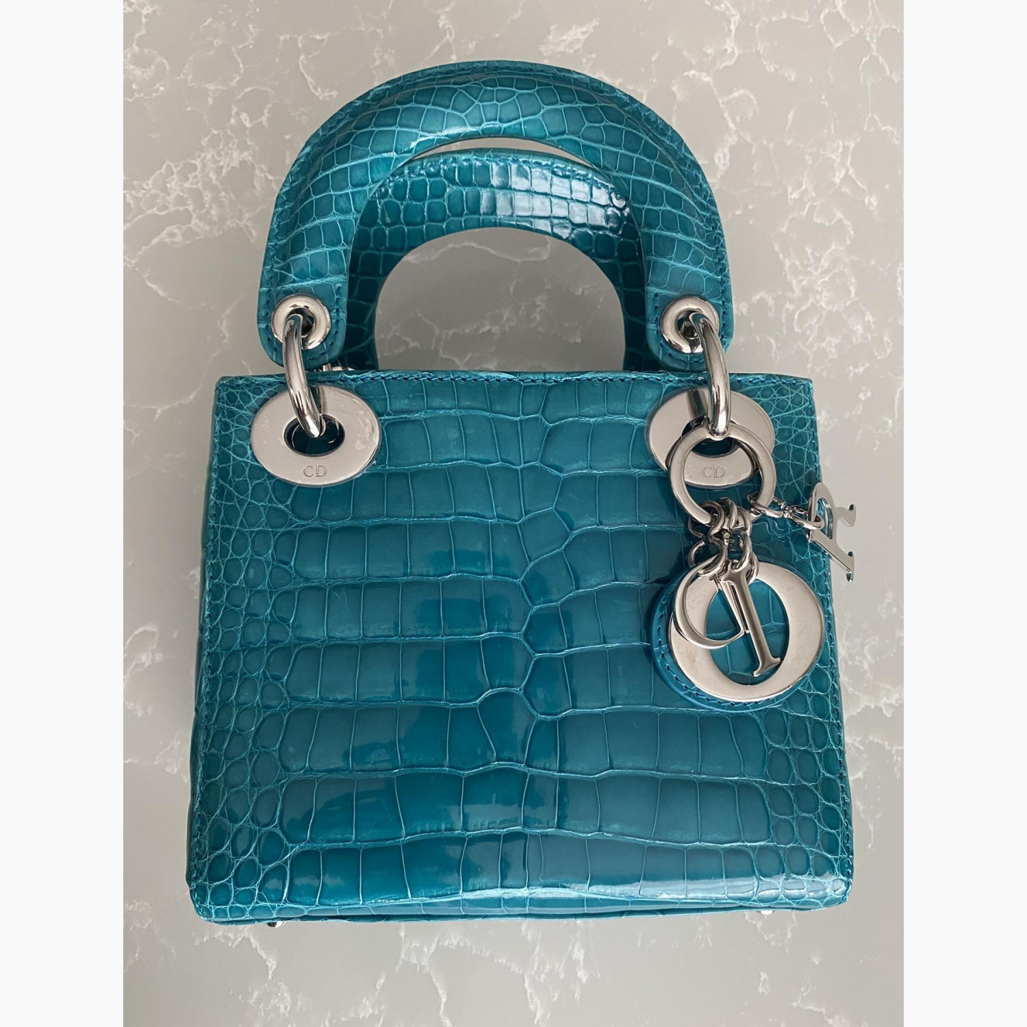 Кожаная сумка аквамаринового цвета из кожи крокодила с металлической фурнитурой серебряного цвета и двойными ручками.Внутри одно основное отделение с карманом на молнии, код сумки вшит в карман. В комплекте пыльник.В отличном состоянии.