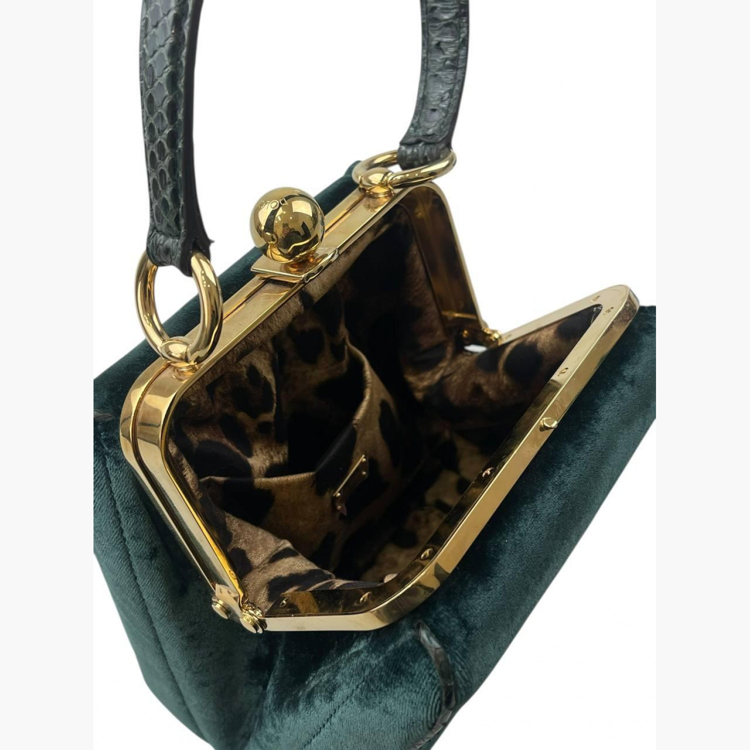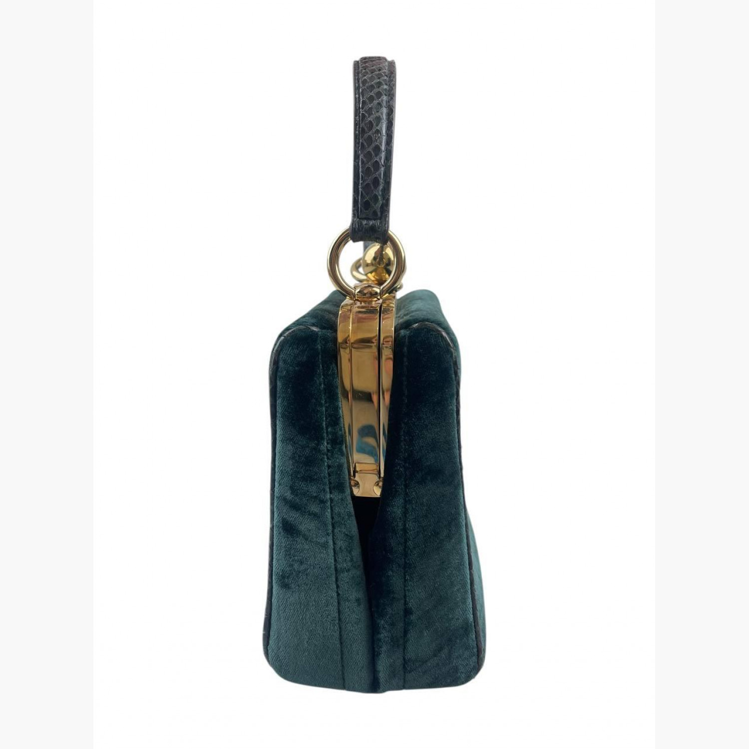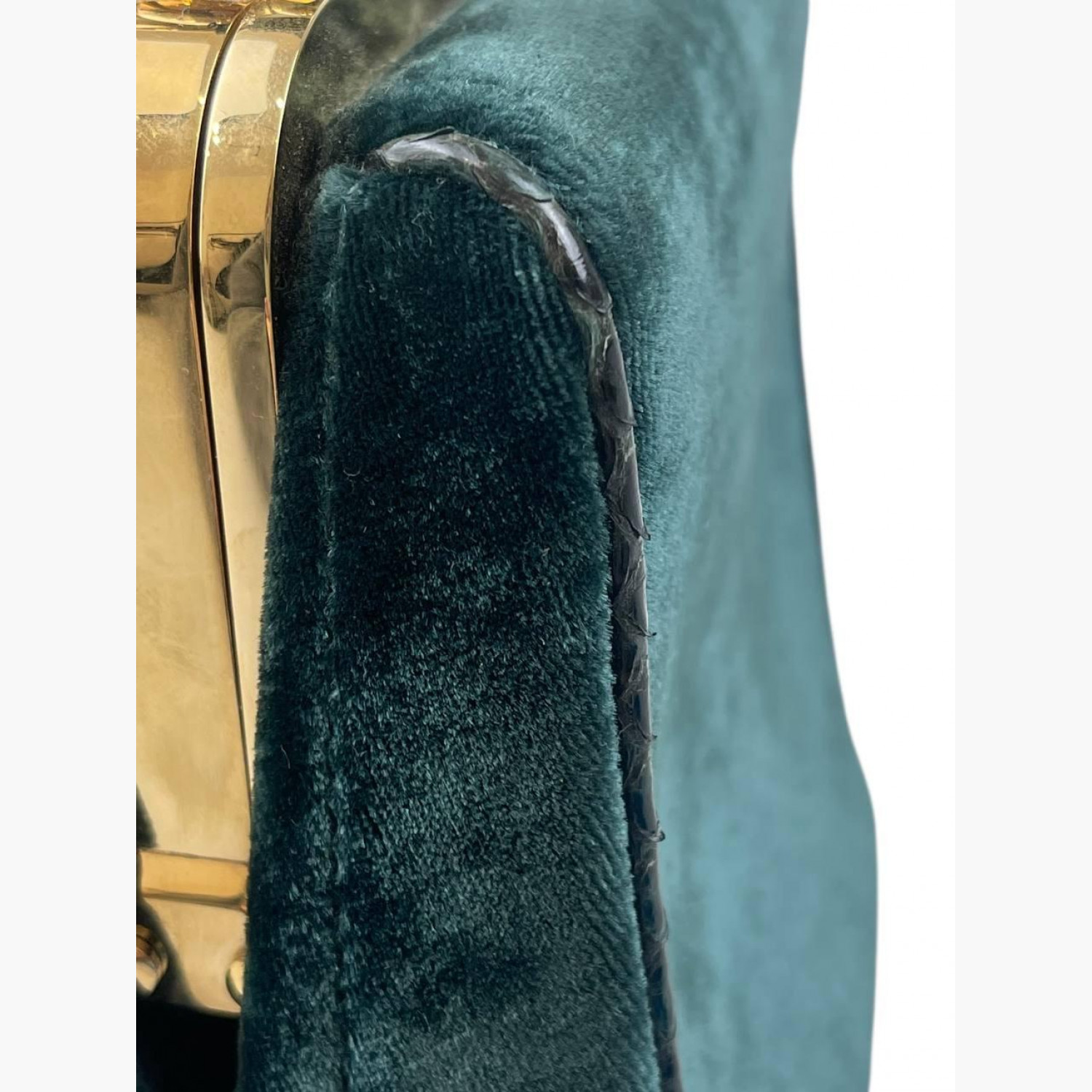 Темно-зелёная бархатная сумка. Внутри одно основное отделение с двумя открытыми карманами. В отличном состоянии, есть едва заметные следы носки.
