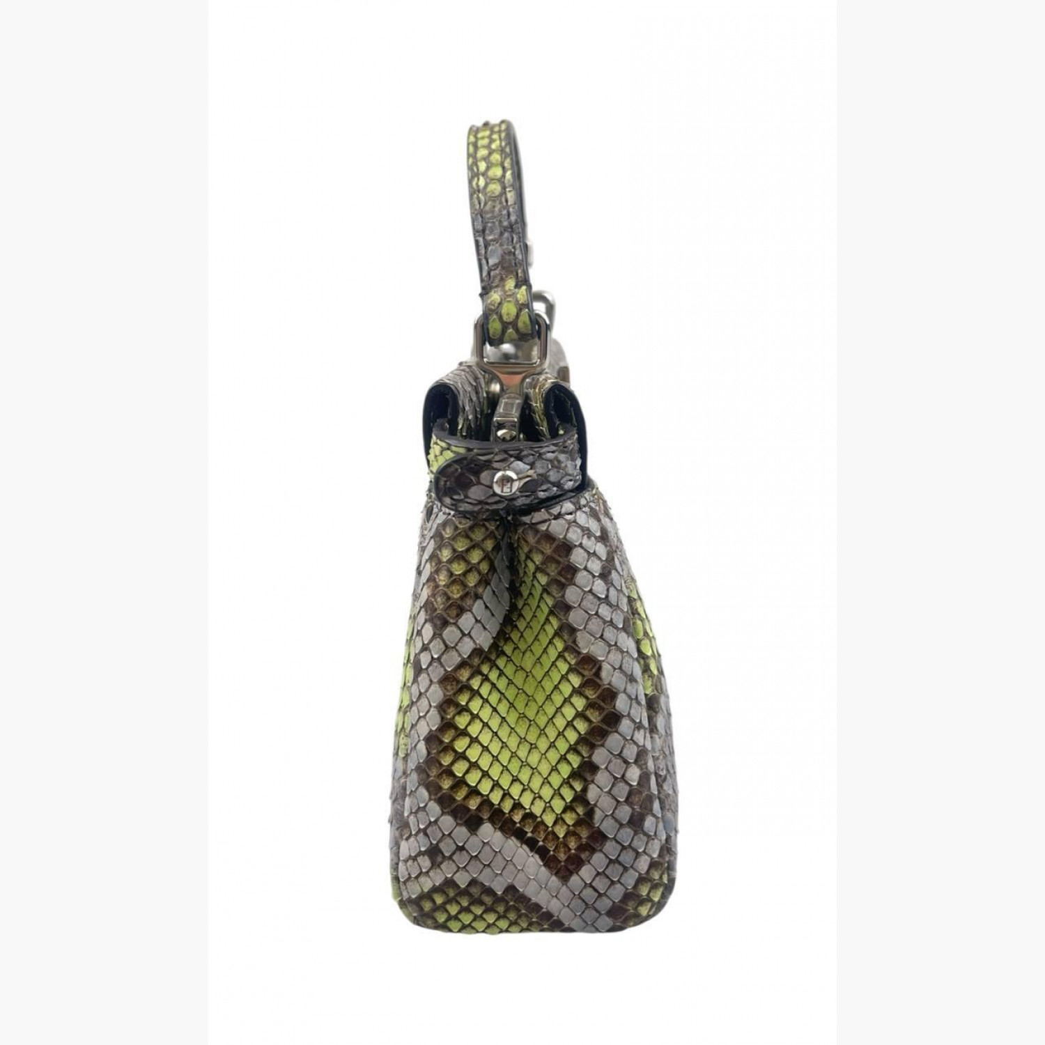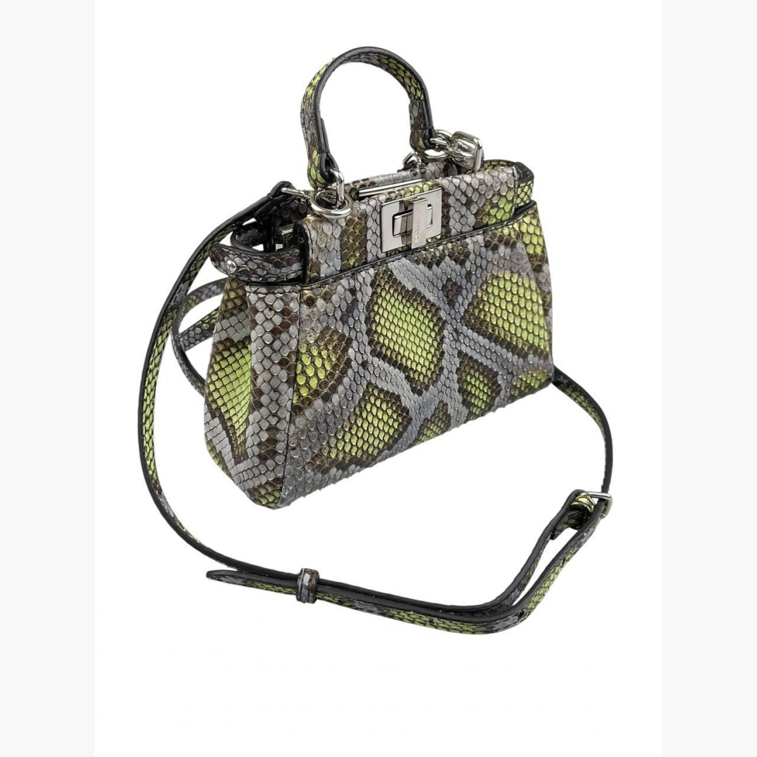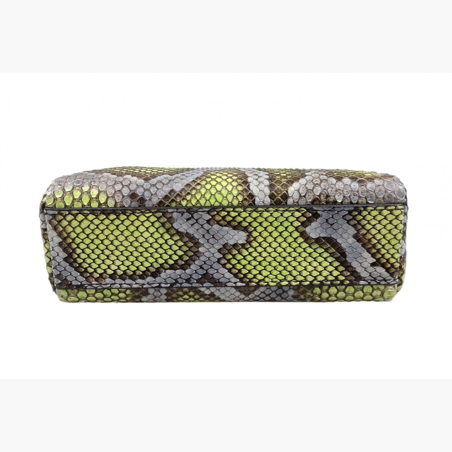 Зеленая микро-сумка выполнена из кожи питона. Внутри одно основное отделение с двойным маленьким открытым карманом, в комплекте регулируемый съемный ремешок. В отличном состоянии, без следов носки.