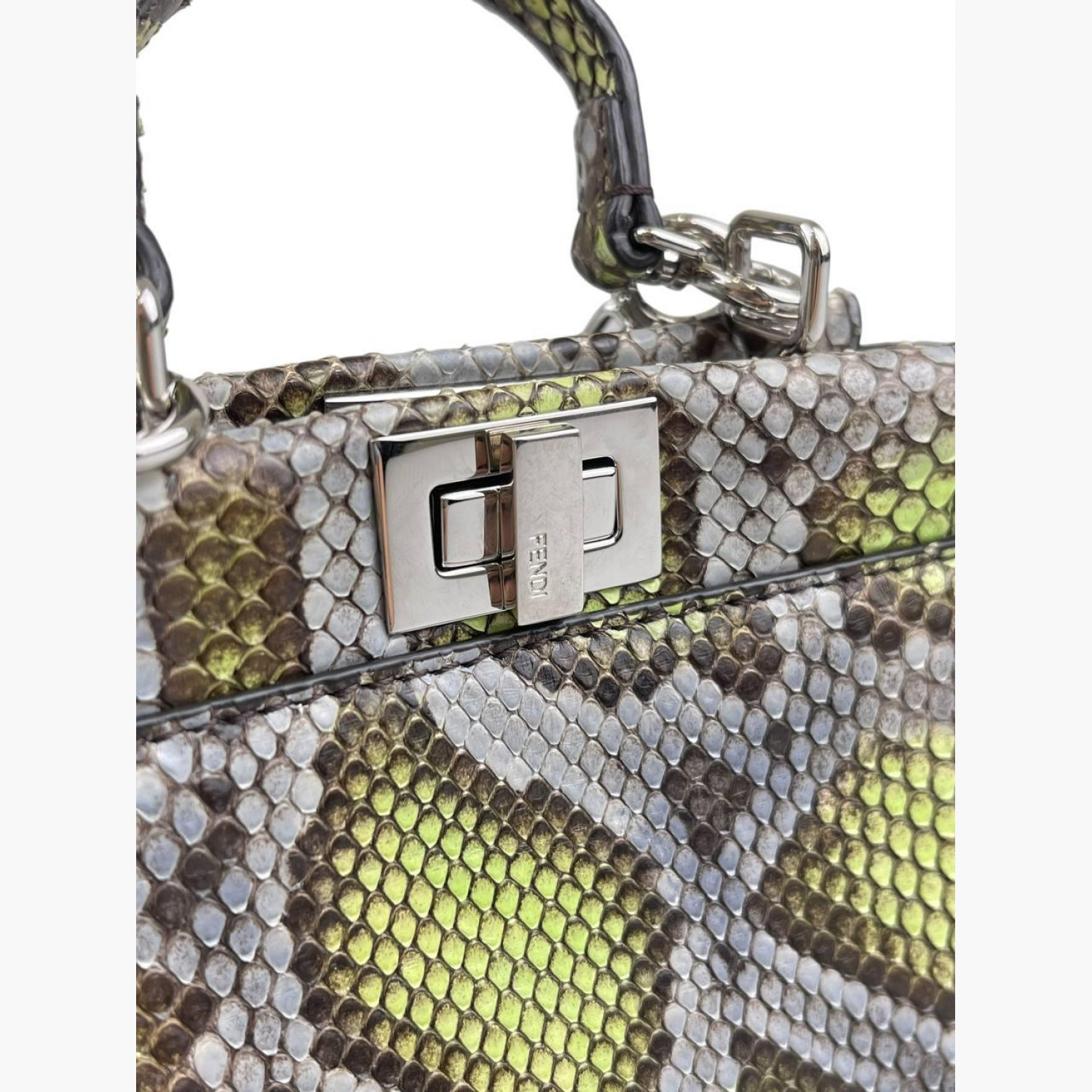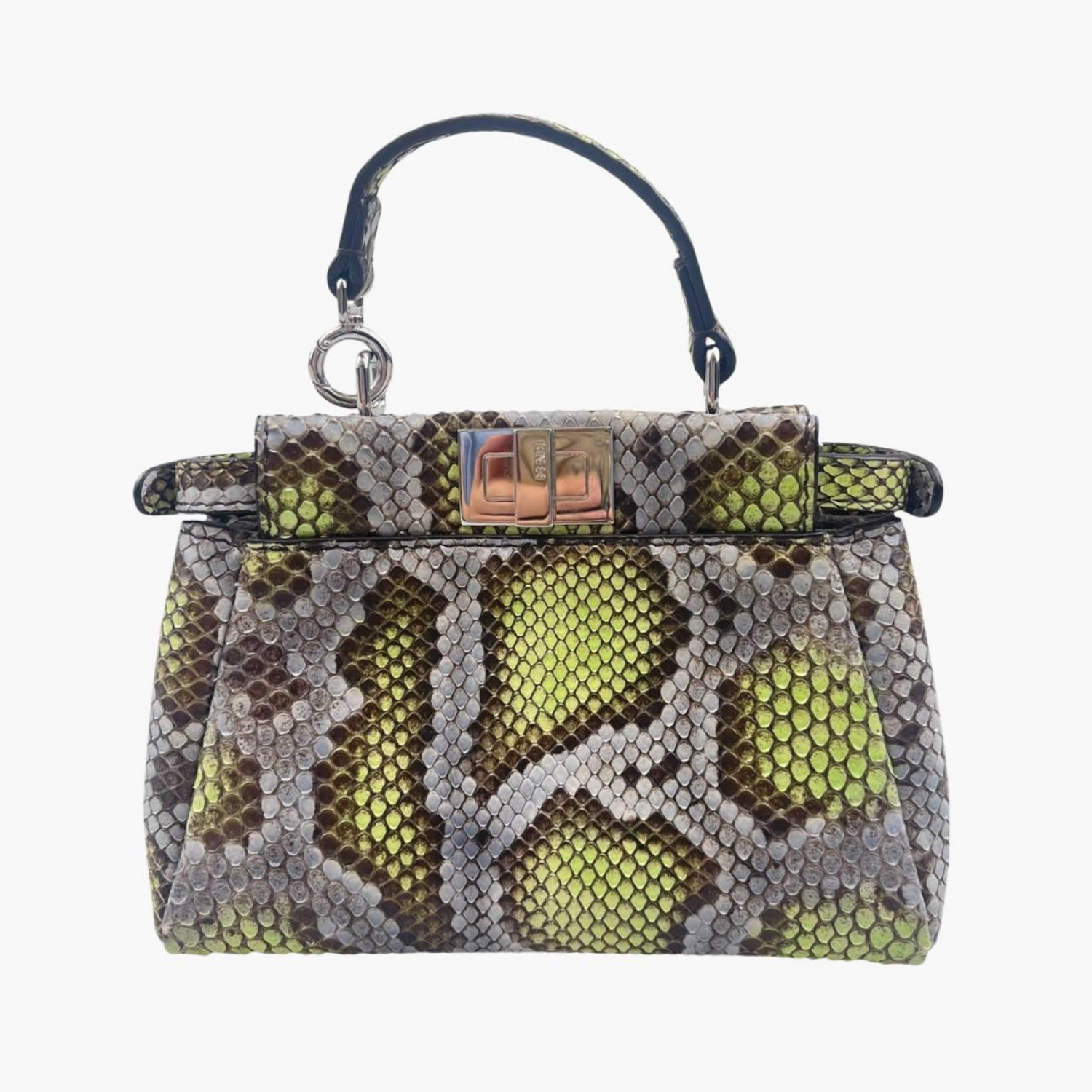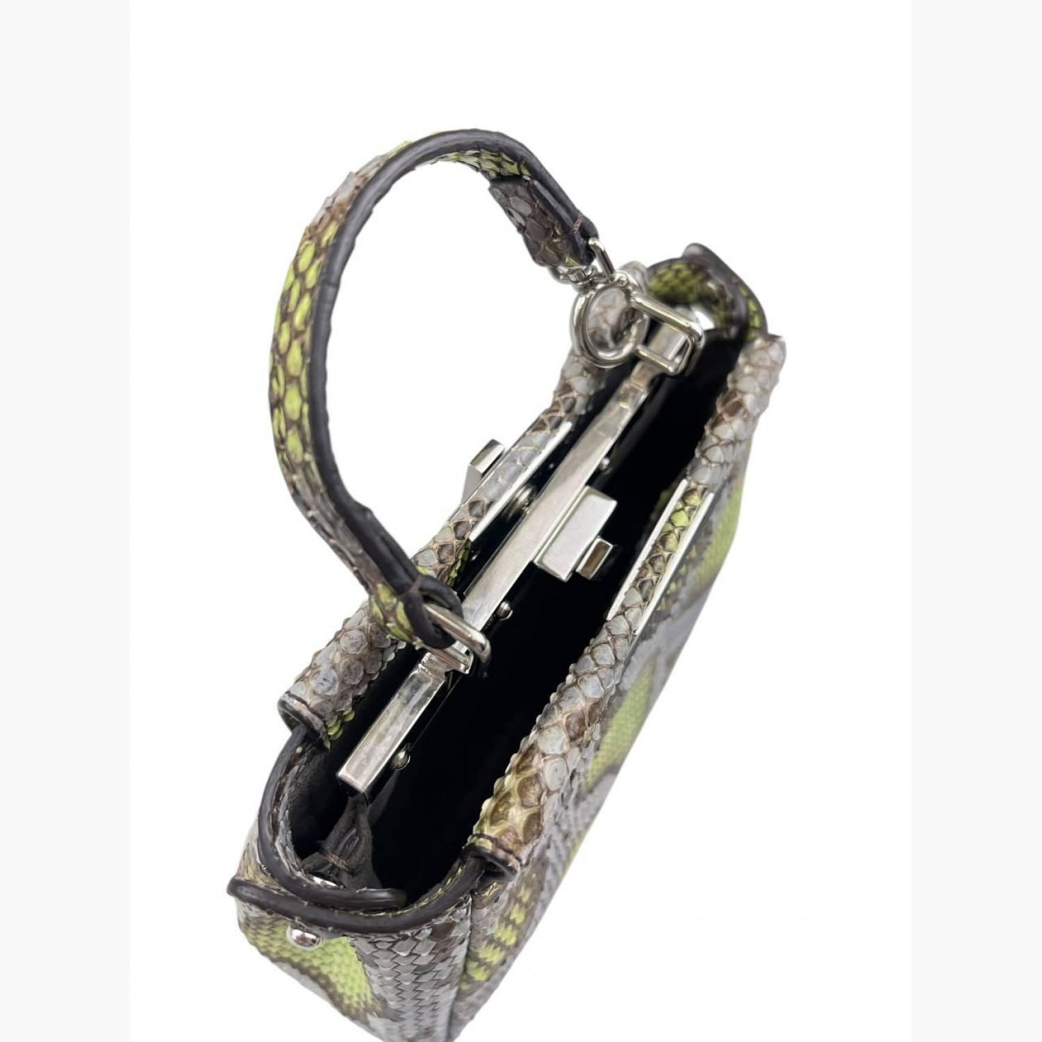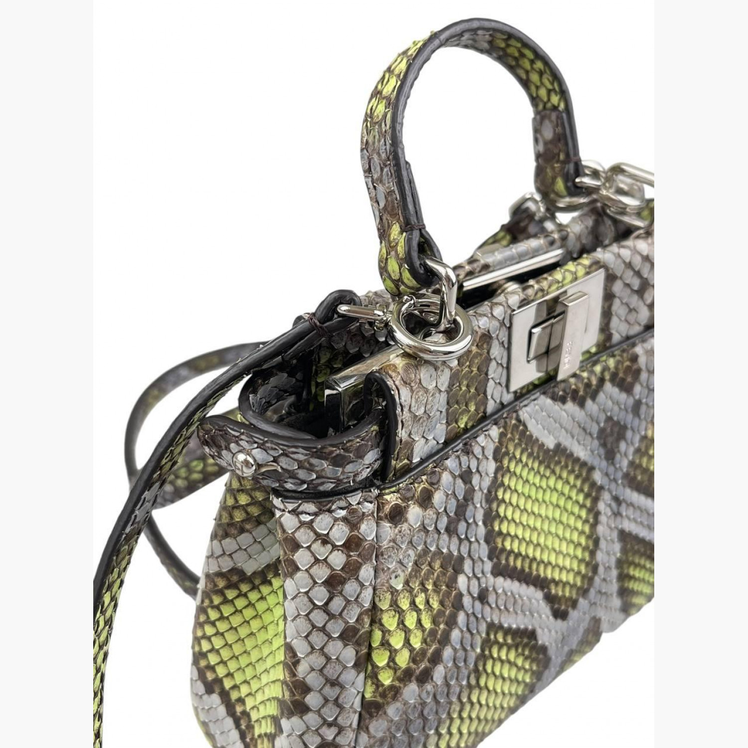Зеленая микро-сумка выполнена из кожи питона. Внутри одно основное отделение с двойным маленьким открытым карманом, в комплекте регулируемый съемный ремешок. В отличном состоянии, без следов носки.