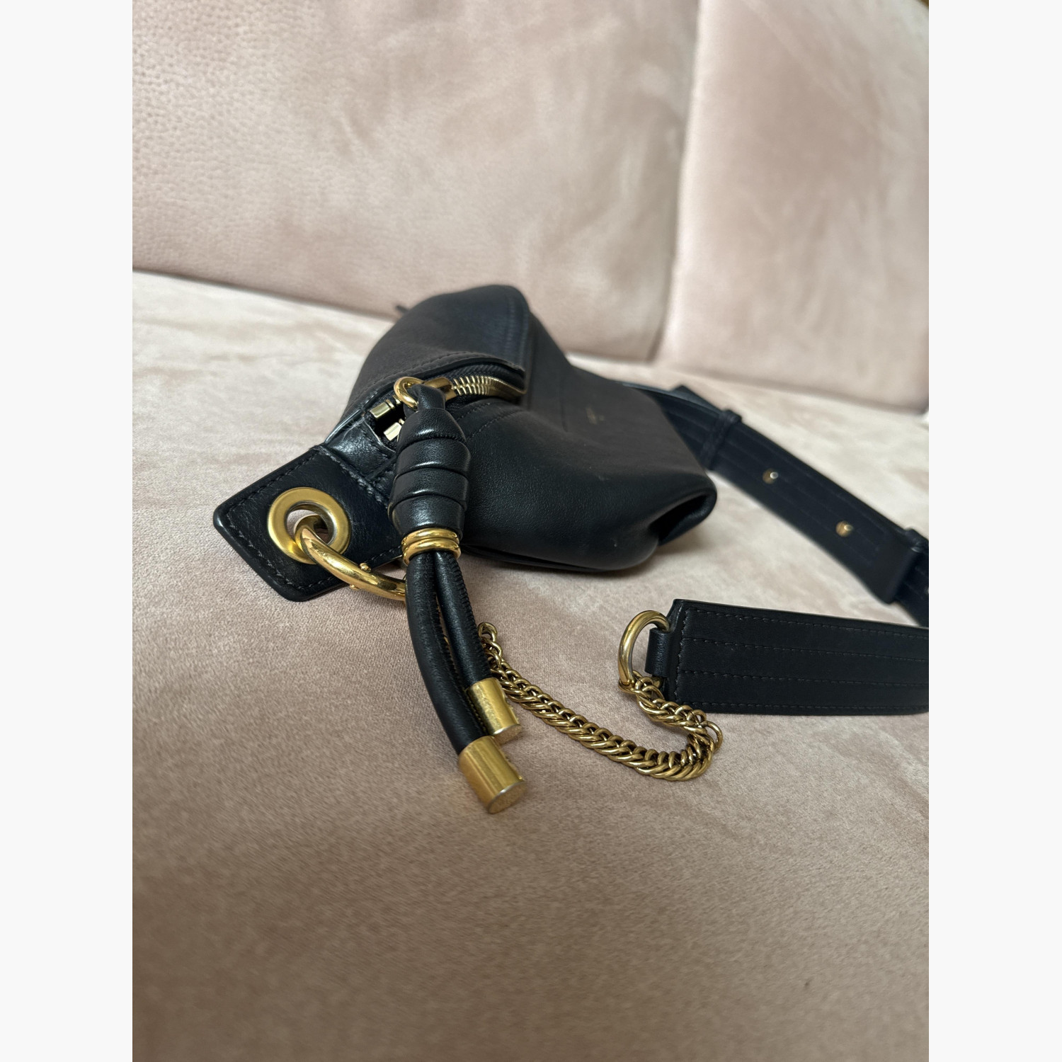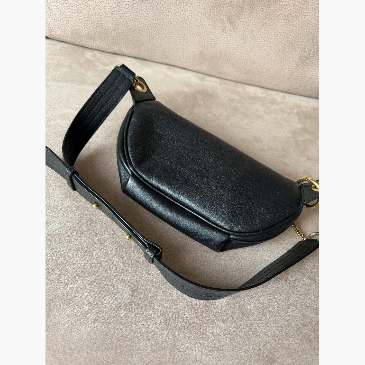 Чёрная кожаная поясная сумка. В хорошем состоянии.