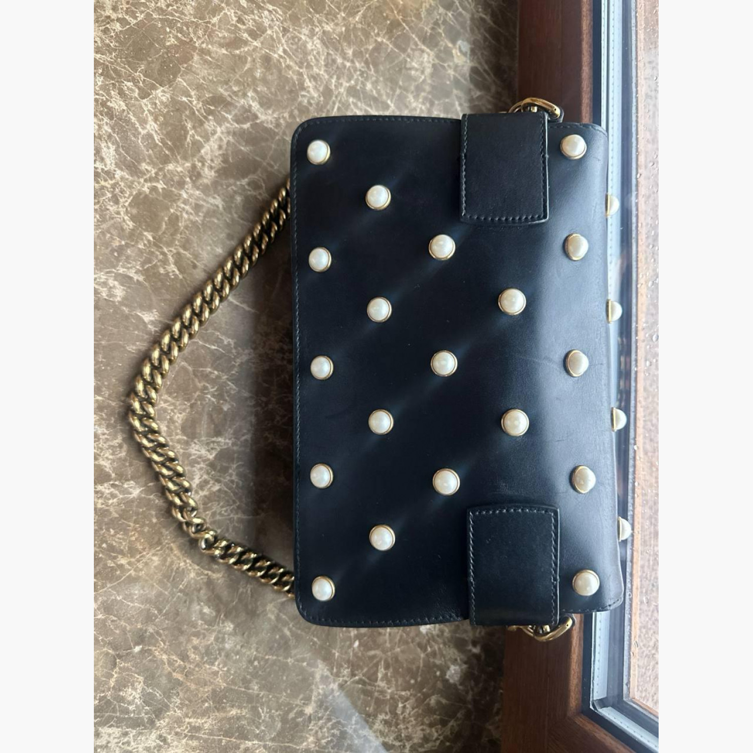 Черная сумочка Gucci. Сочетает в себе классический дизайн и узнаваемые фирменные элементы бренда. Сумочка имеет удобный размер - идеально подходит как для дневного использования, так и для вечерних выходов.