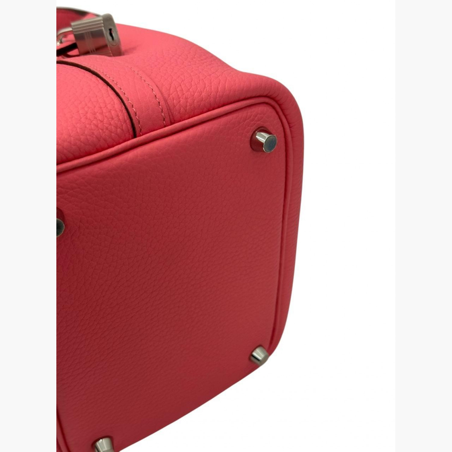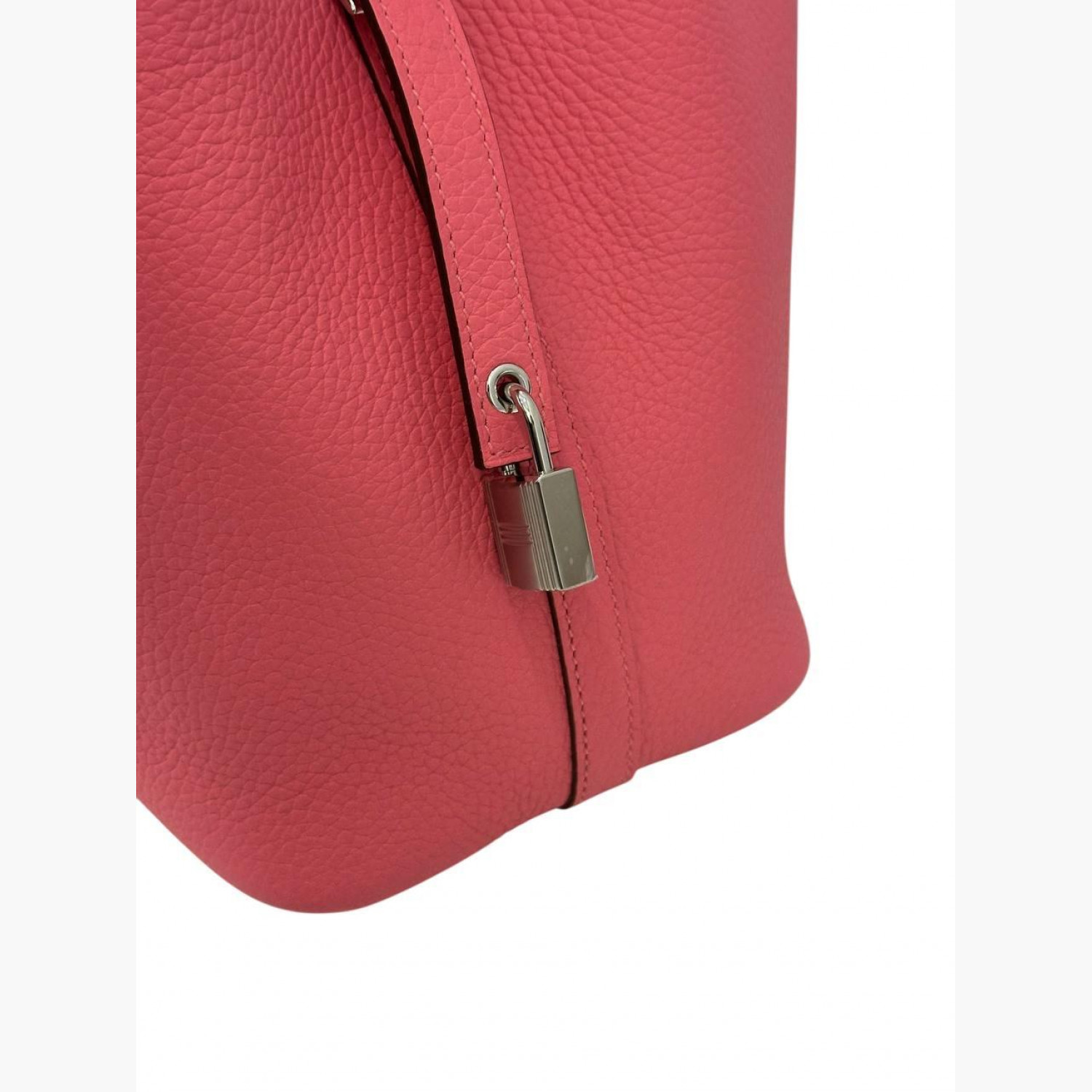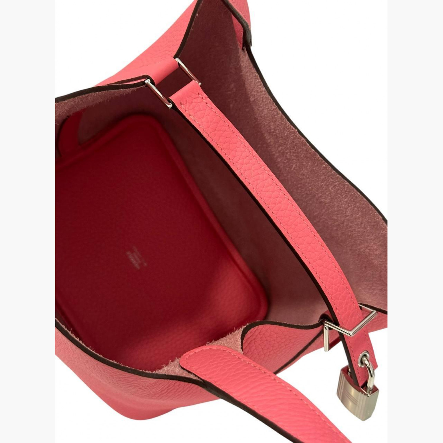 Розовая сумка выполнена из кожи clemence. Внутри одно основное отделение. Абсолютно новая, без следов носки.