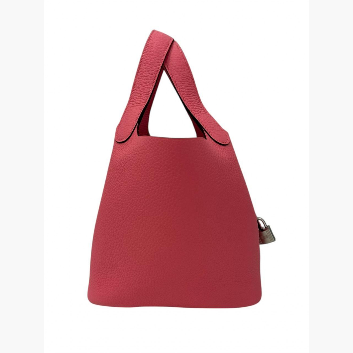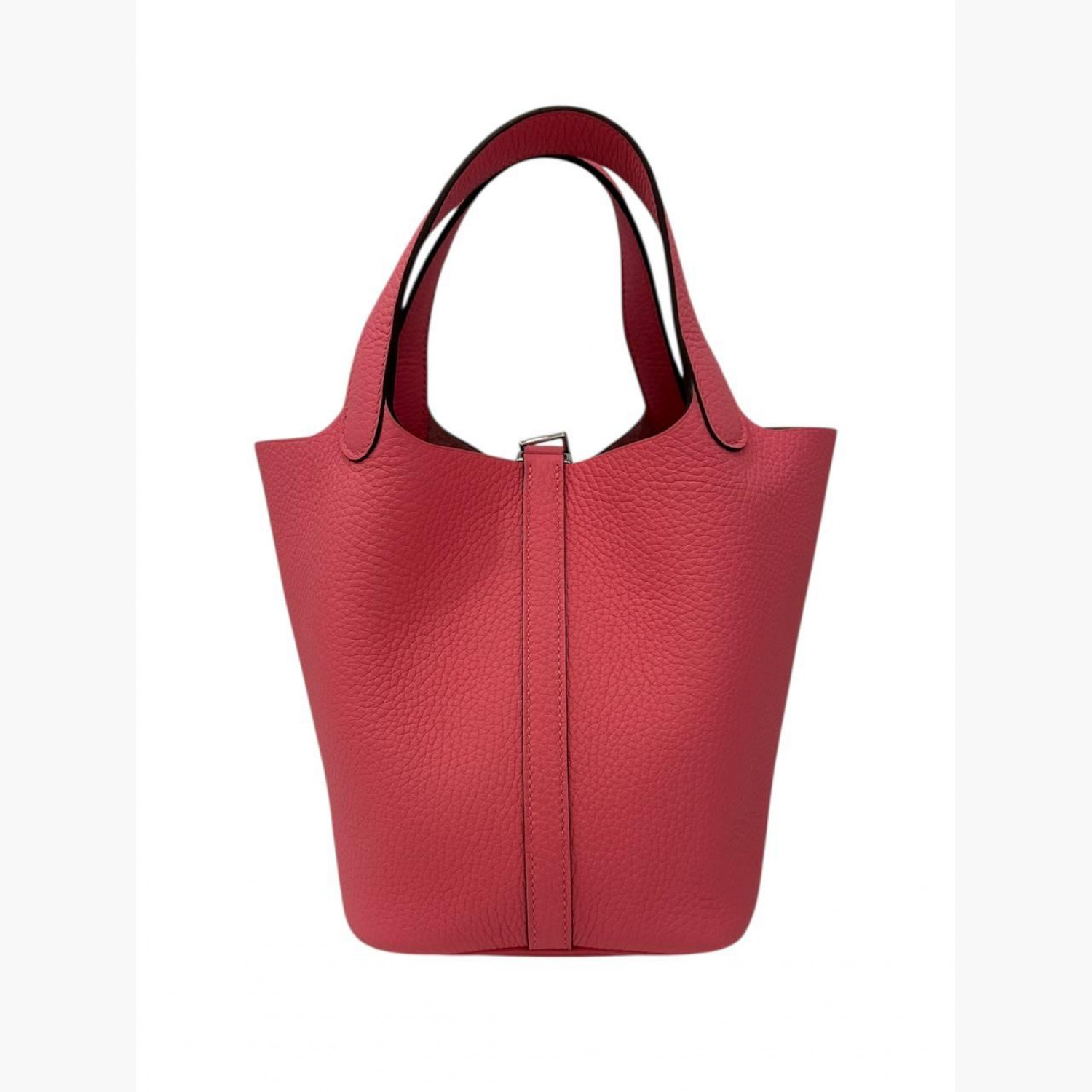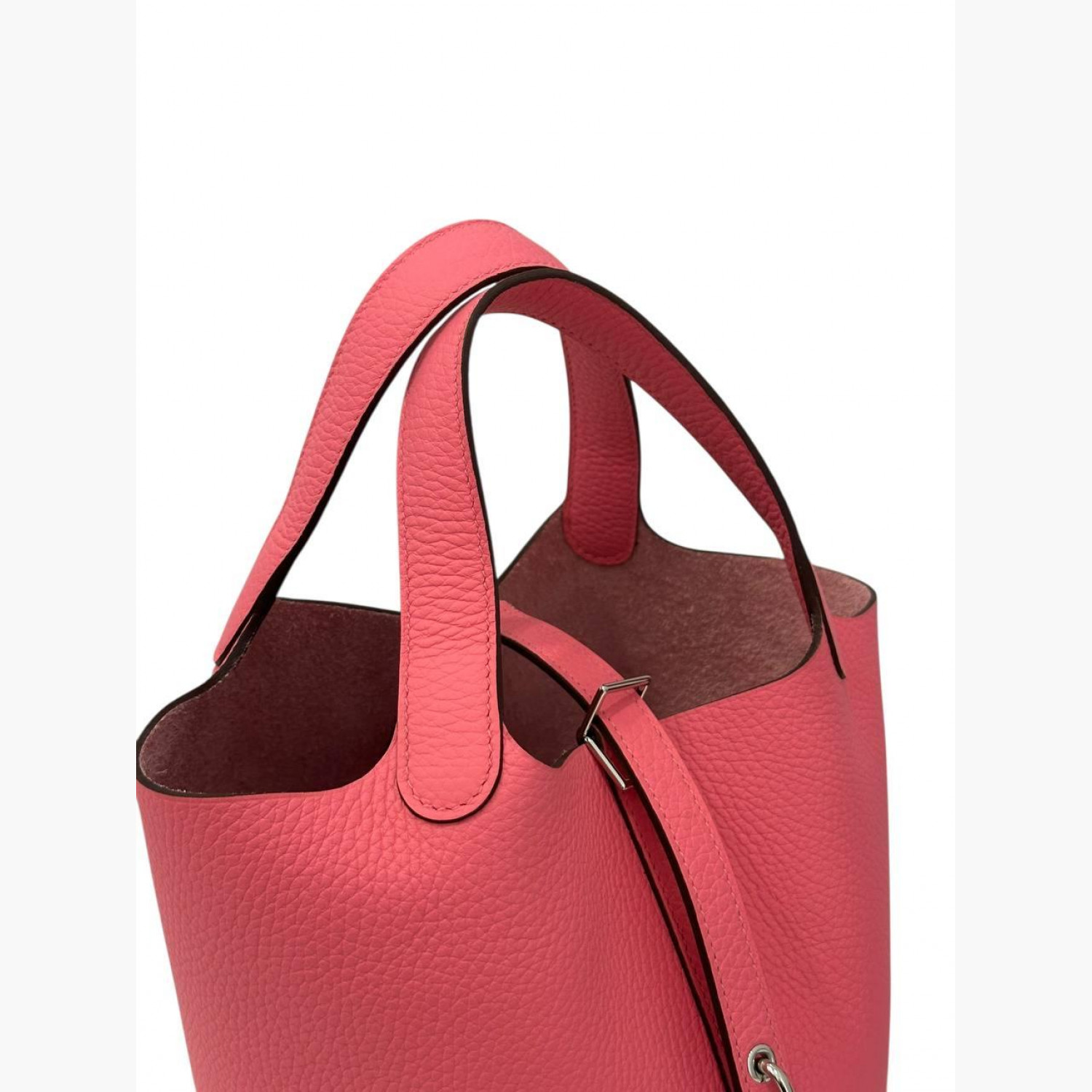 Розовая сумка выполнена из кожи clemence. Внутри одно основное отделение. Абсолютно новая, без следов носки.