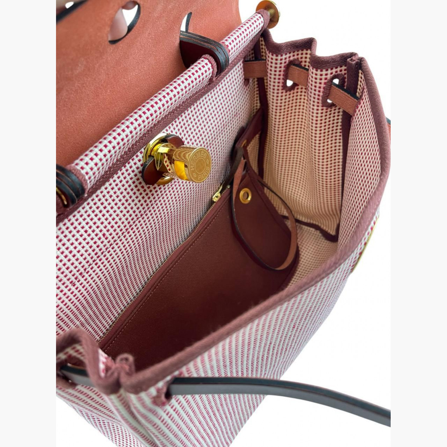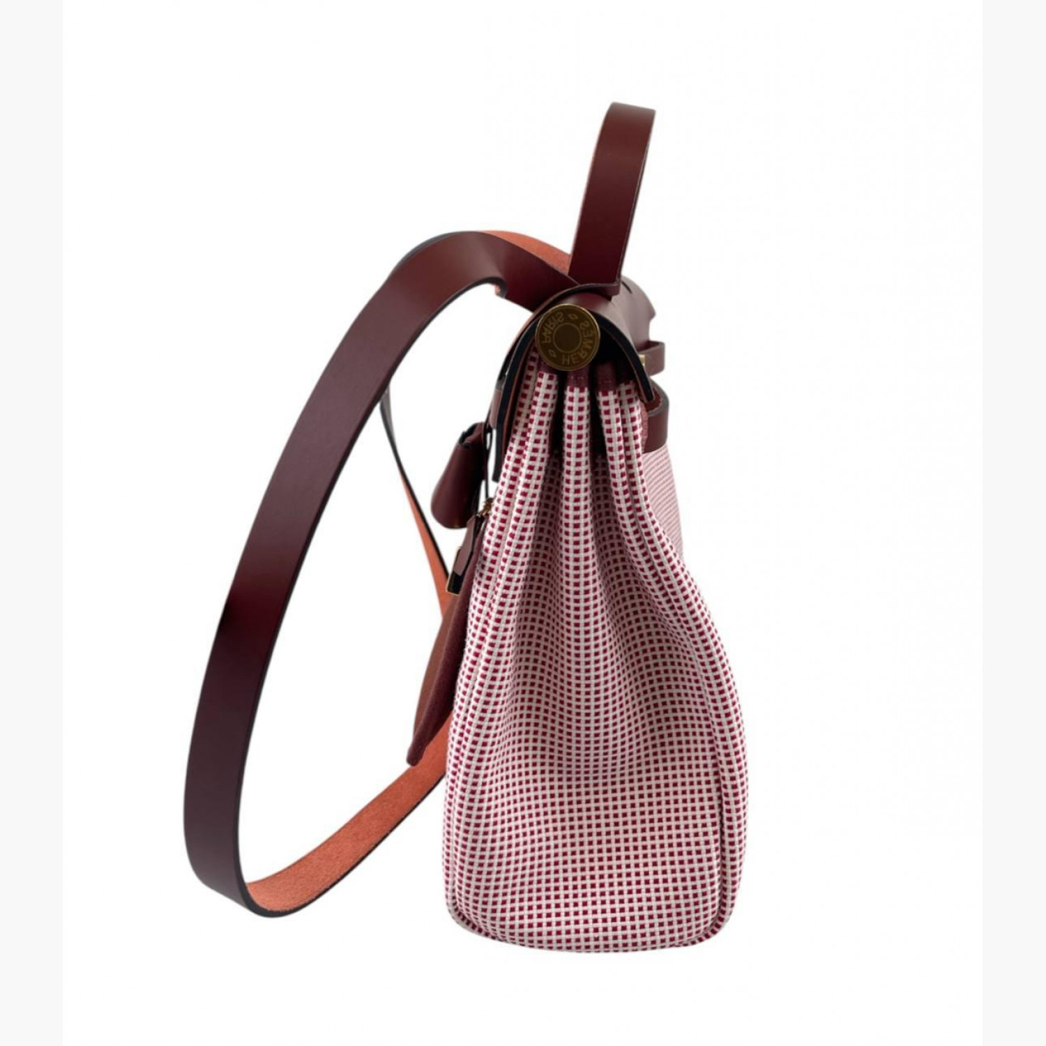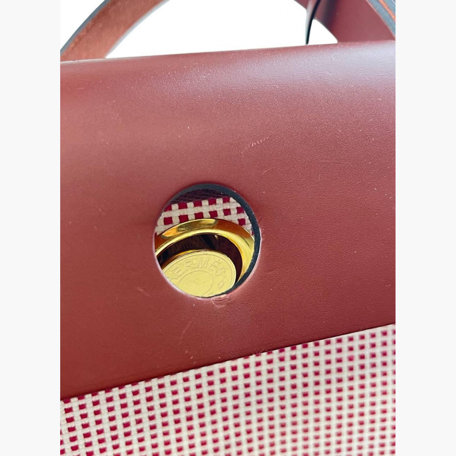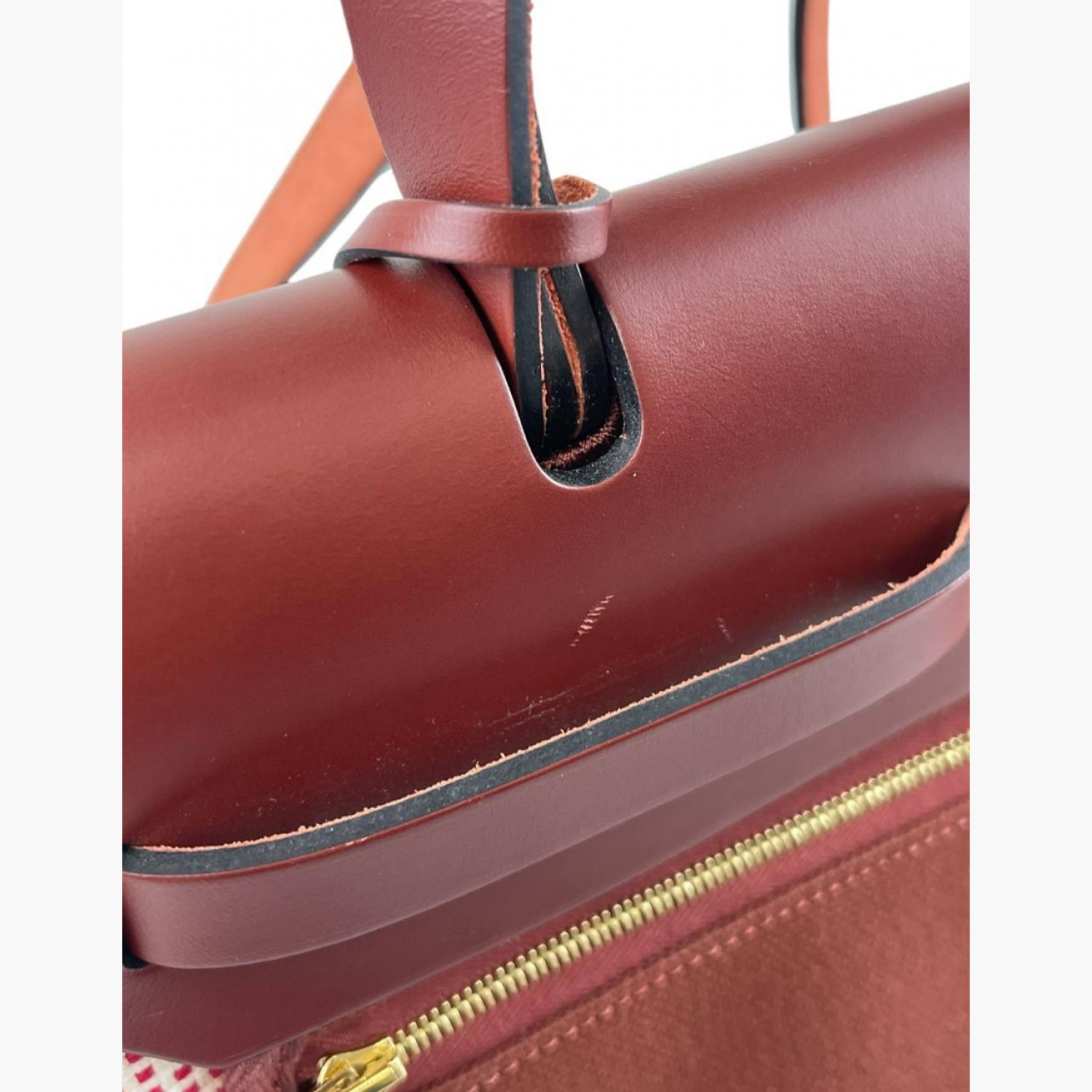 Бордовая сумка в мелкую красную клетку. Внутри одно основное отделение, внутренний съемный кармашек на ремешке. В хорошем состоянии, есть следы носки.