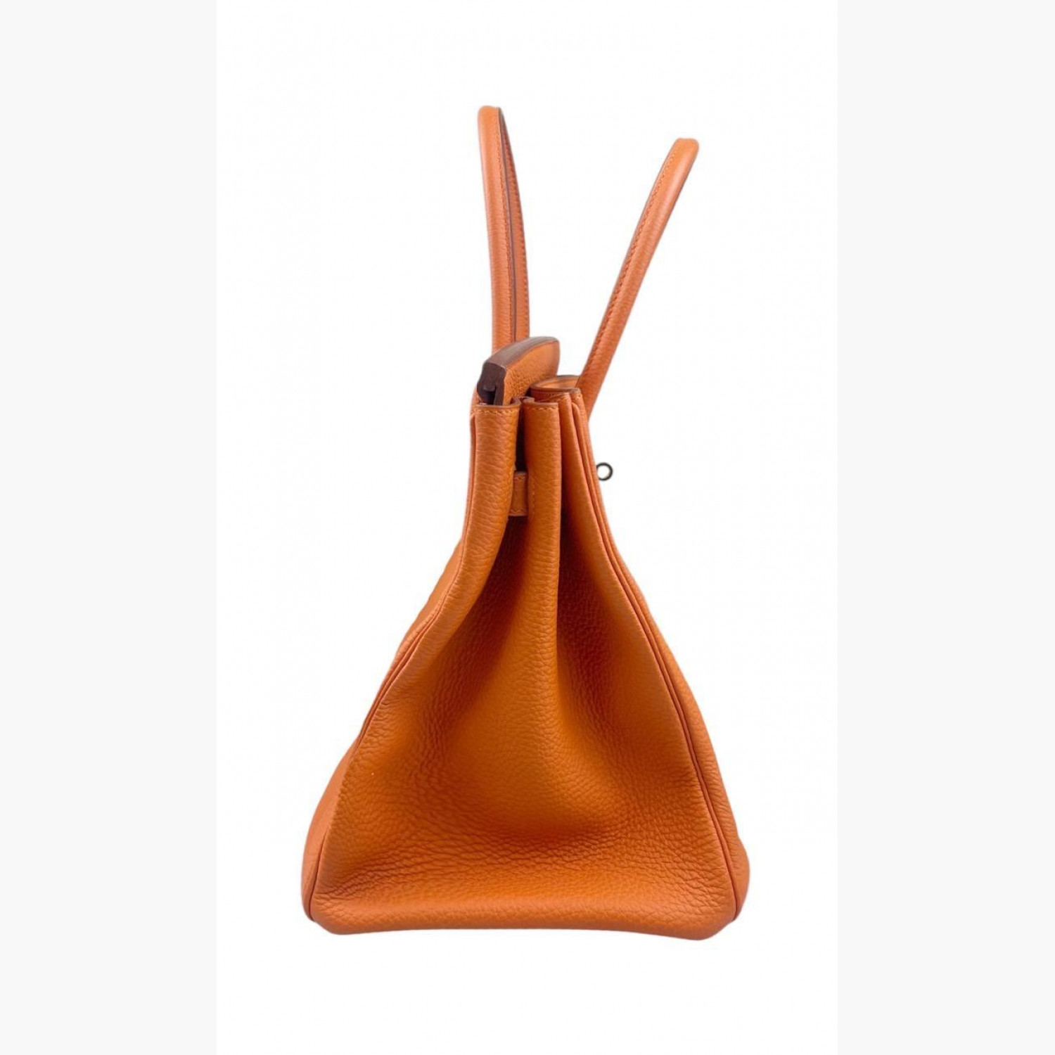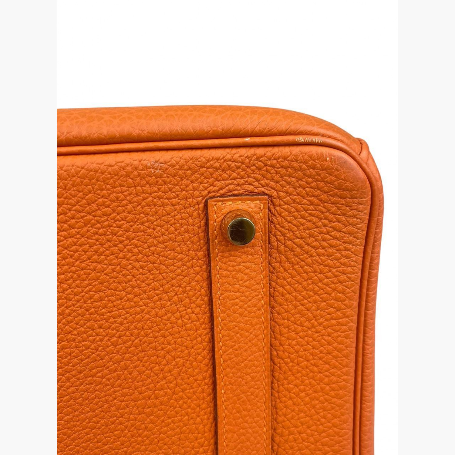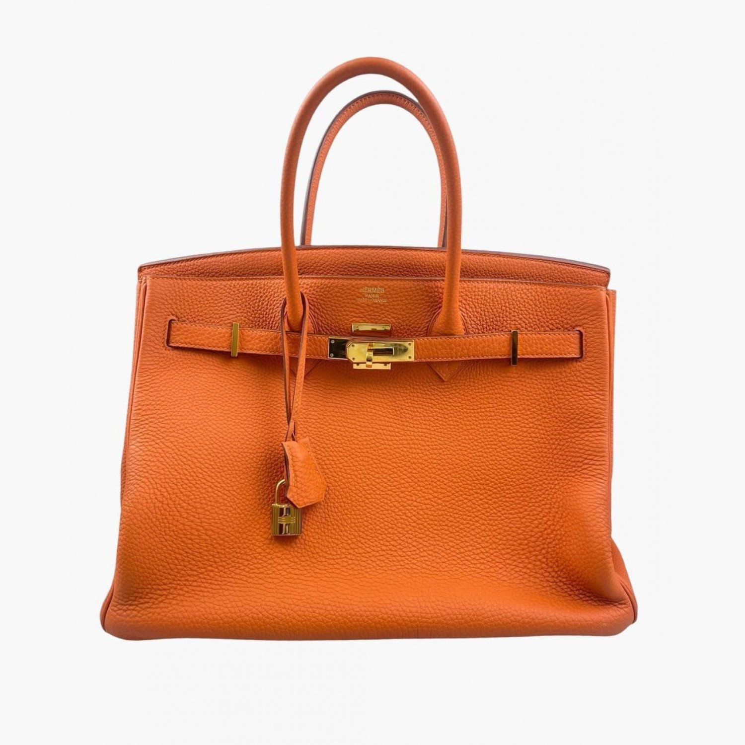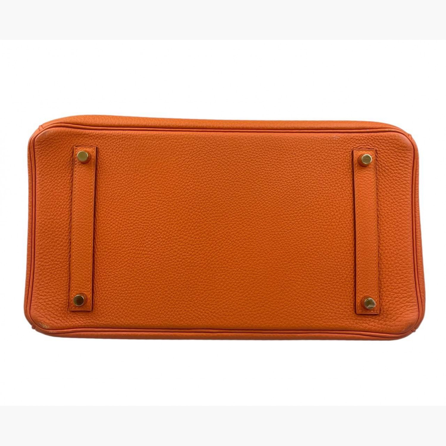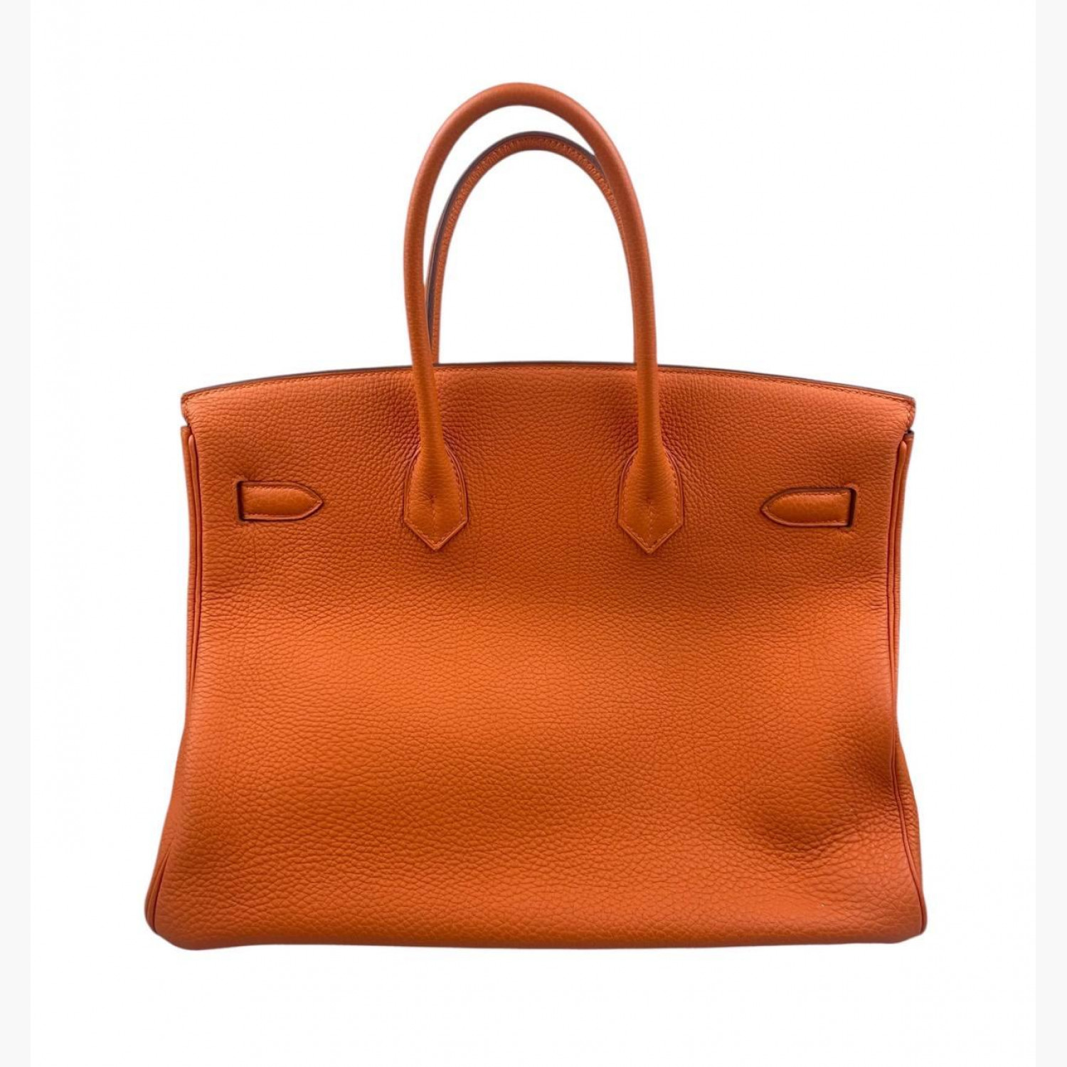 Оранжевая кожаная сумка с замком и ключами. Внутри одно основное отделение, открытый карман и карман на молнии. В отличном состоянии, есть незначительные следы носки.