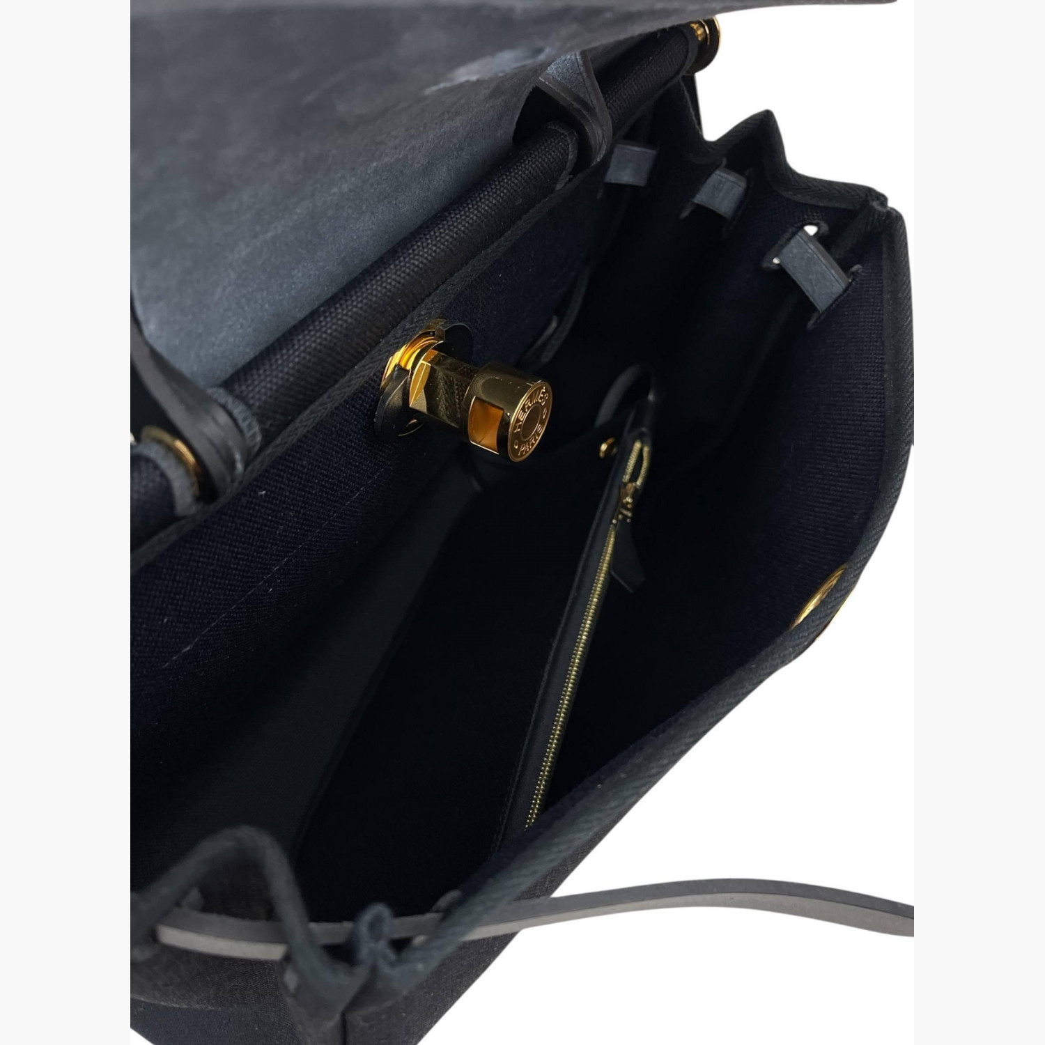 Текстильная чёрная сумка с чёрной кожаной крышкой. Внутри одно основное отделение со съёмным карманом на ремешке на молнии, а также карман на молнии сзади сумки. Абсолютно новая.
