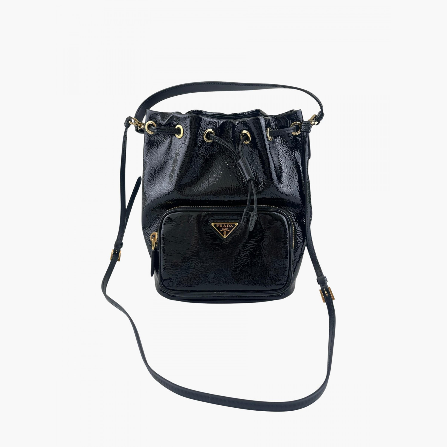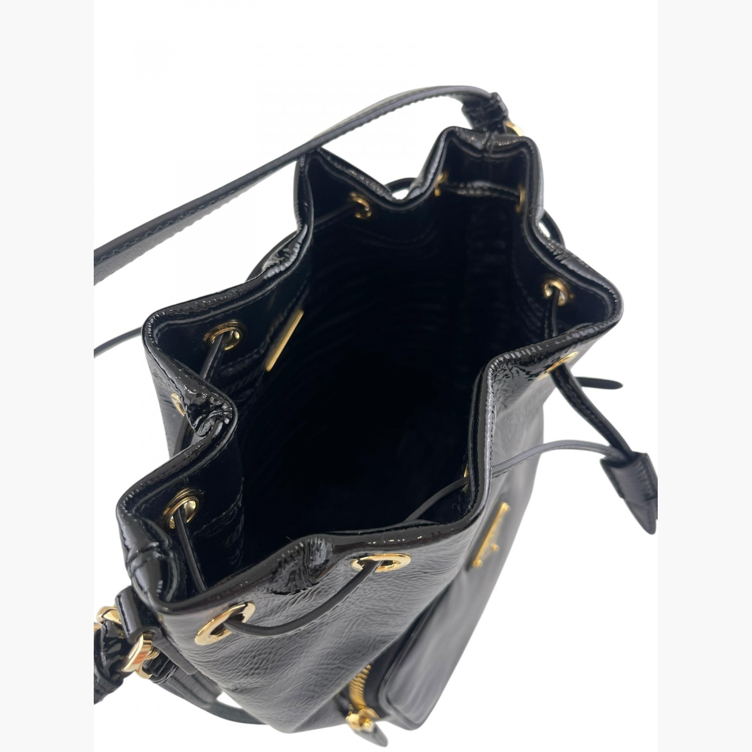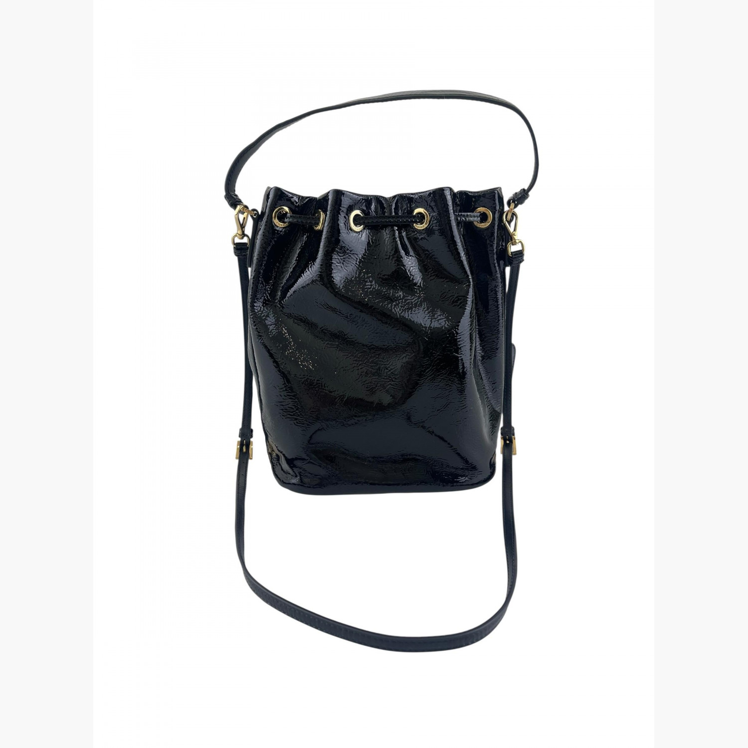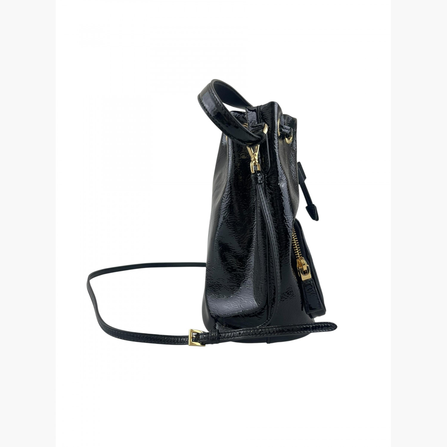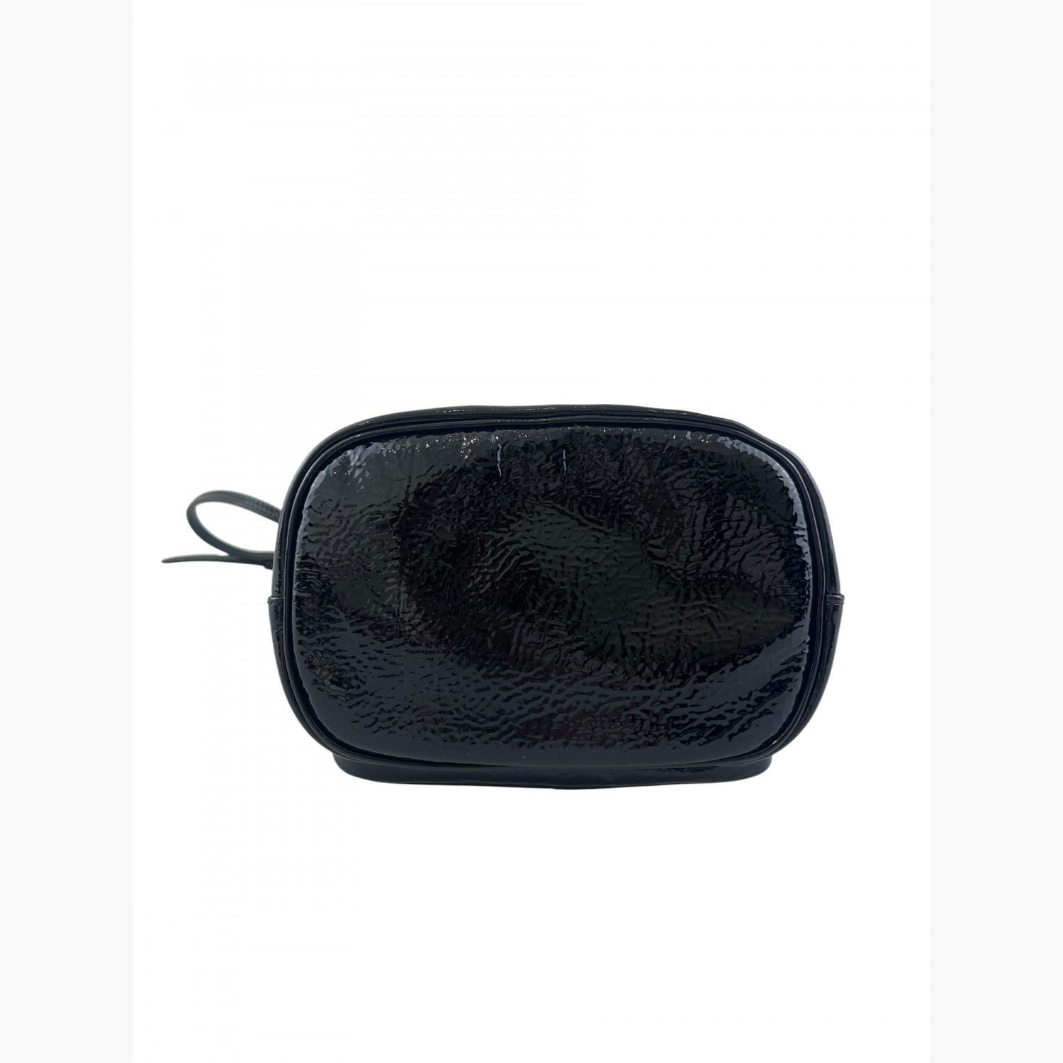 Черная лаковая сумка. Внутри одно основное отделение и карман на молнии на лицевой стороне сумки. В отличном состоянии.