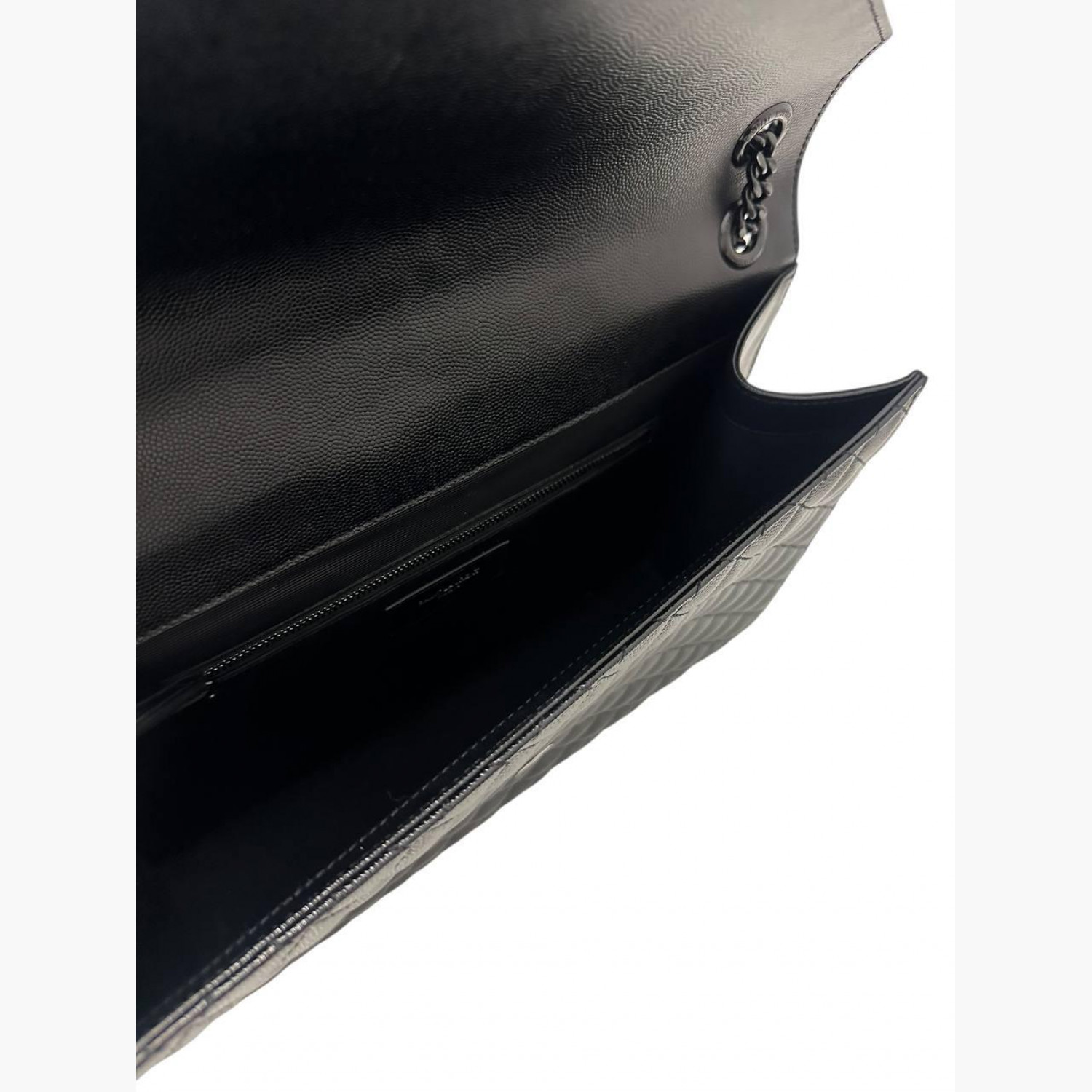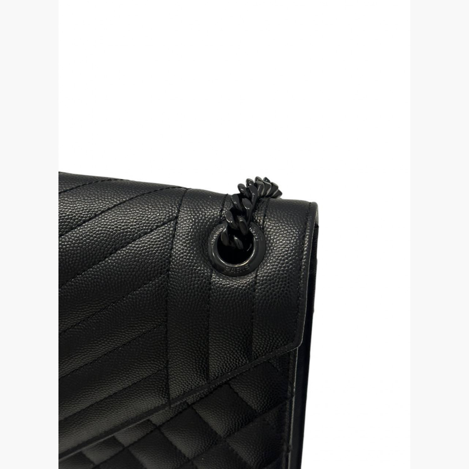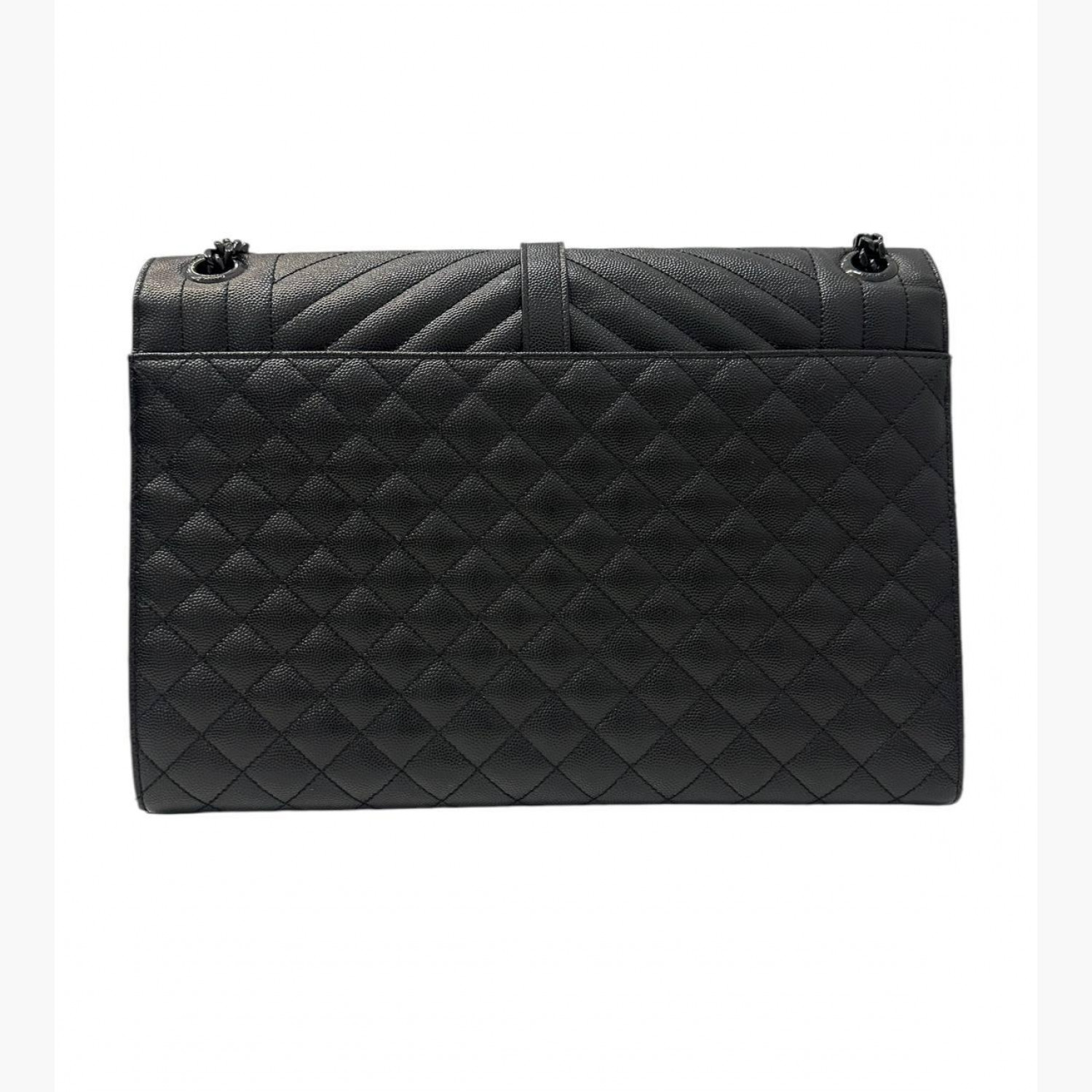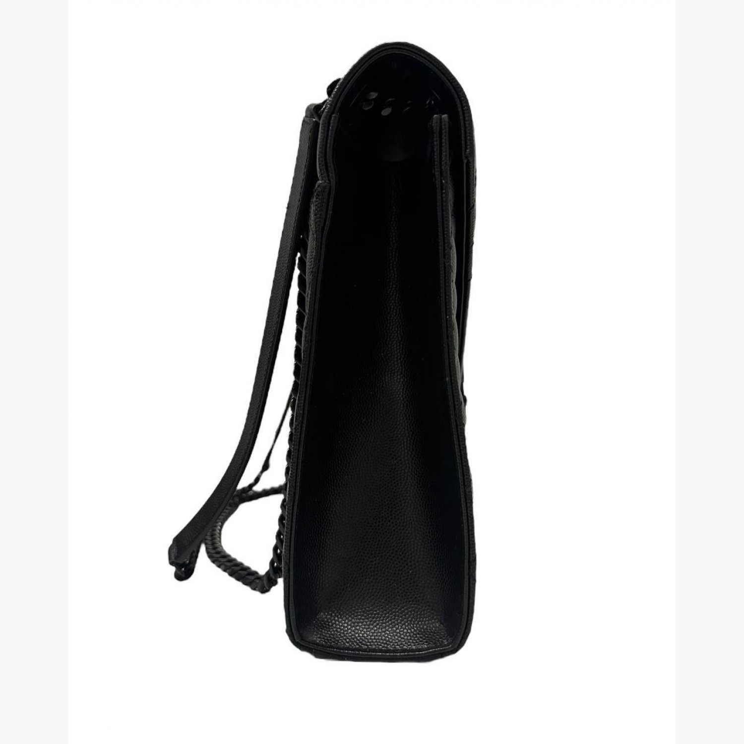 Чёрная кожаная сумка. Внутри одно основное отделение и карман на молнии. Длинная ручка из металлической цепочки. В идеальном состоянии, есть незначительные потертости на коже и фурнитуре.
