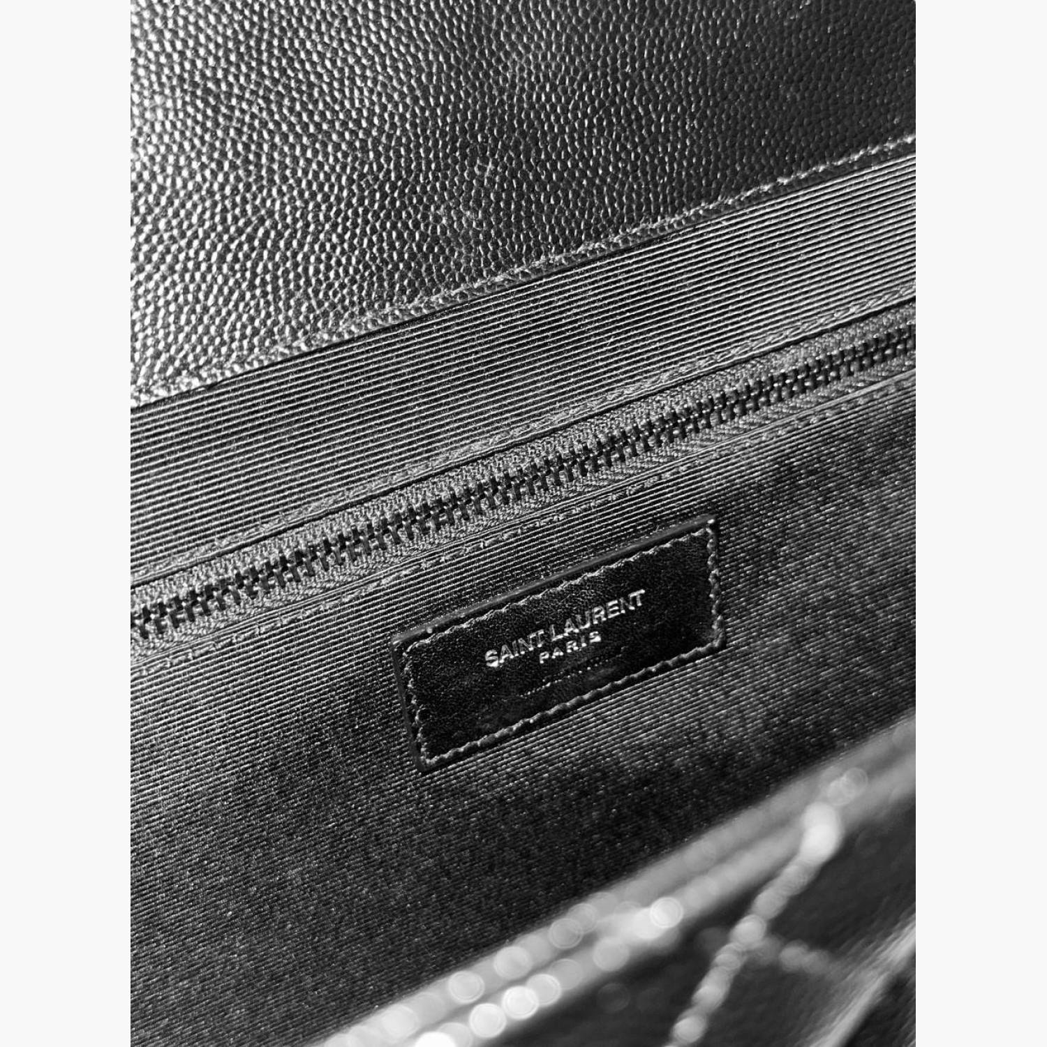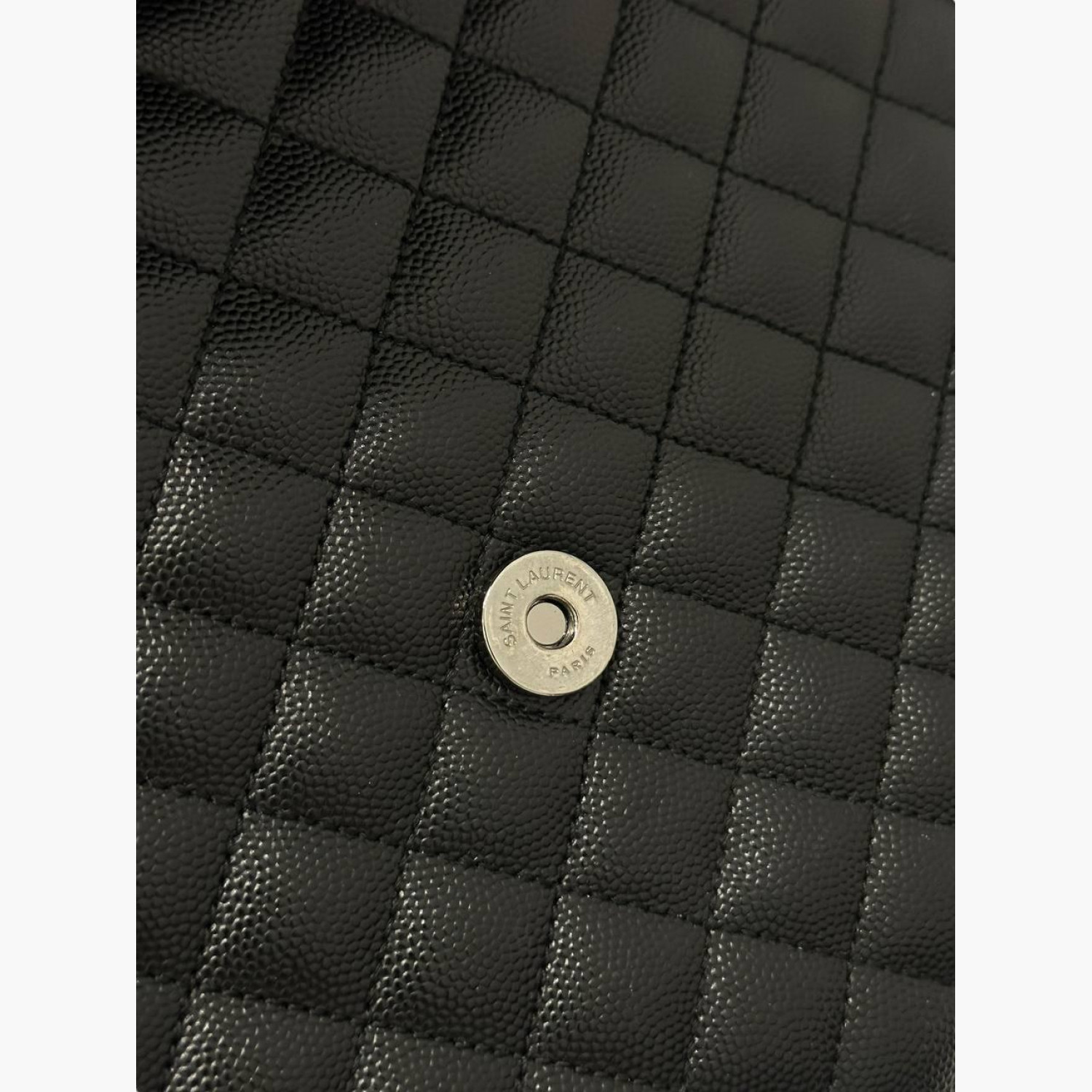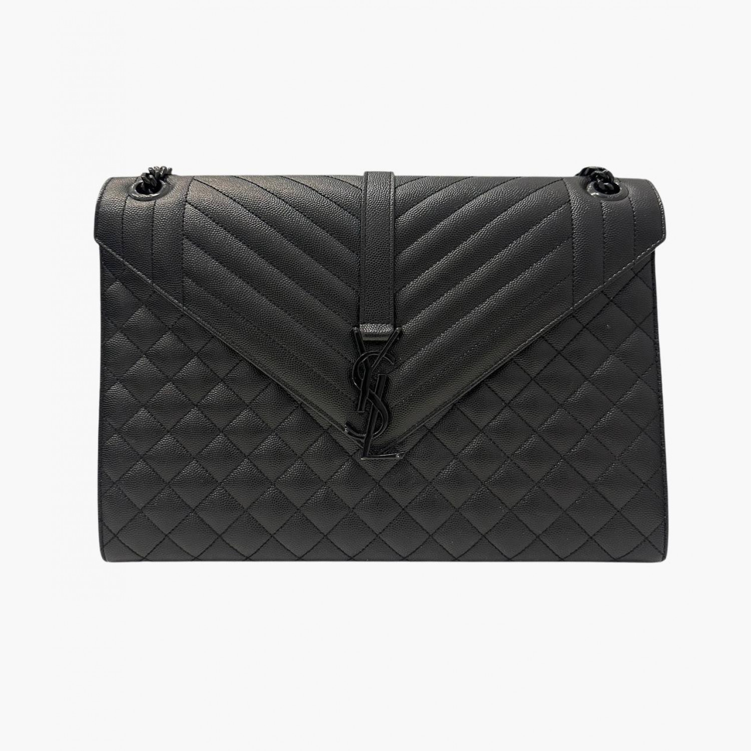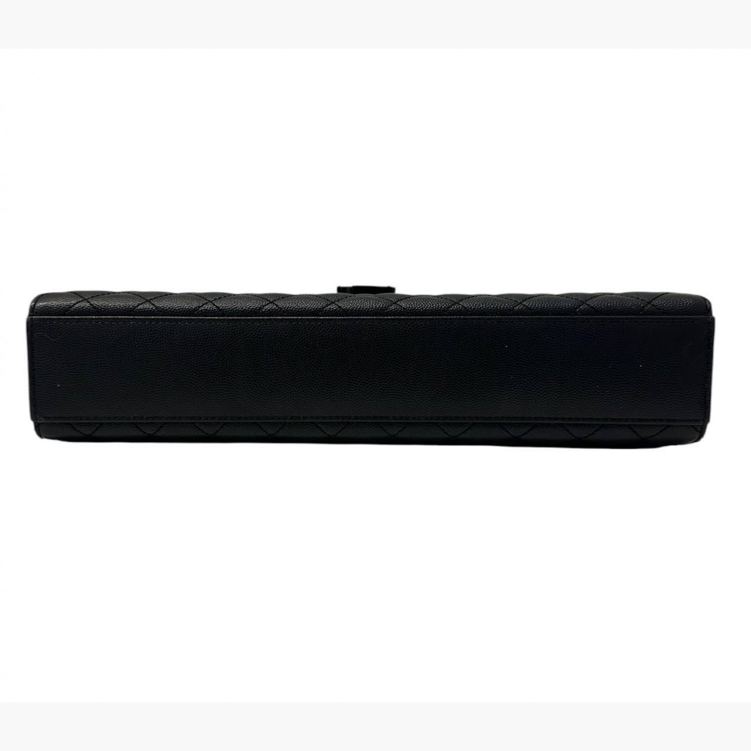 Чёрная кожаная сумка. Внутри одно основное отделение и карман на молнии. Длинная ручка из металлической цепочки. В идеальном состоянии, есть незначительные потертости на коже и фурнитуре.