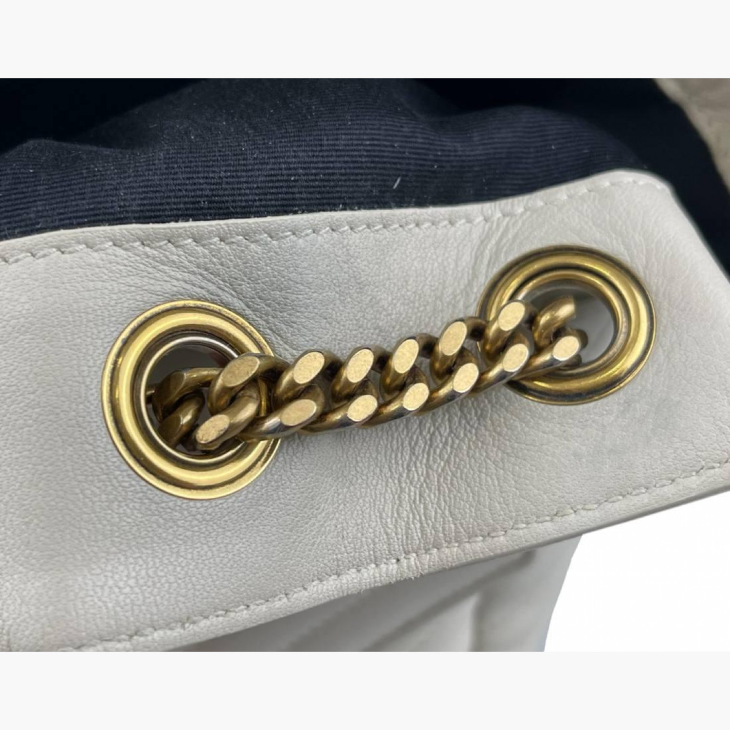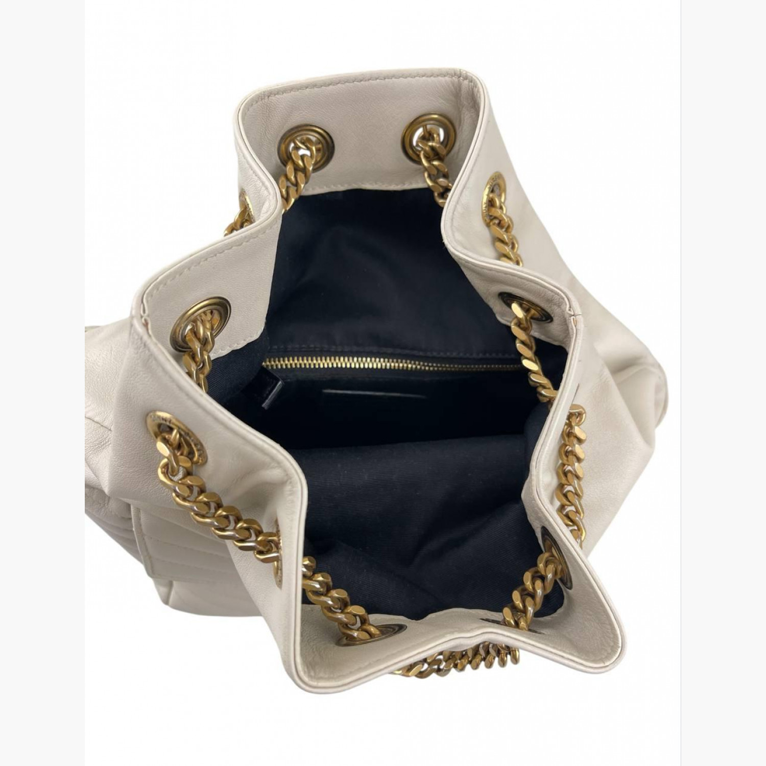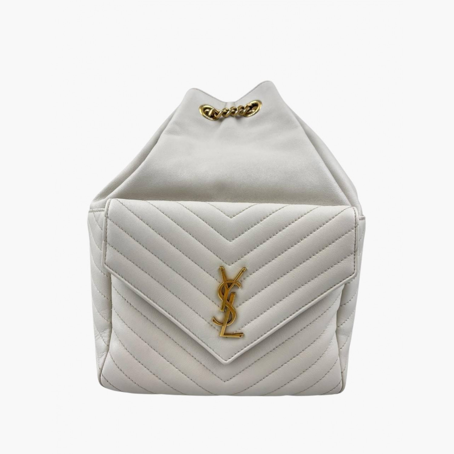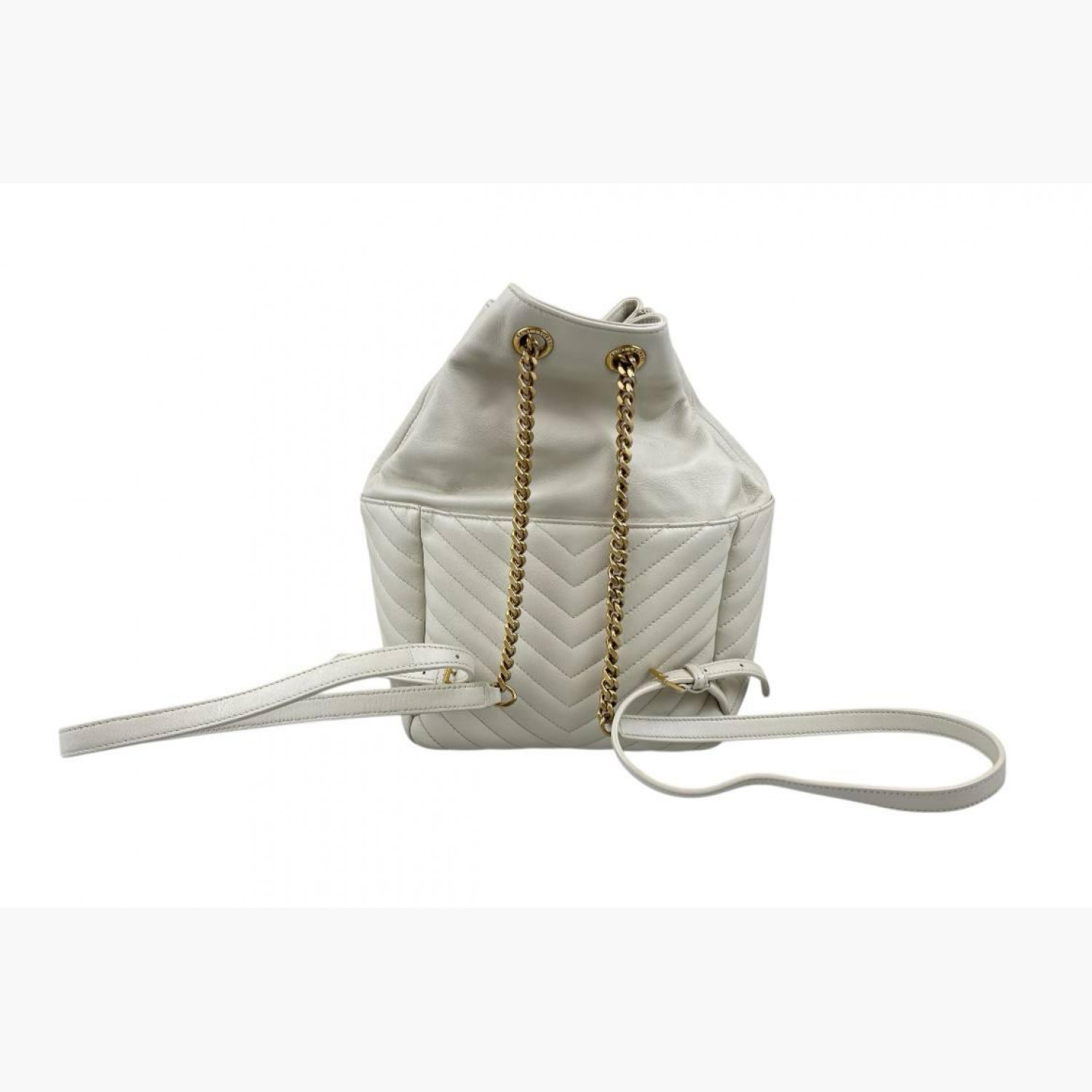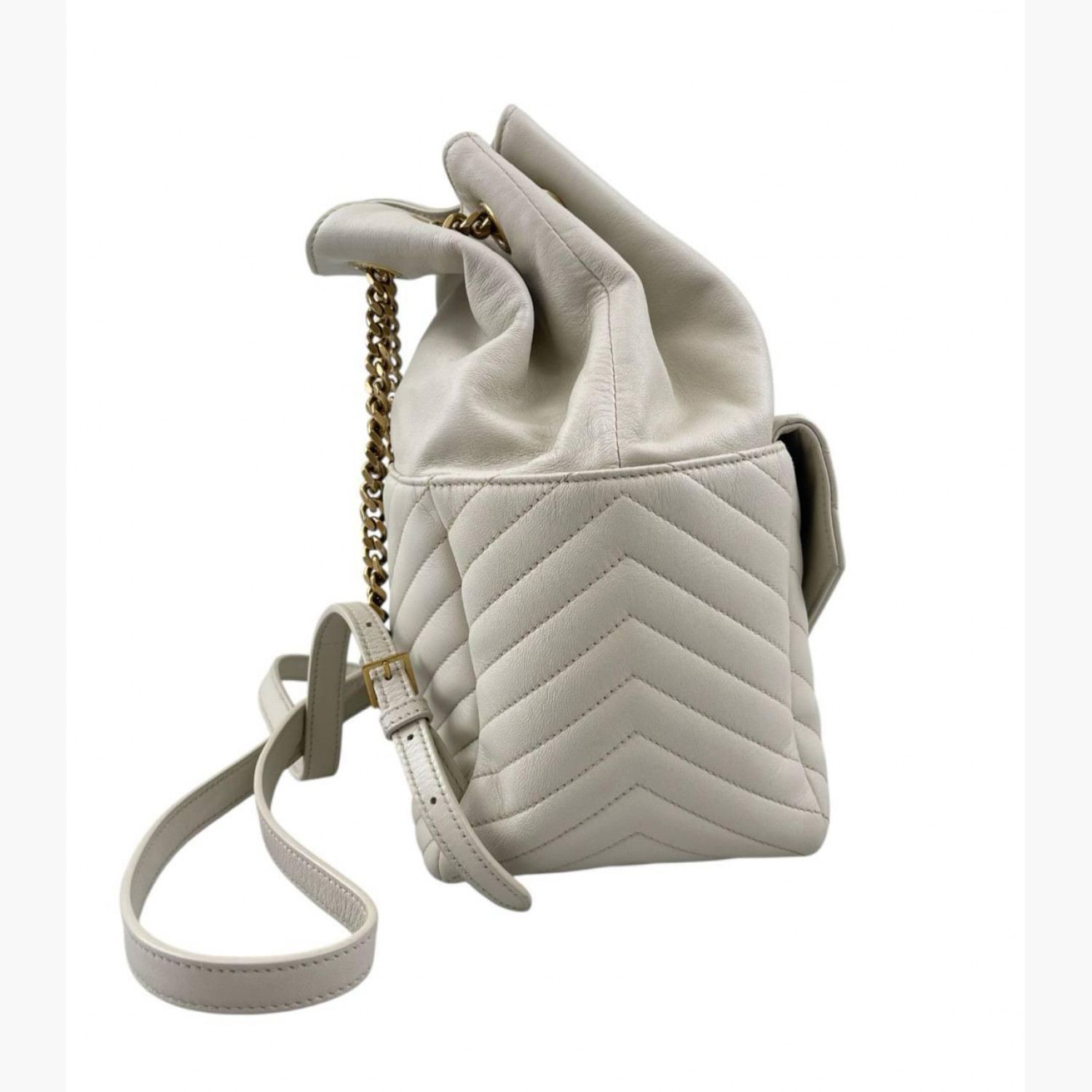 Рюкзак цвета слоновой кости. Внутри одно основное отделение с карманом на молнии, также карман на лицевой стороне рюкзака. Состояние хорошее, есть следы носки.