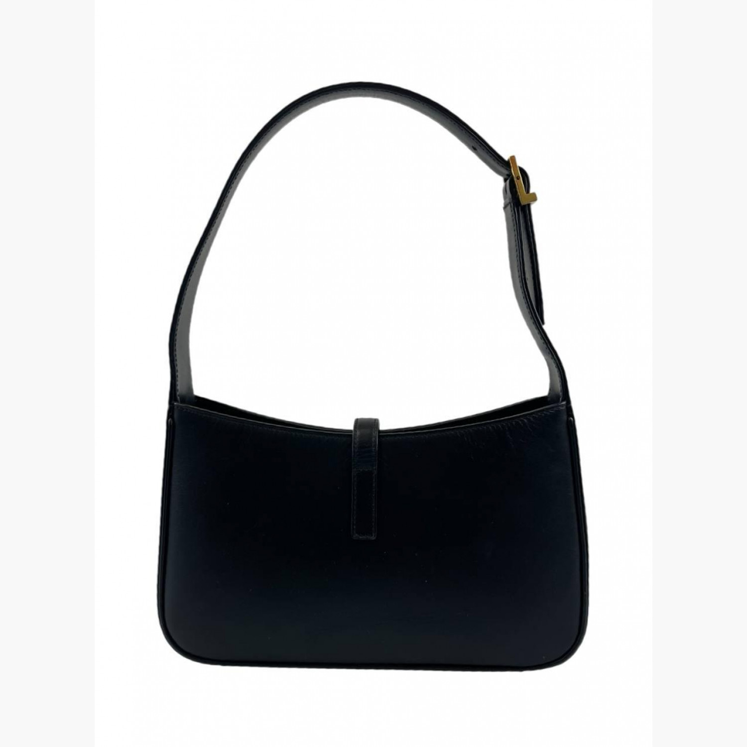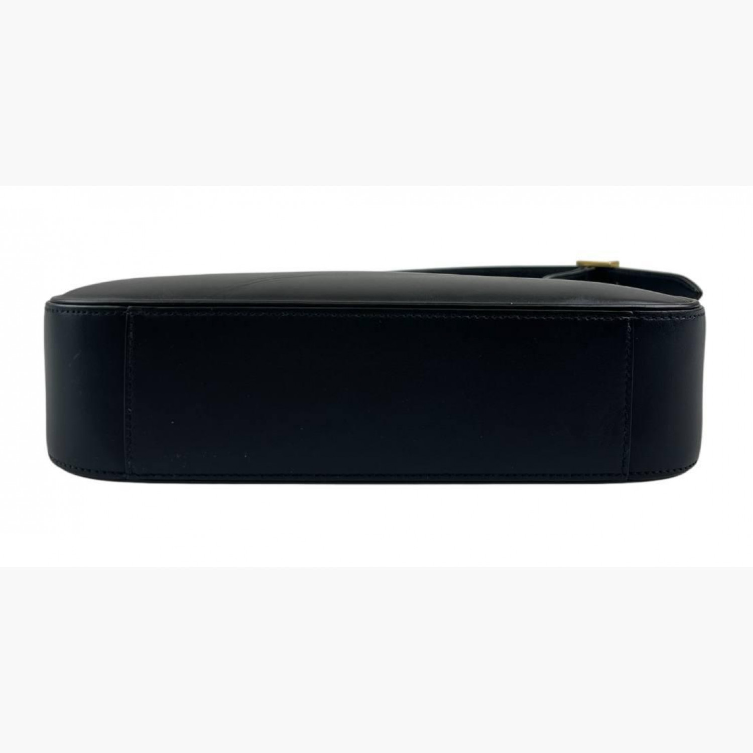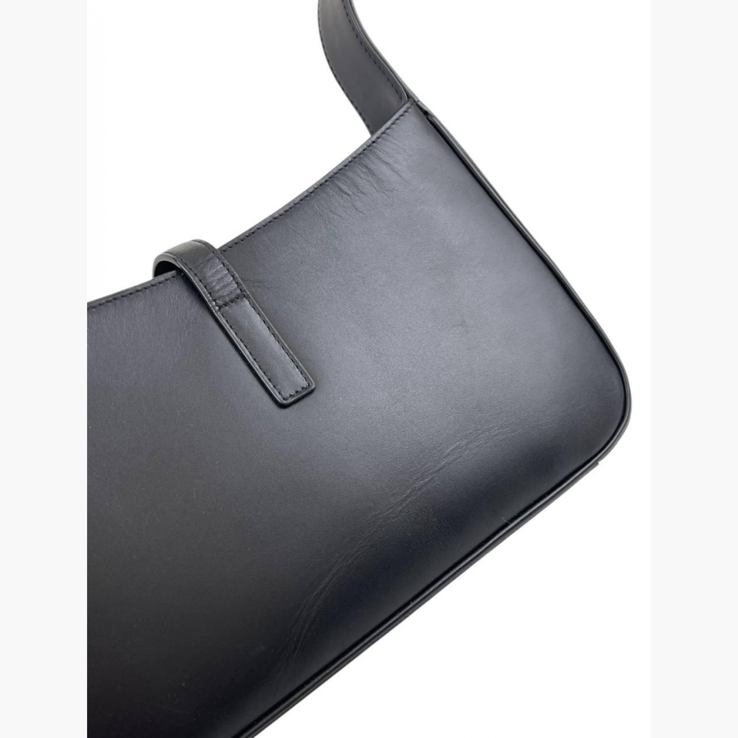 Чёрная кожаная сумка. Регулируемый плечевой ремень. Внутри основное отделение с карманом на молнии. В хорошем состоянии, есть следы носки.