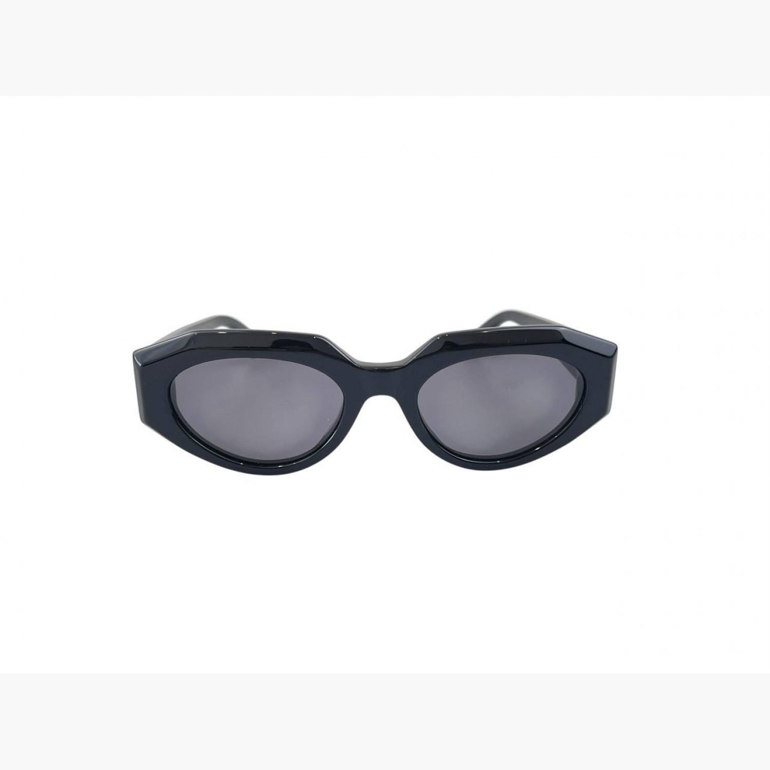 Черные солнцезащитные пластиковые очки с широкой оправой. В комплекте футляр, микрофибра и тряпочка. В очень хорошем состоянии, есть незначительные потертости на дужках.