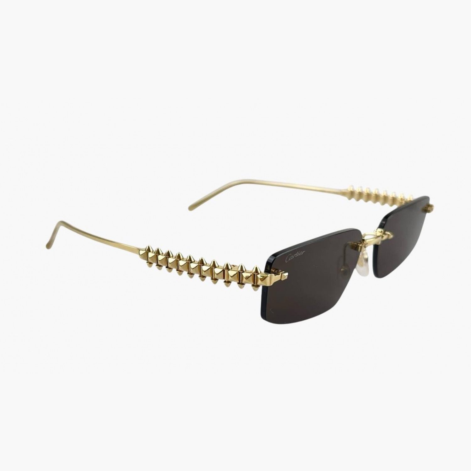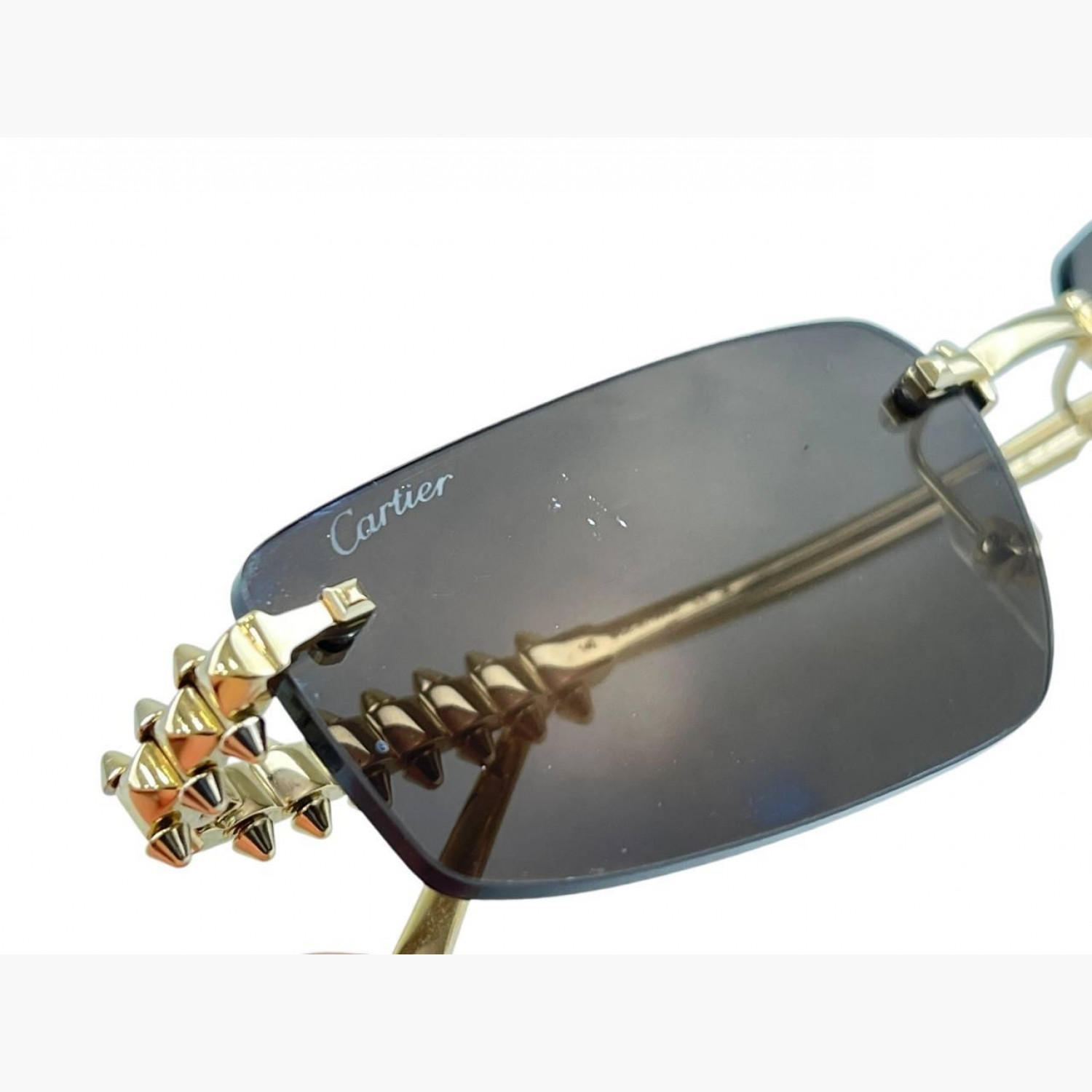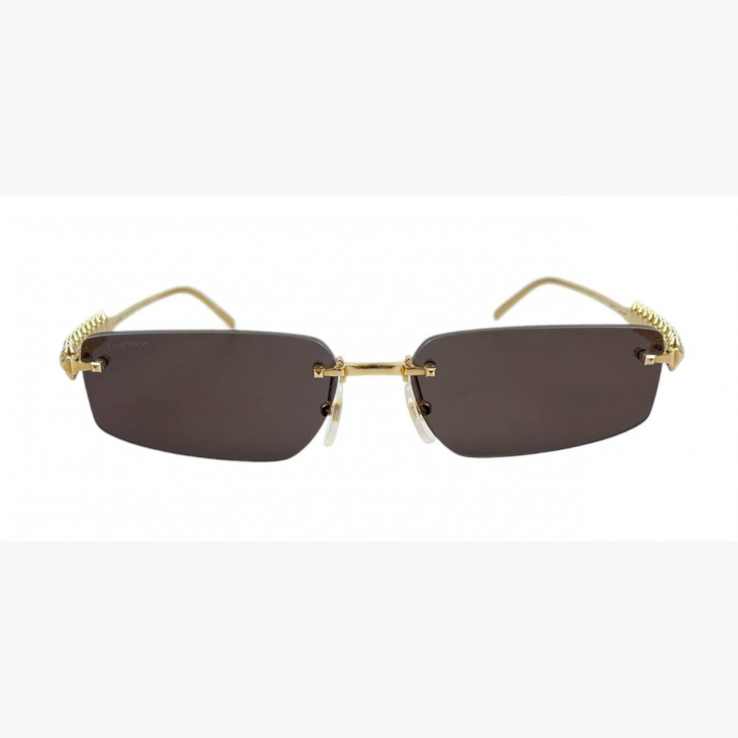 Прямоугольные солнцезащитные очки чёрного цвета с металлическими дужками. В комплекте футляр, тряпочка для протирания и инструкции по уходу. В хорошем состоянии, есть потертости.