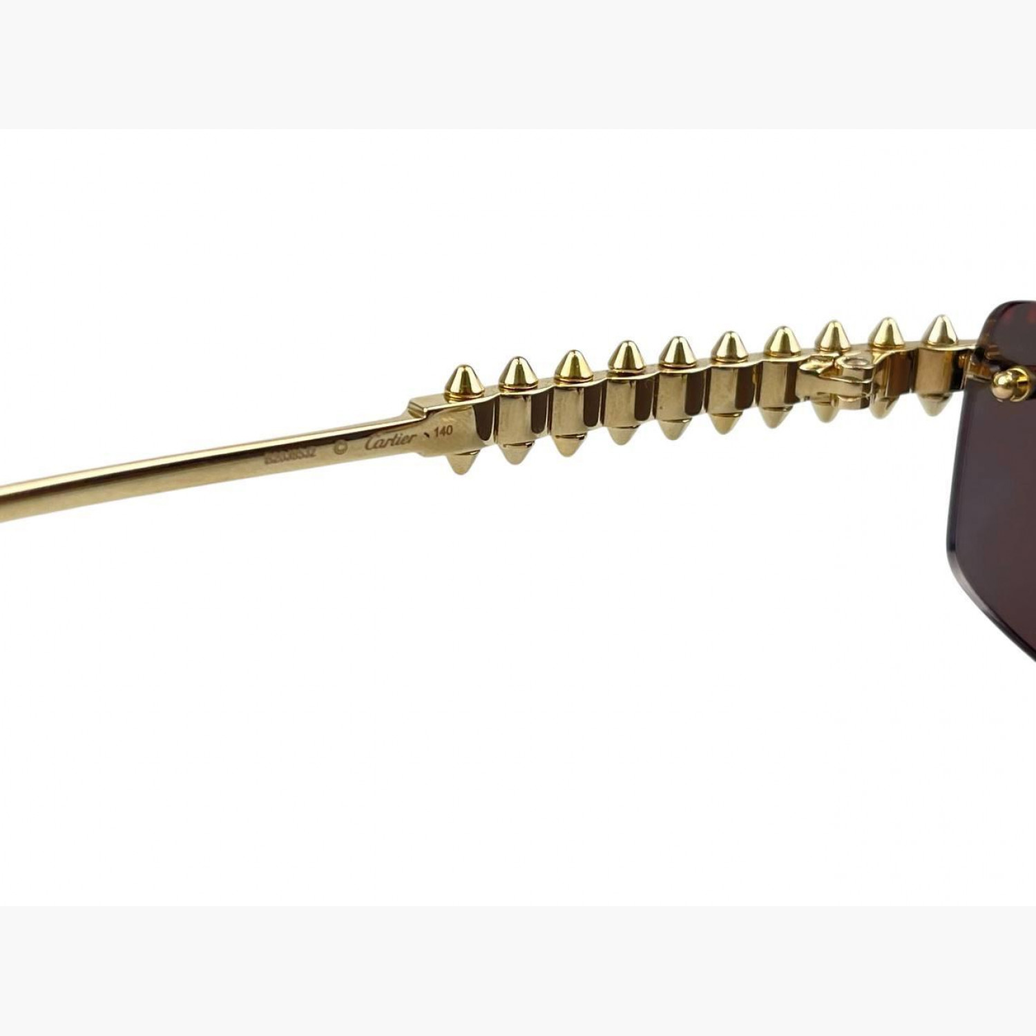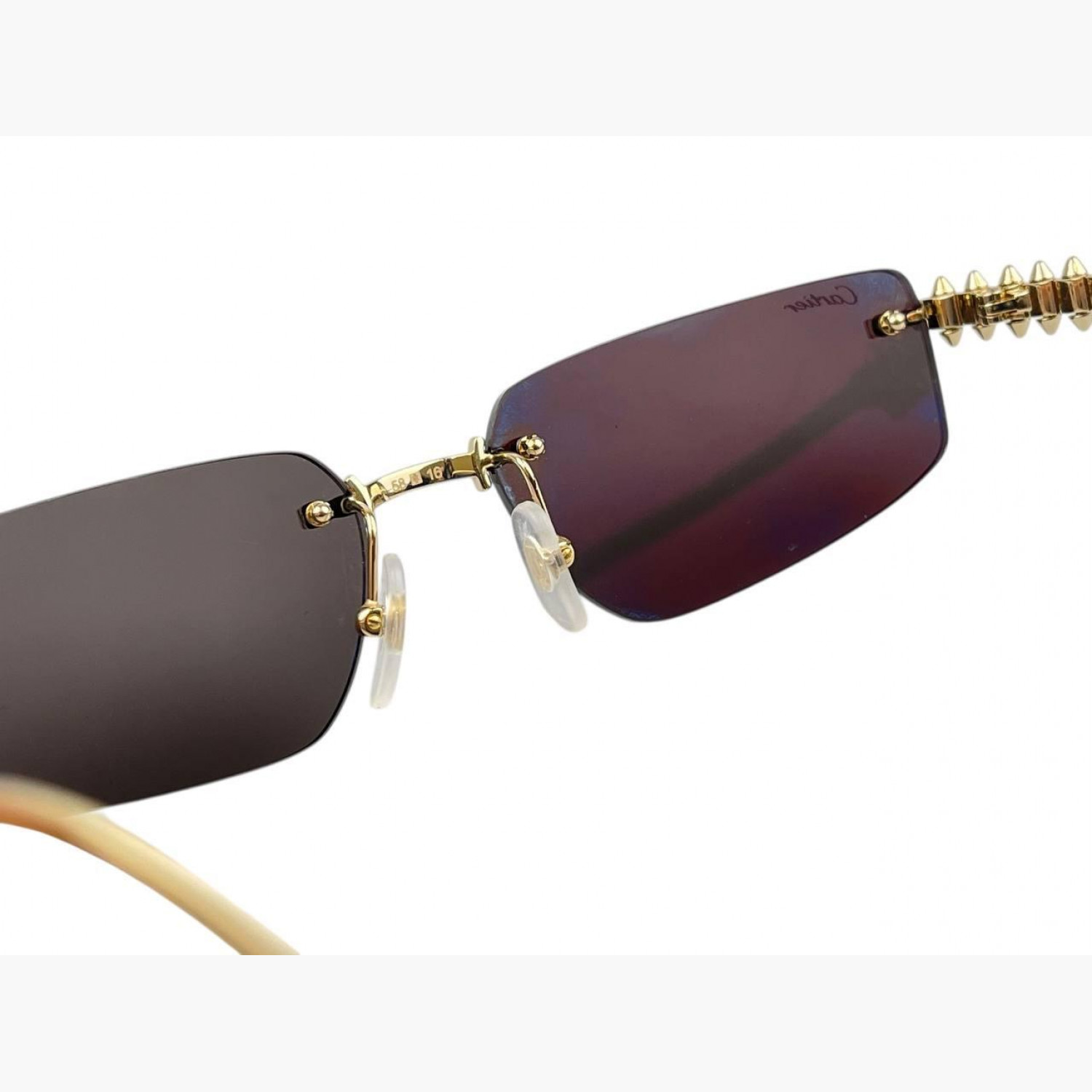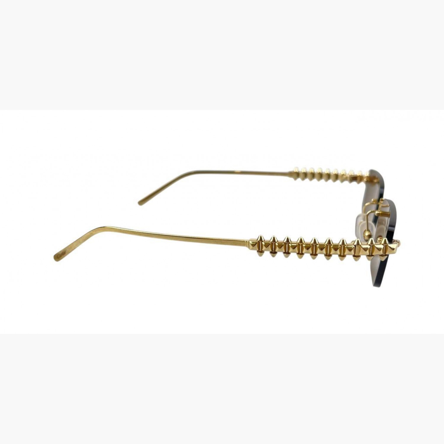 Прямоугольные солнцезащитные очки чёрного цвета с металлическими дужками. В комплекте футляр, тряпочка для протирания и инструкции по уходу. В хорошем состоянии, есть потертости.