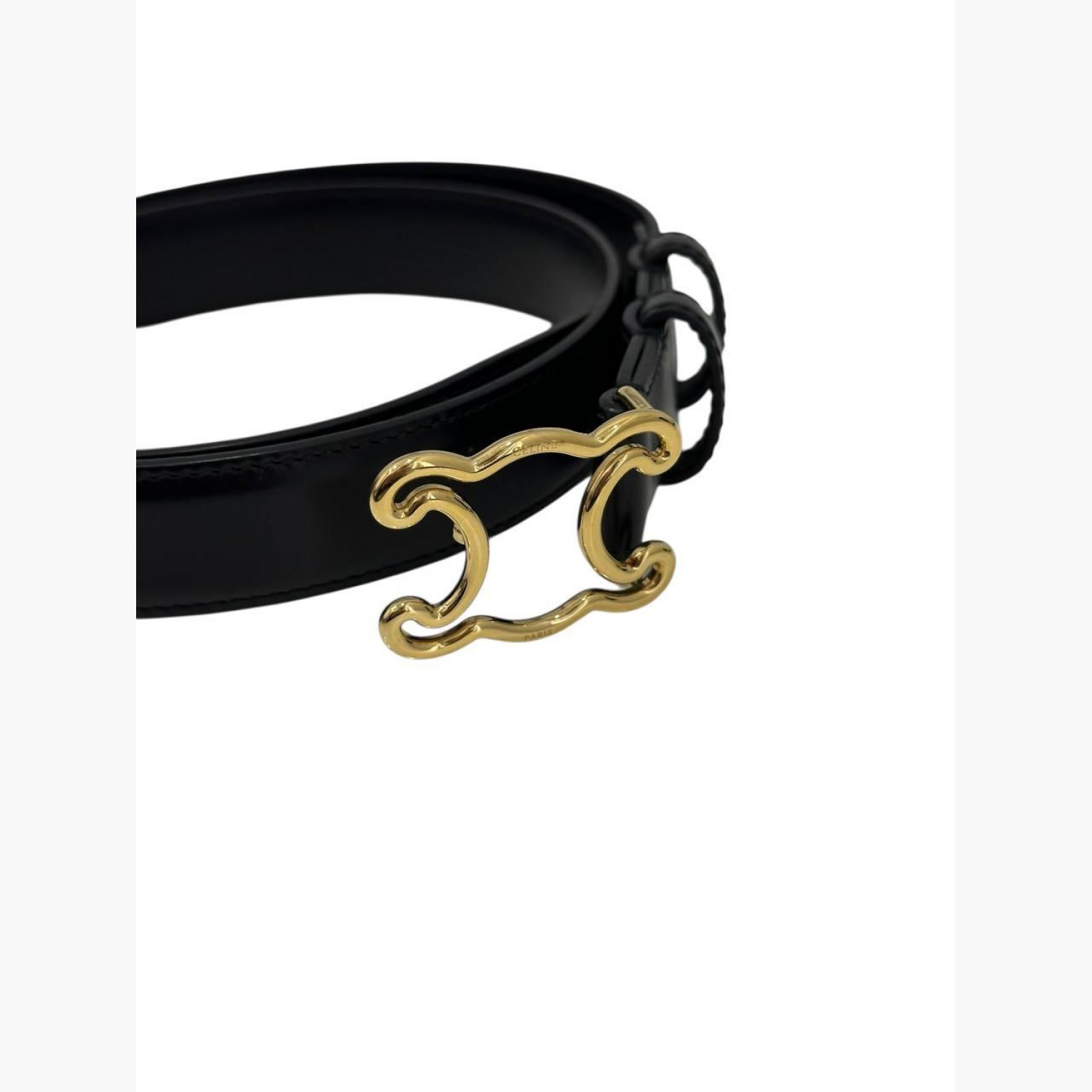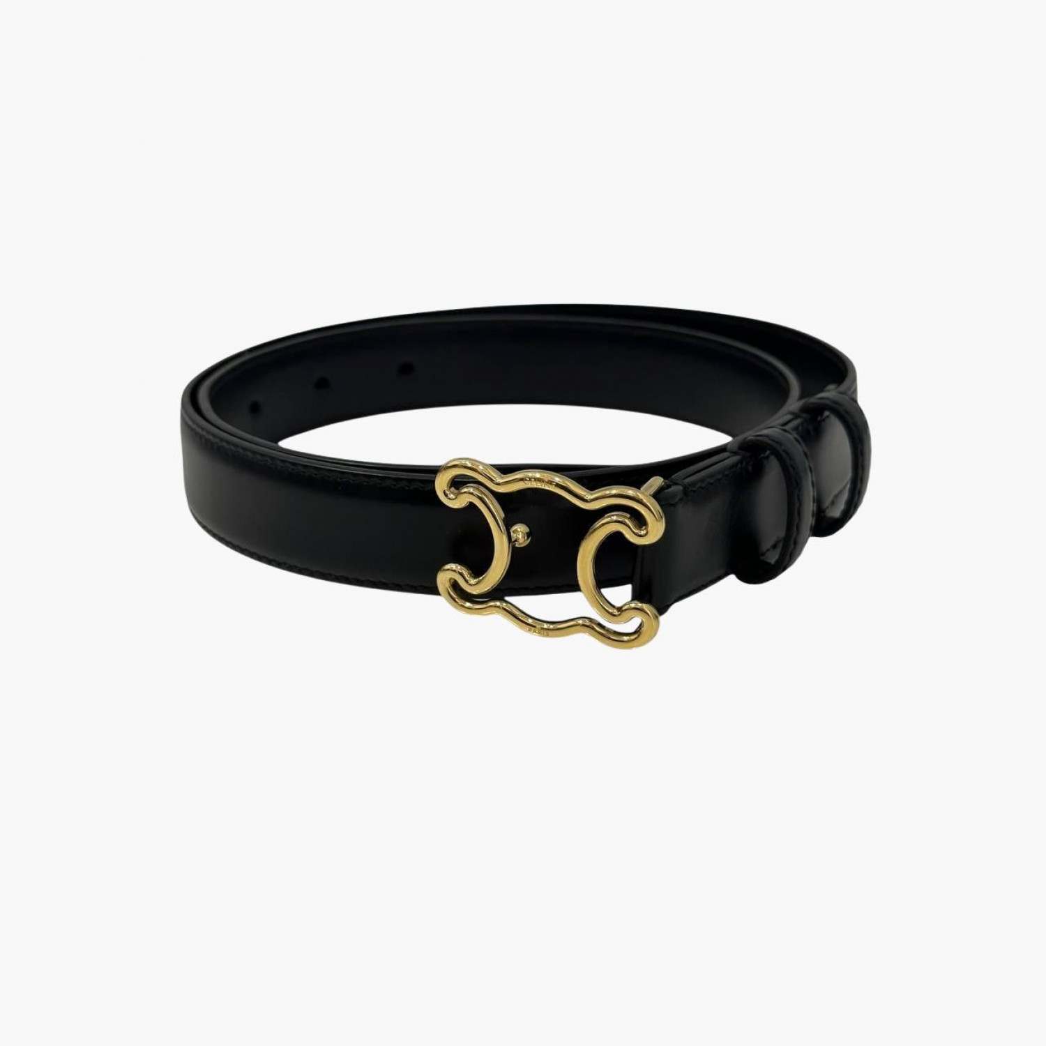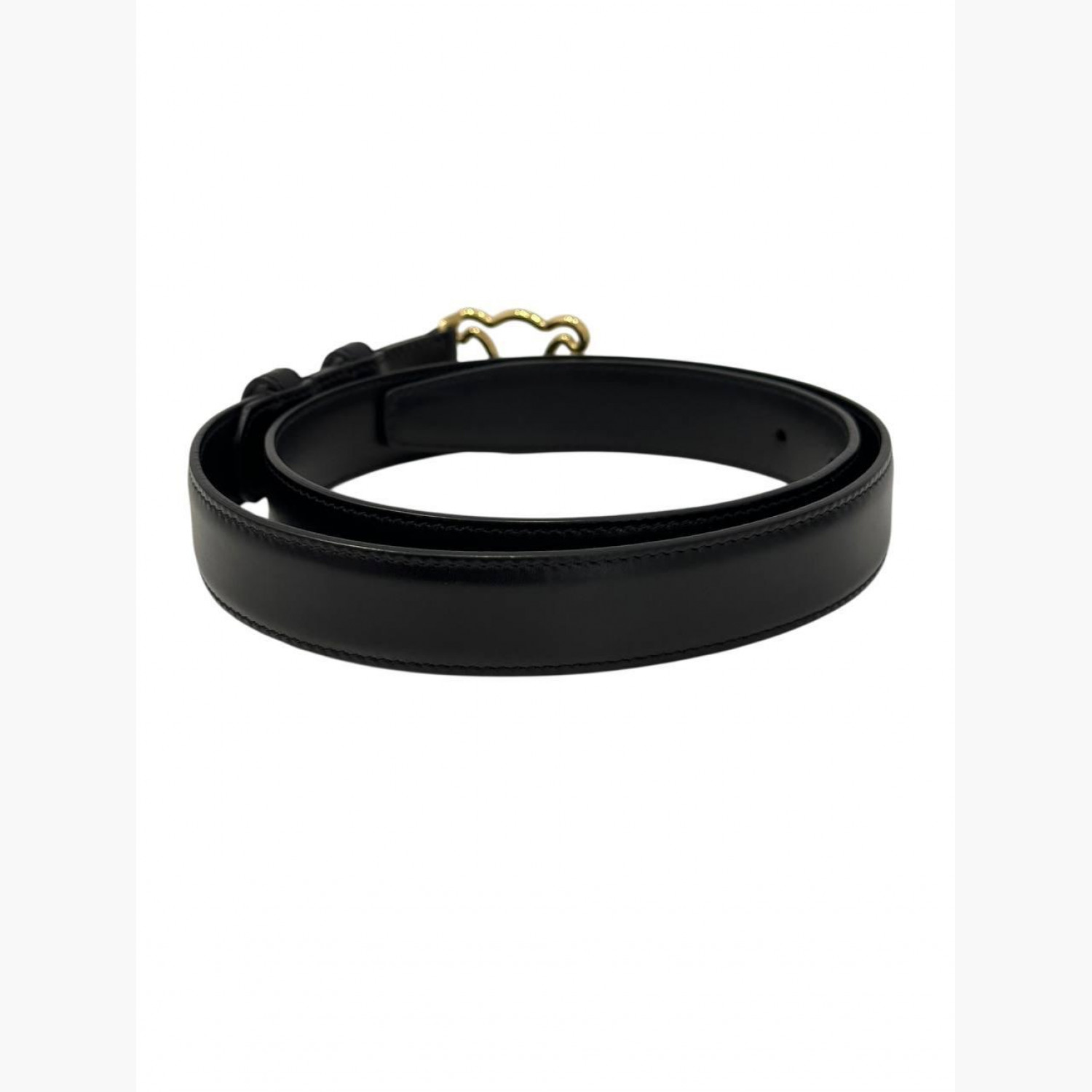 Черный кожаный ремень с золотистой пряжкой. В идеальном состоянии, есть следы носки.
