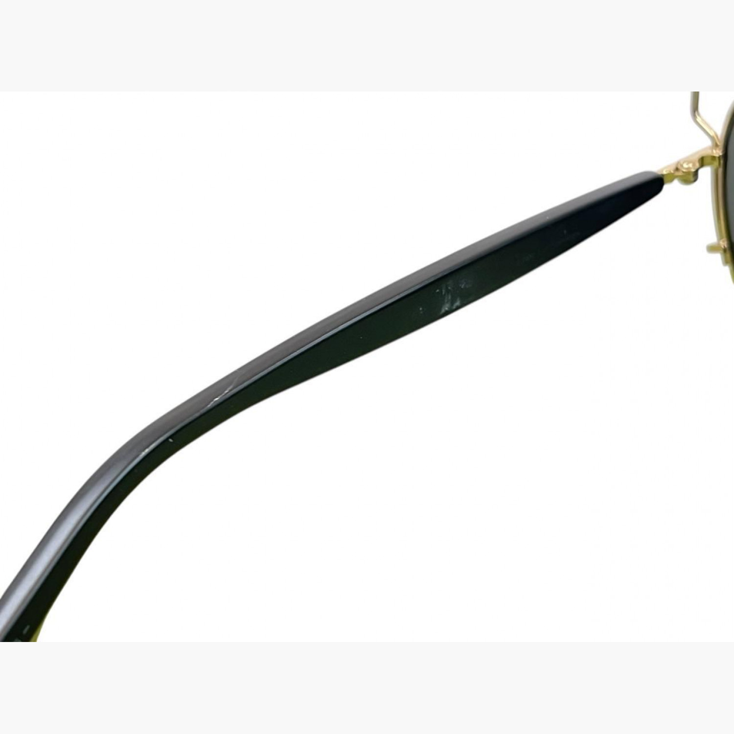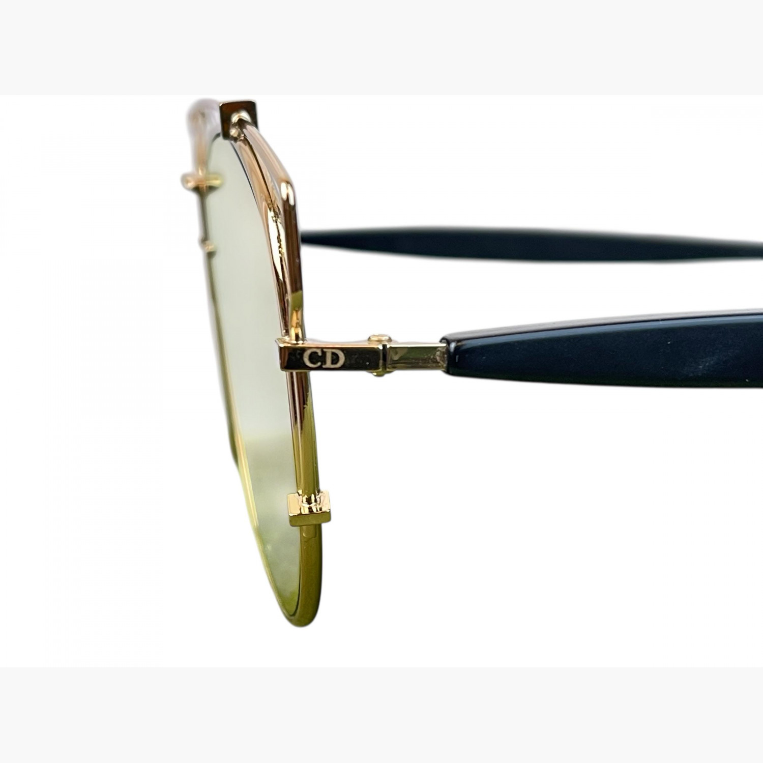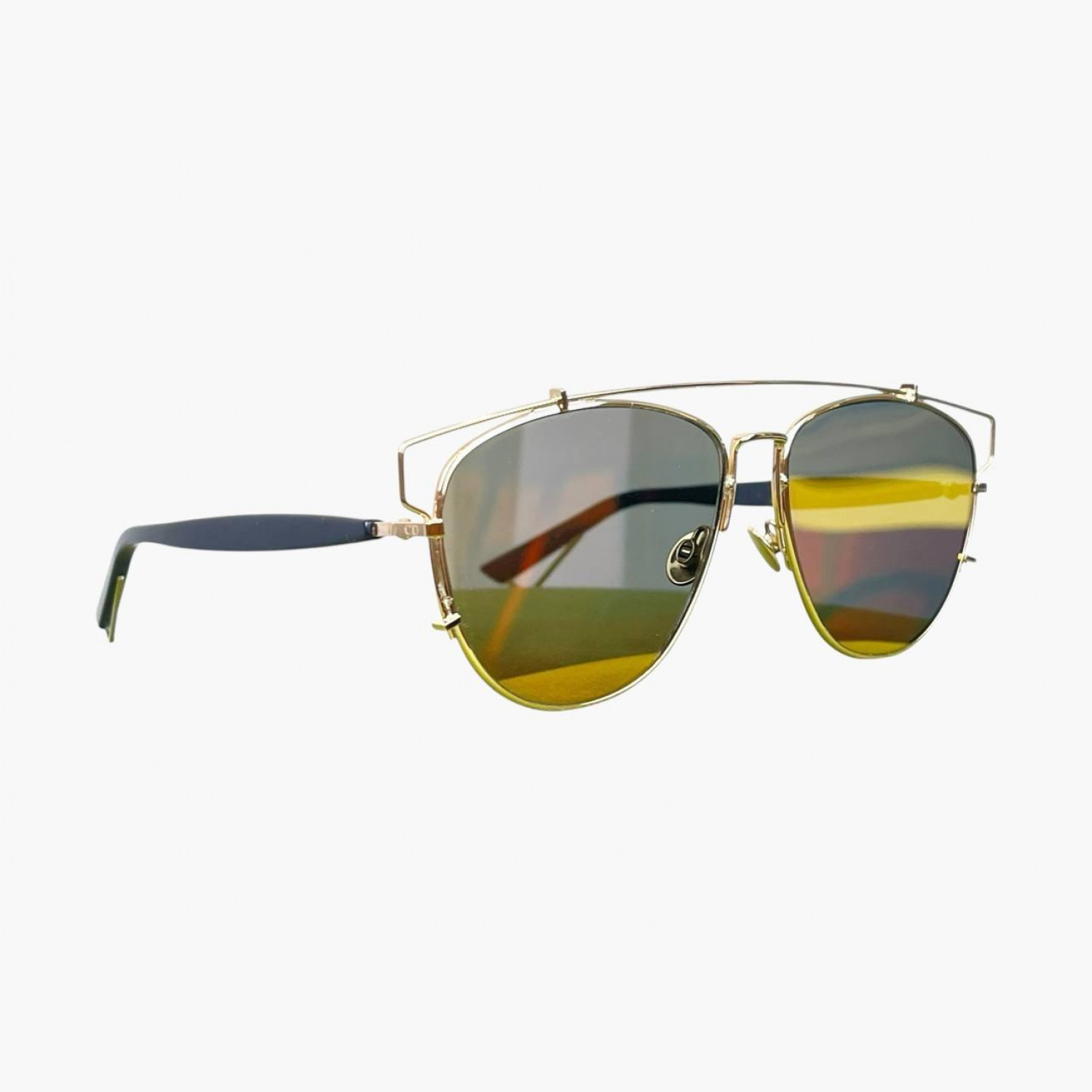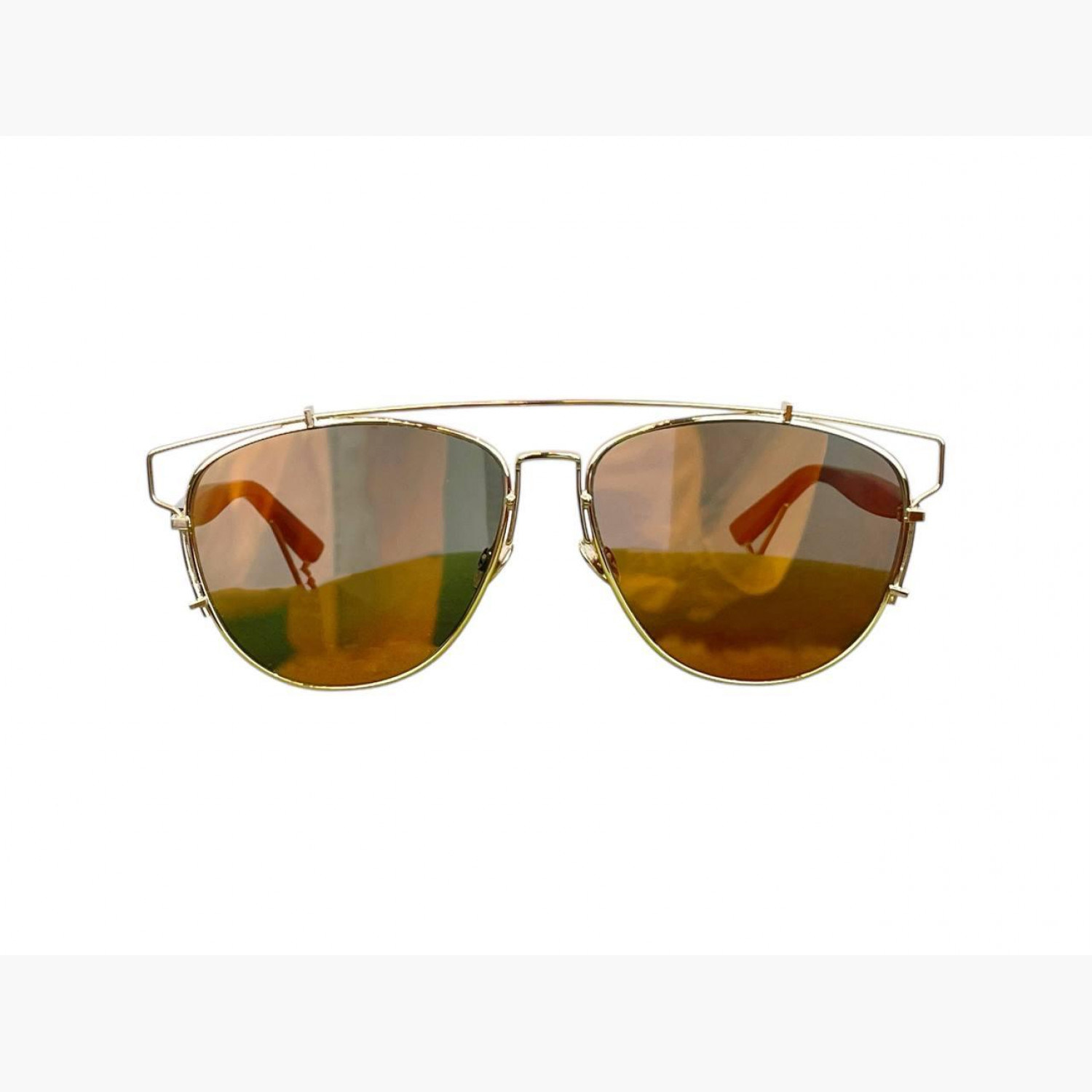 Солнцезащитные очки с линзой-хамелеон и тонкой металлической оправой золотого цвета. В комплекте фирменный футляр. В хорошем состоянии, есть следы носки.