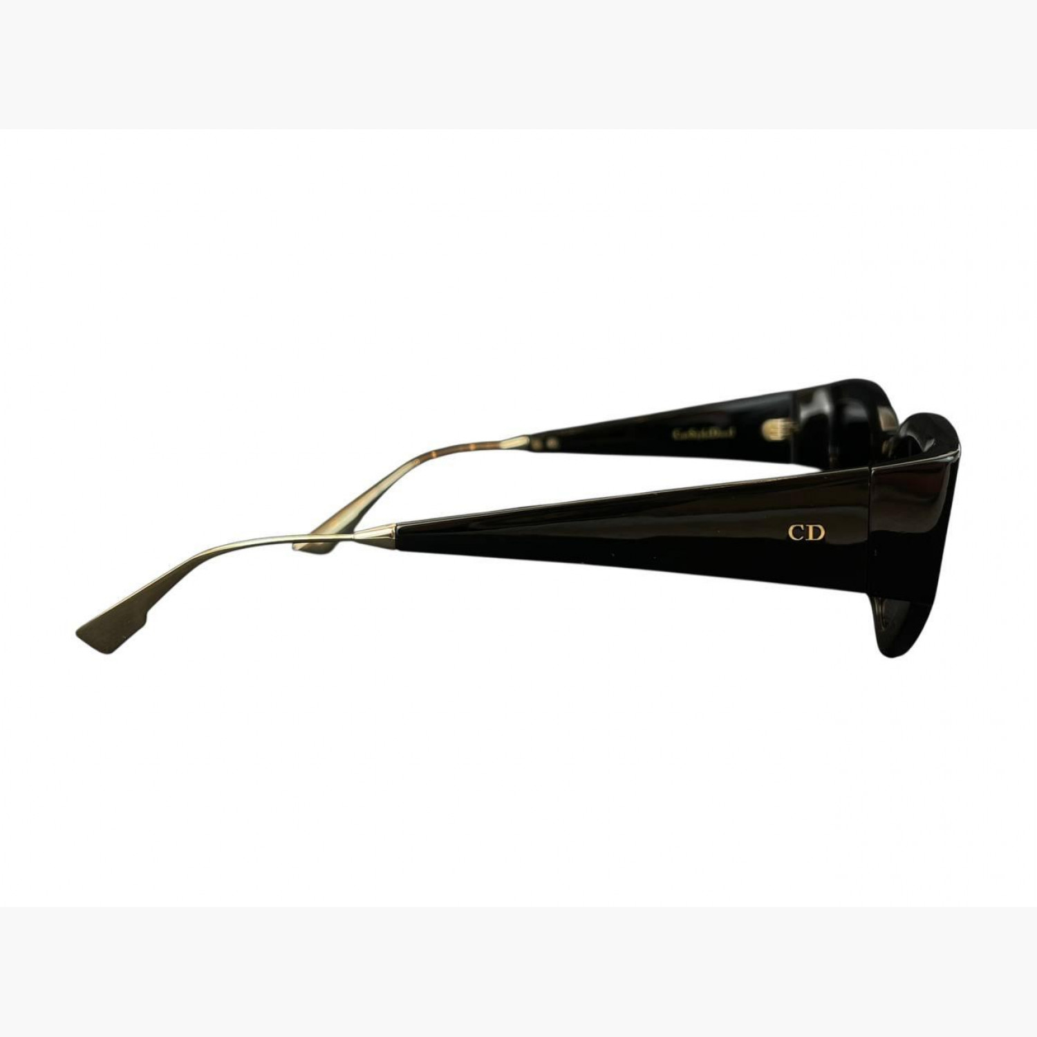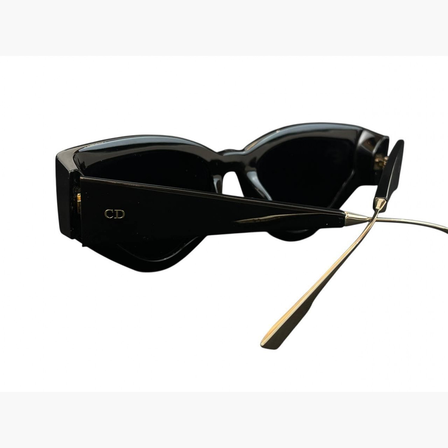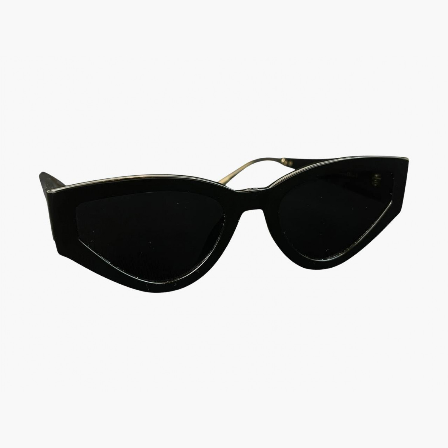 Черные солнцезащитные пластиковые очки с вытянутыми уголками линз в форме «кошачьего глаза». К очкам прилагаются фирменный футляр и тряпочка для протирания линз. В отличном состоянии, без значительных следов носки.