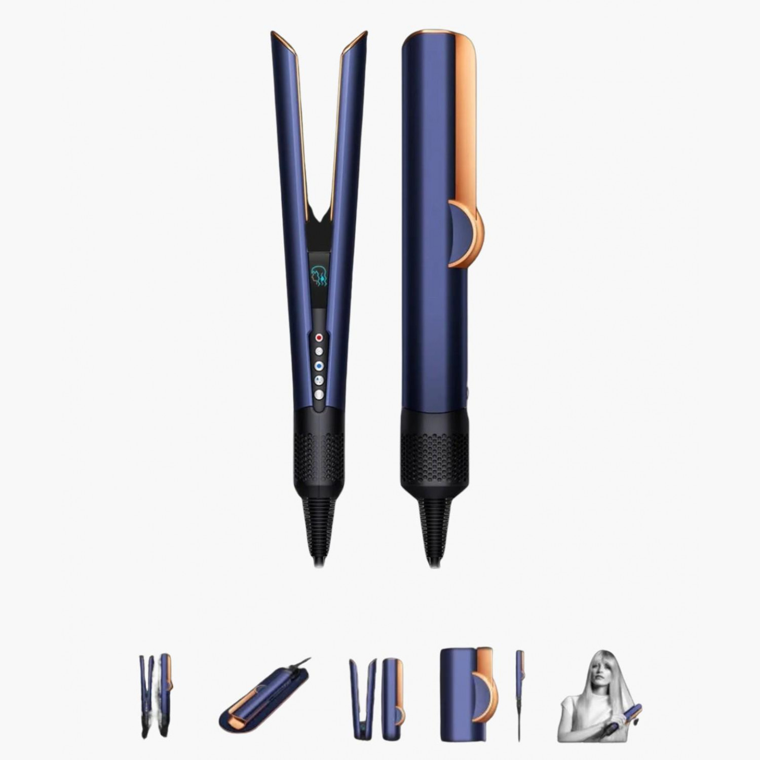 Выпрямитель для волос Dyson Airstrait HT01. Цвет Prussian Blue/Rich Copper. Одновременно сушит и выпрямляет влажные волосы.