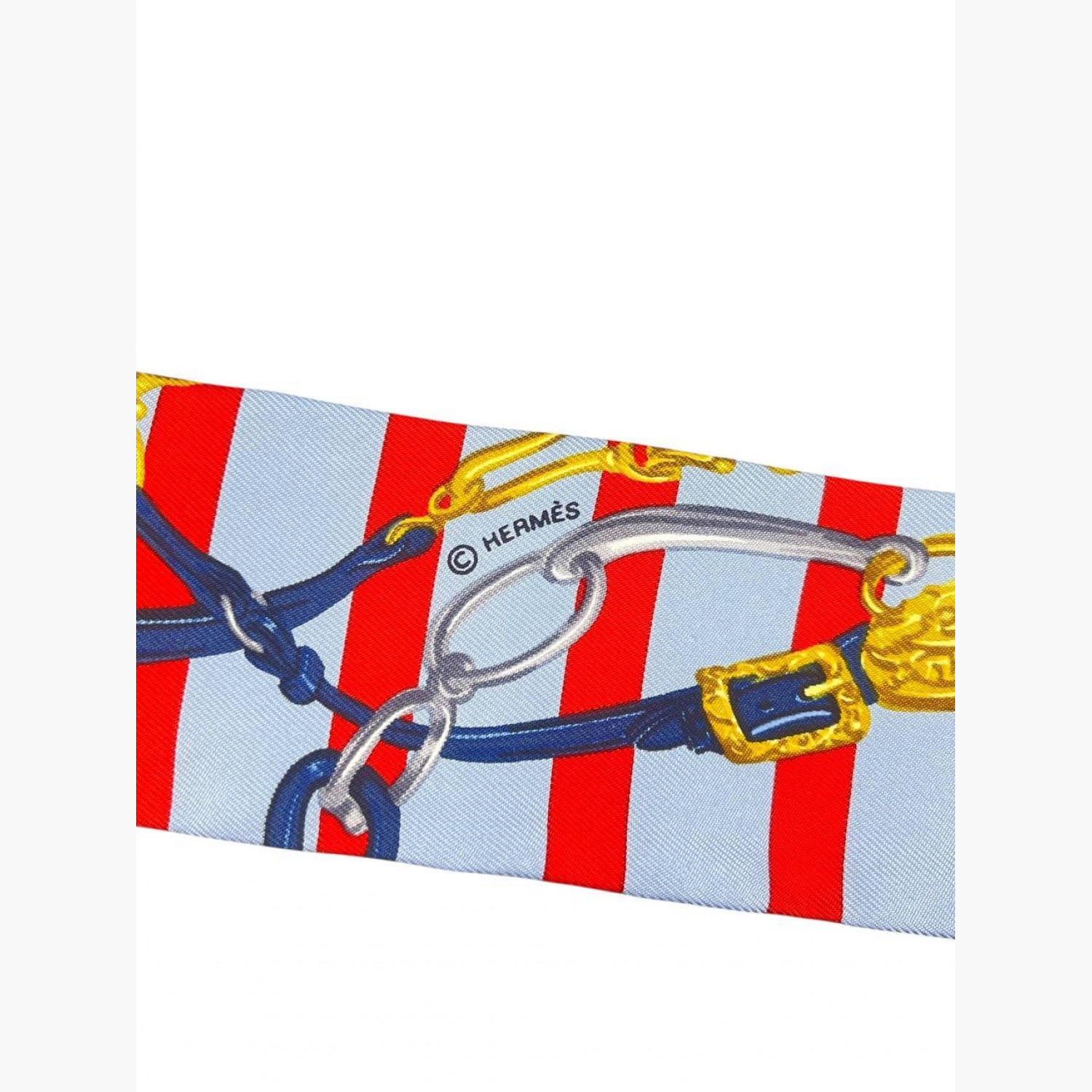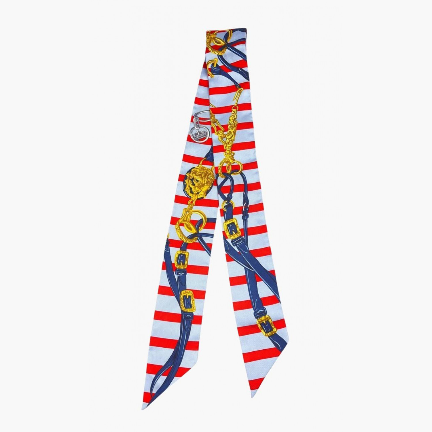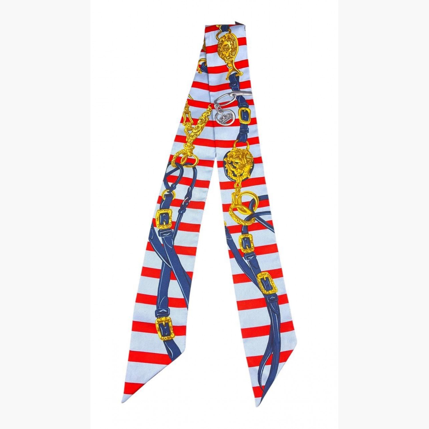 Шёлковое твилли голубого цвета в красную полоску. В отличном состоянии, без следов носки.
