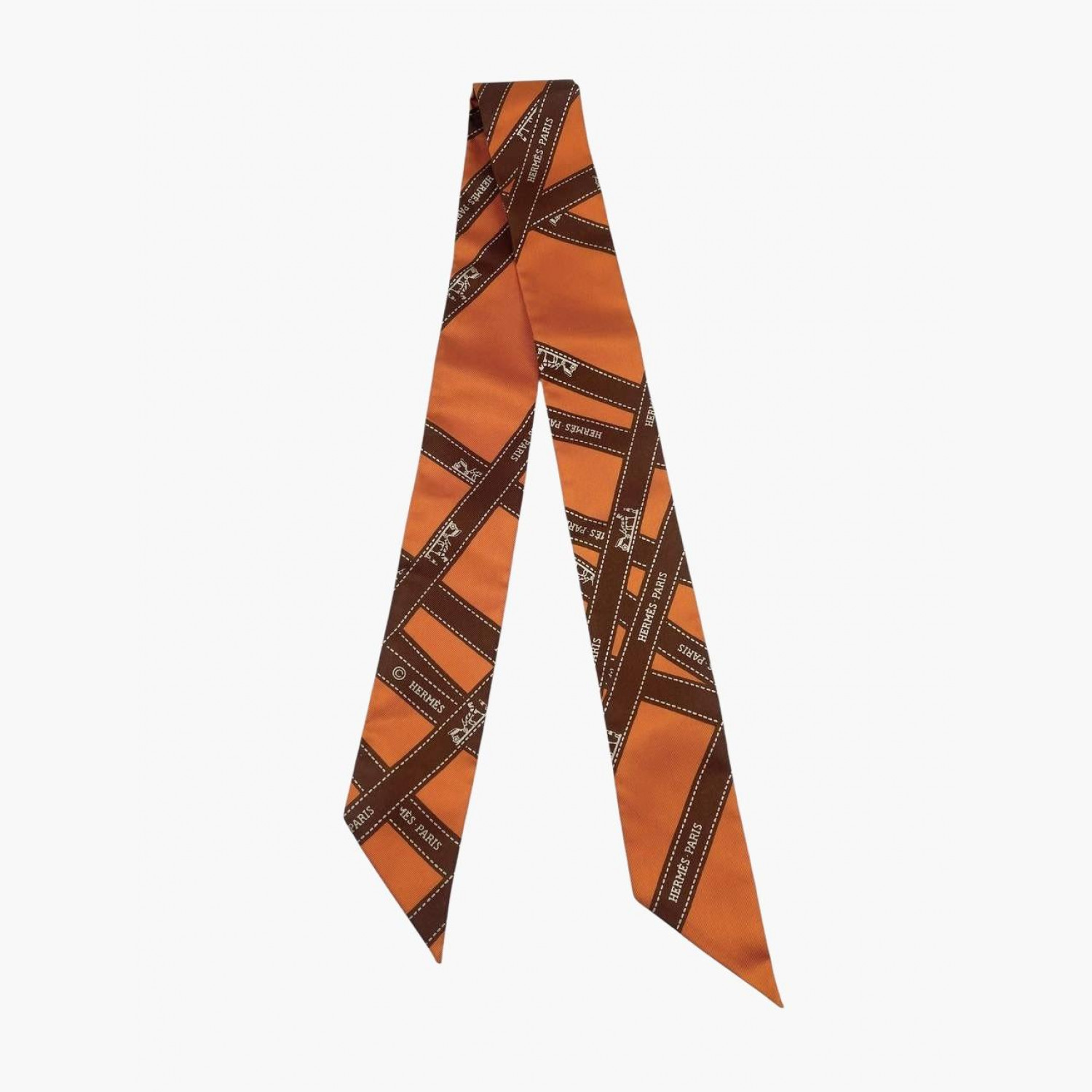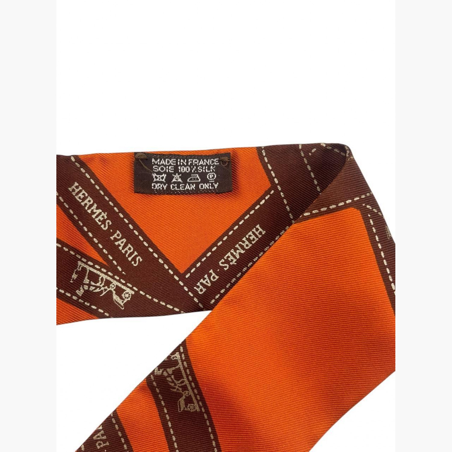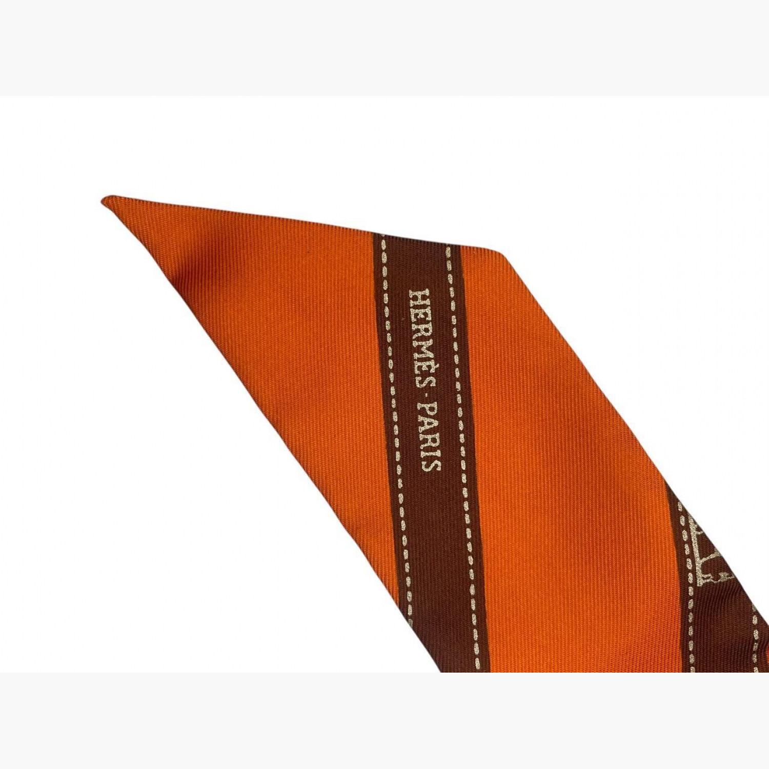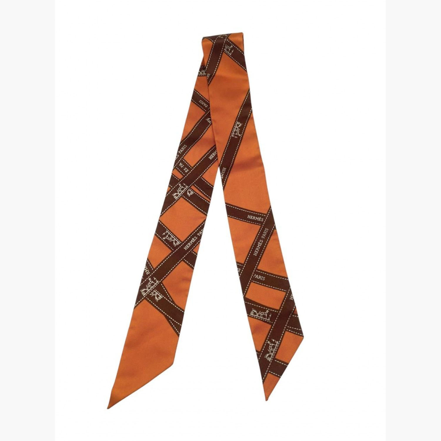 Шёлковое твилли оранжевого цвета с изображением брендовой ленточки. В отличном состоянии, без следов носки.