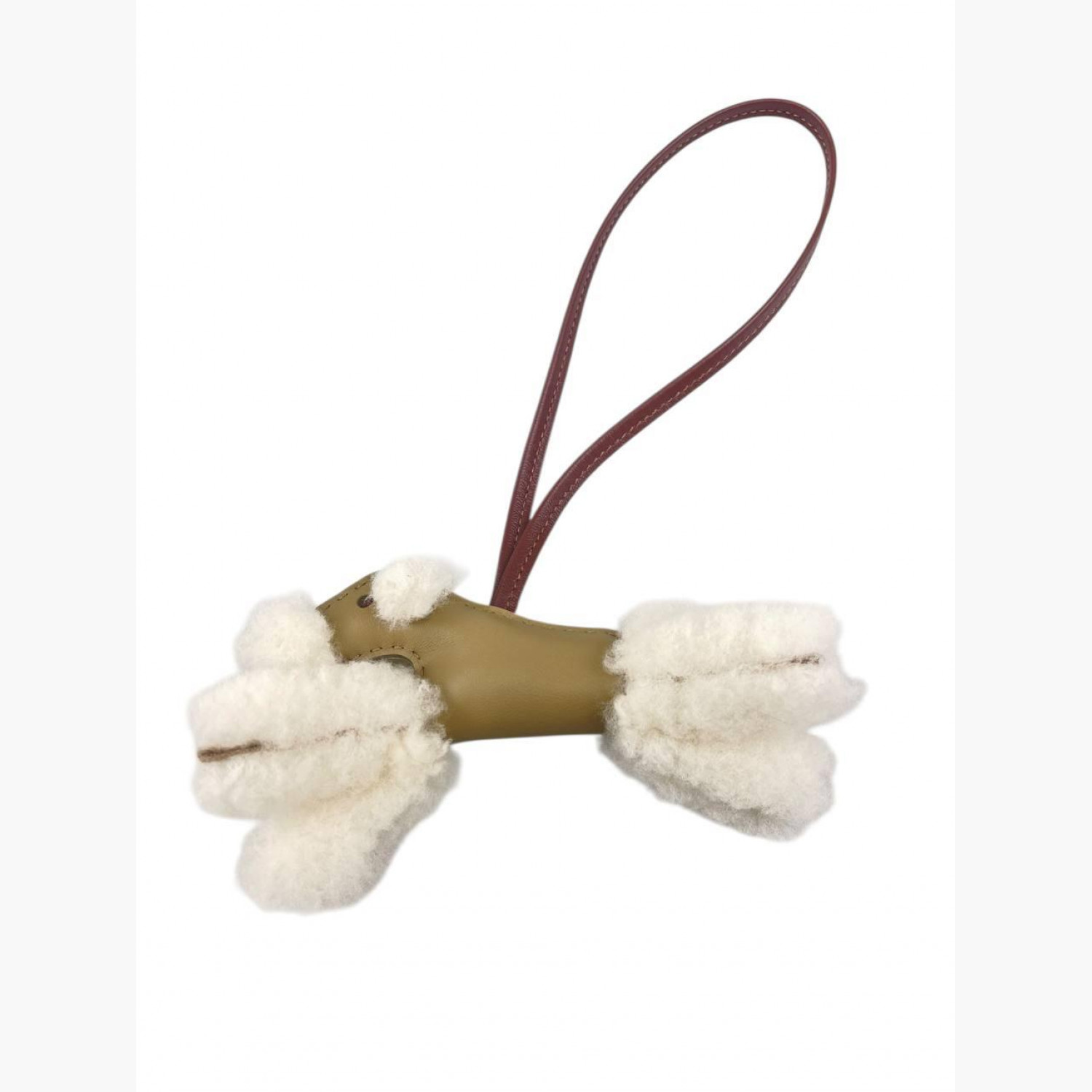 Шарм-брелок на сумку в виде собаки, выполнен из кожи и белого меха. Абсолютно новый.