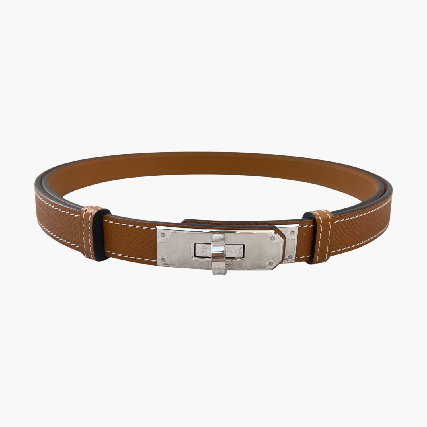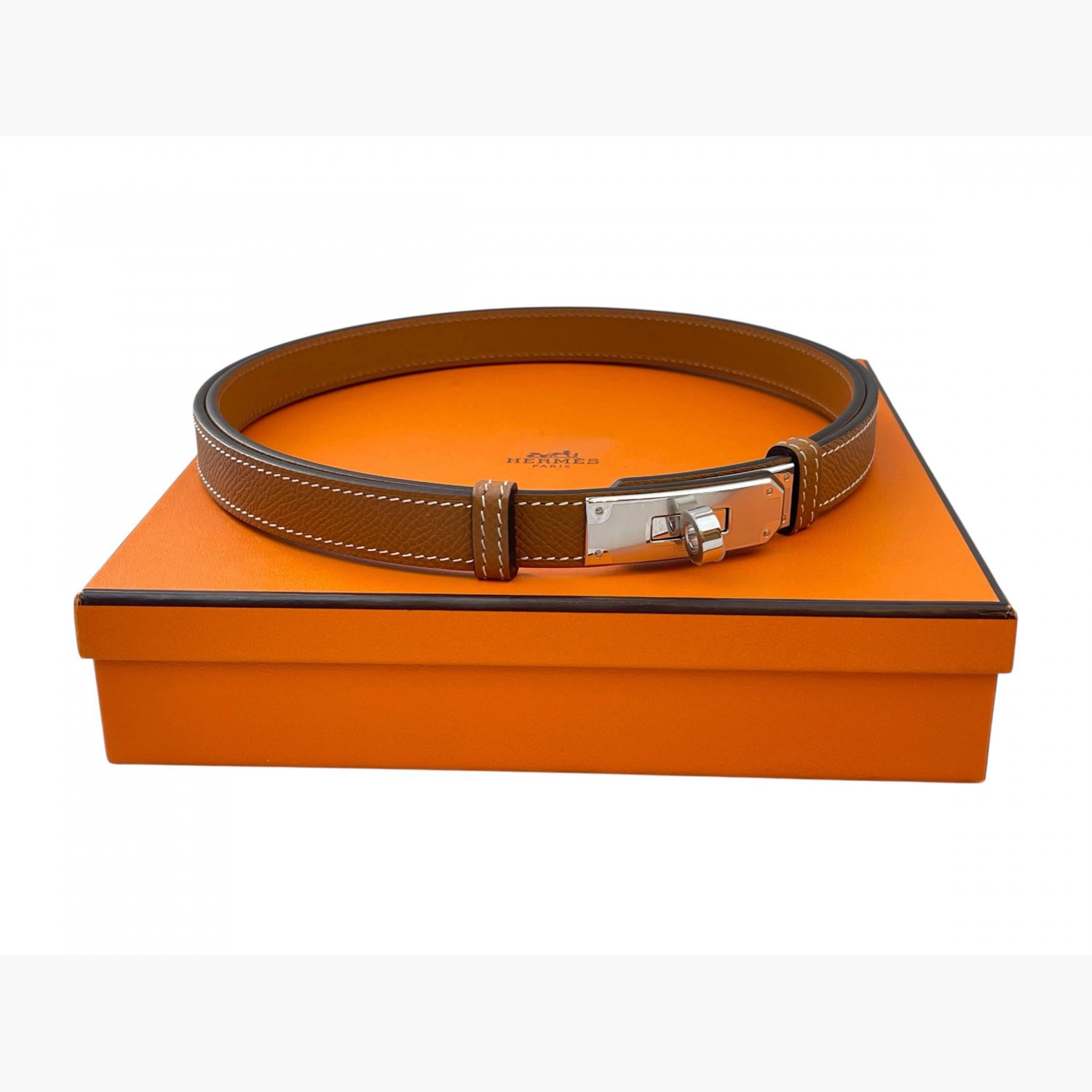 Коричневый кожаный ремень с металлическим замком Kelly серебряного цвета, размер регулируется. Абсолютно новый.