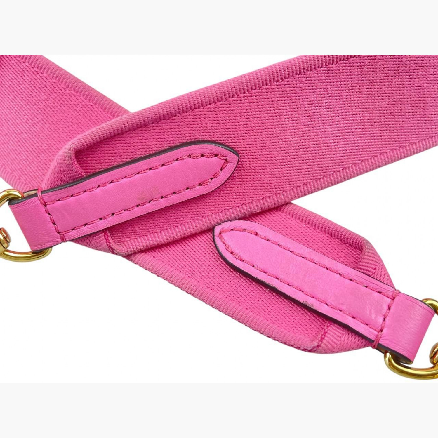 Розовый текстильный ремешок для сумки на карабинах, длина регулируемая. В очень хорошем состоянии, есть следы носки и пятна.