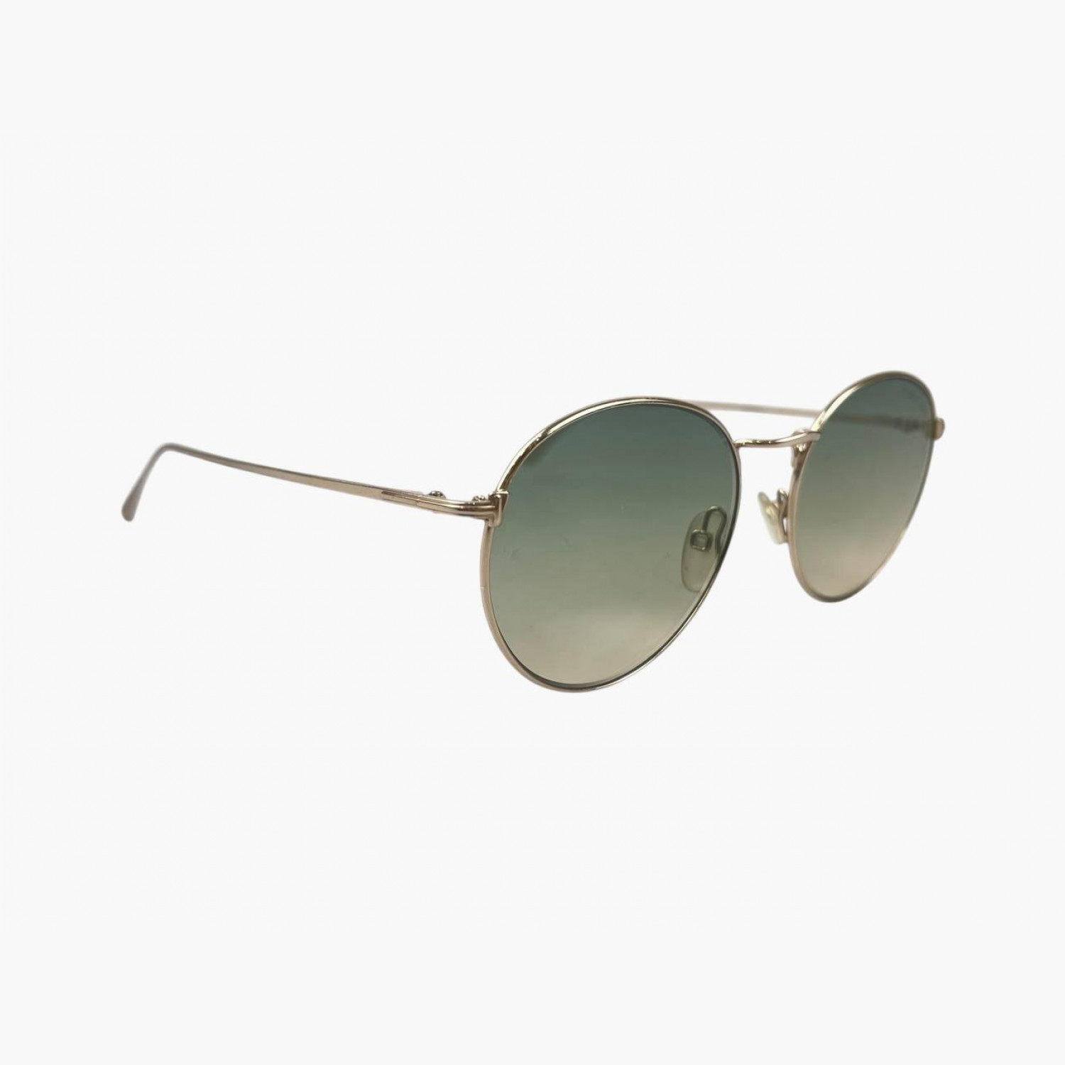 Полупрозрачные очки с линзами зелёного оттенка и тонкой металлической оправой. В комплекте — родной бархатный футляр. В хорошем состоянии, есть потертости и царапины на линзах.