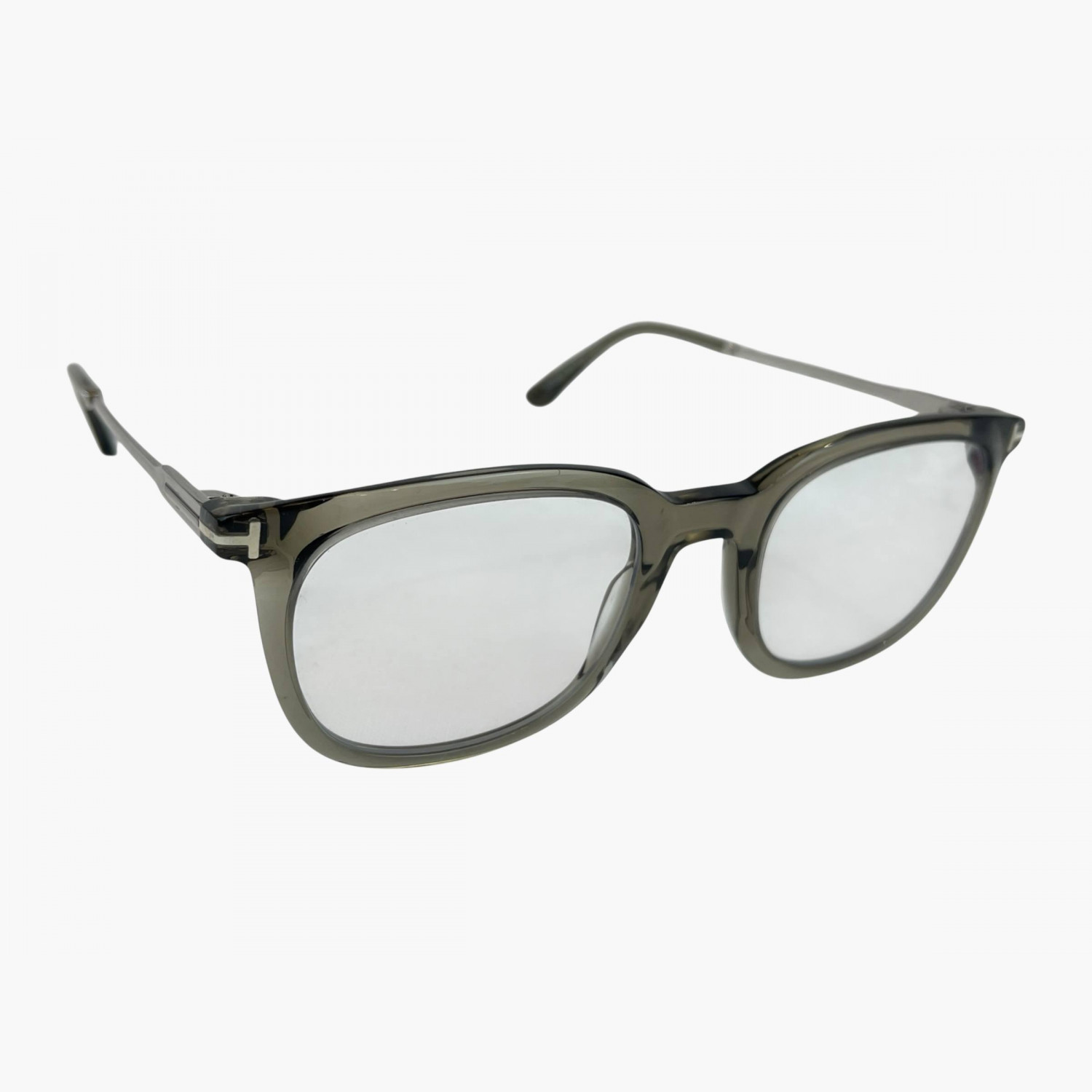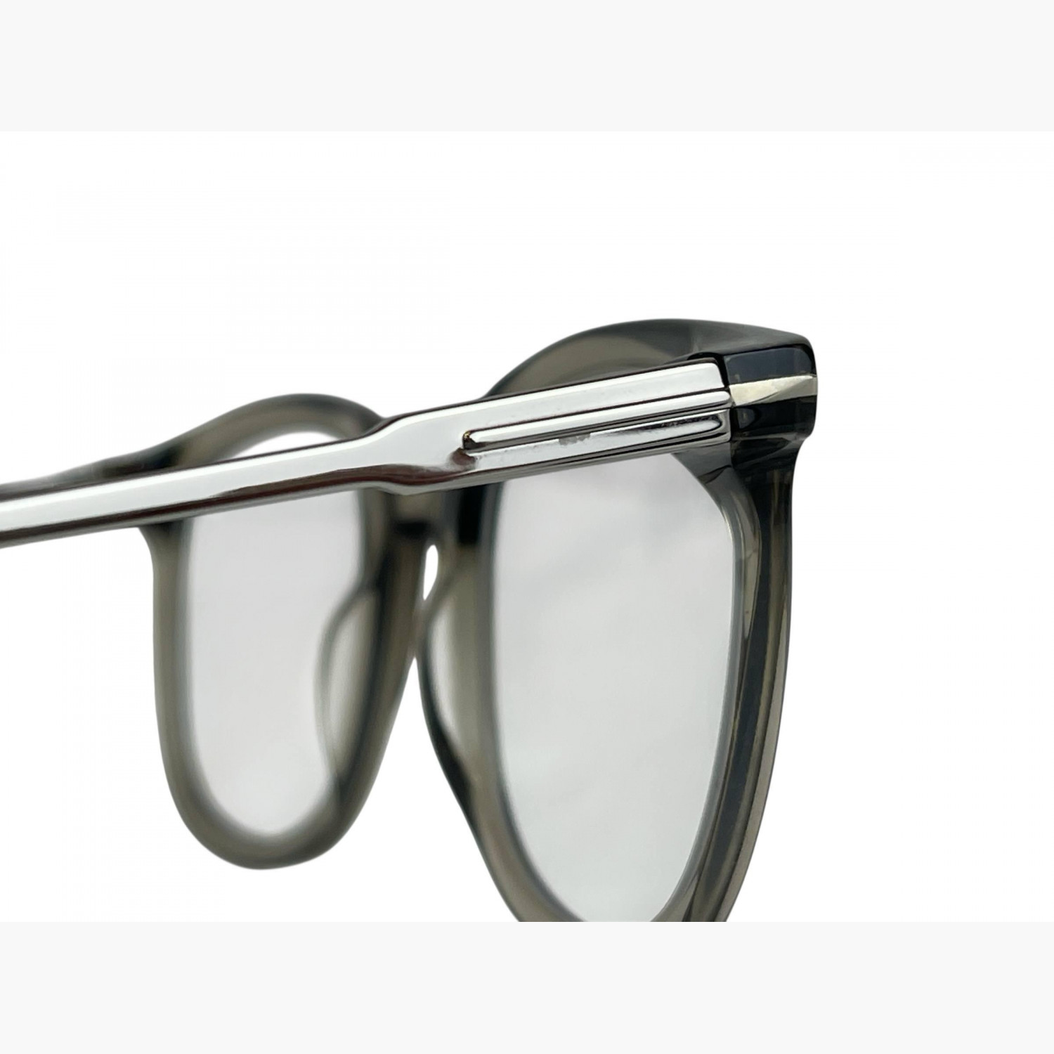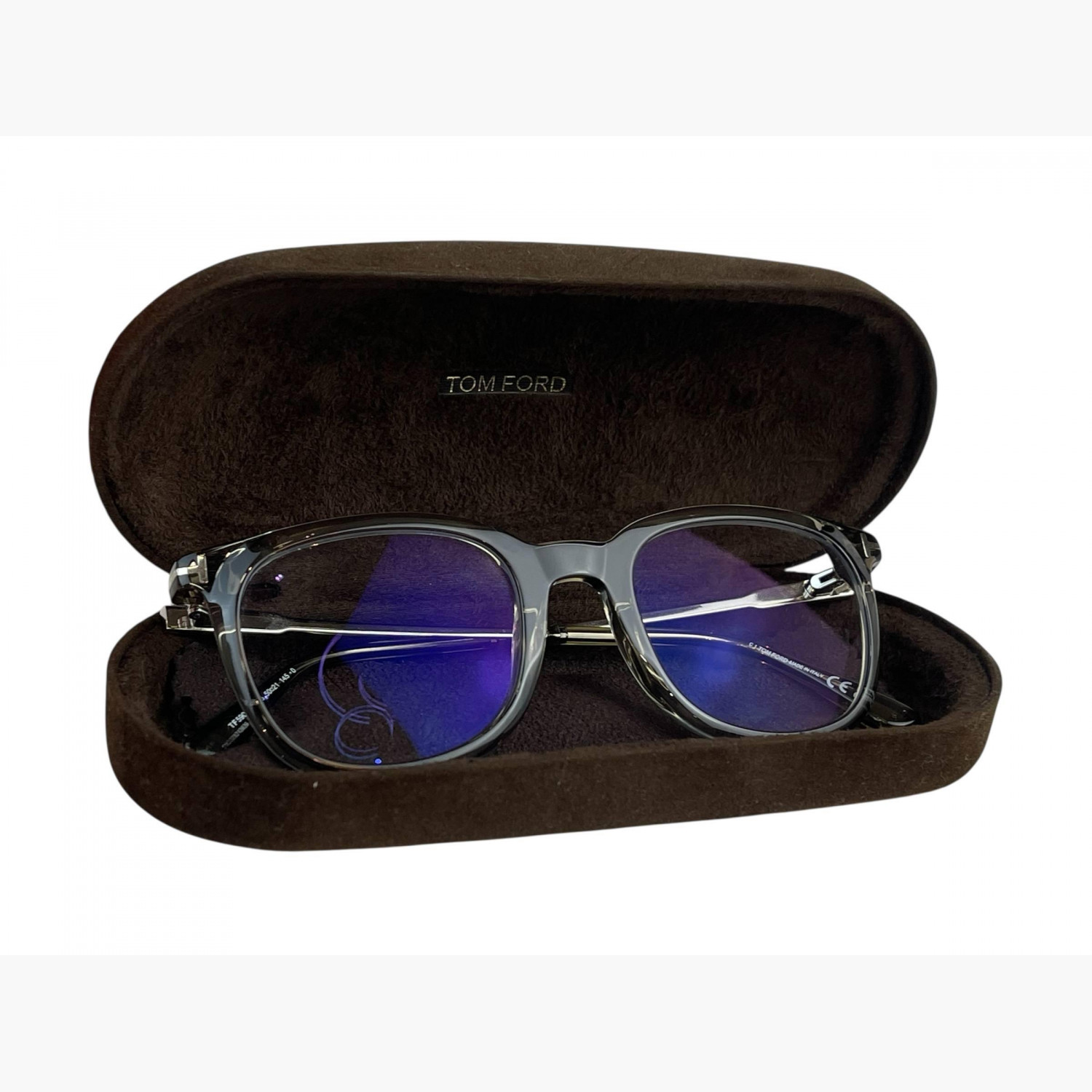Очки с прозрачными линзами и пластиковой тёмно-серой оправой. В комплекте — родной футляр и салфетка для протирания линз. В отличном состоянии, без значительных следов носки.