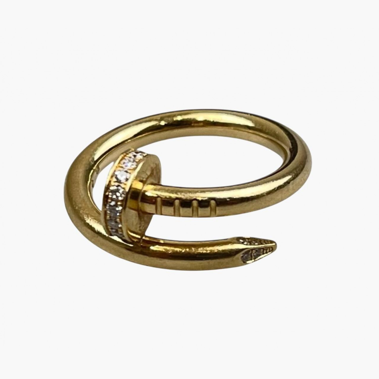 Кольцо выполнено из лимонного золота и бриллиантов. Есть родной футляр. Размер — 50. В хорошем состоянии, есть потёртости.