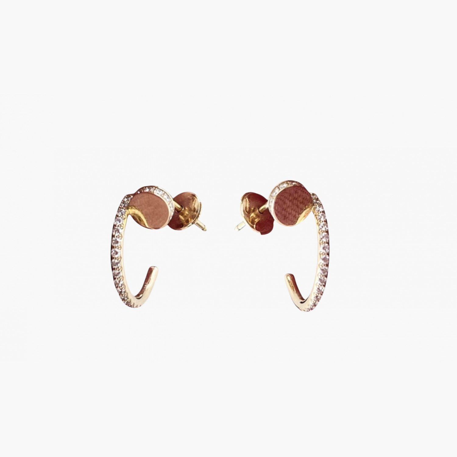 Серьги-пусеты из жёлтого золота с бриллиантами. В комплекте фирменный футляр. В отличном состоянии, без значительных следов носки.