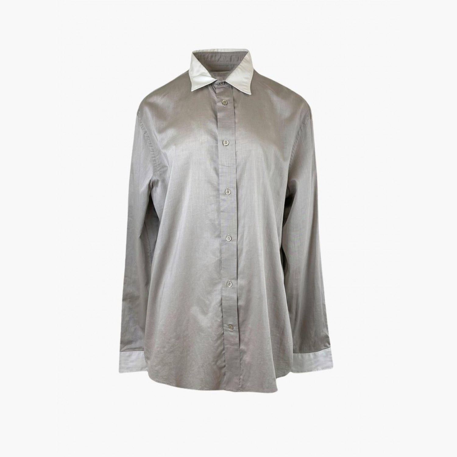 Серая хлопковая рубашка. В хорошем состоянии, есть следы носки.