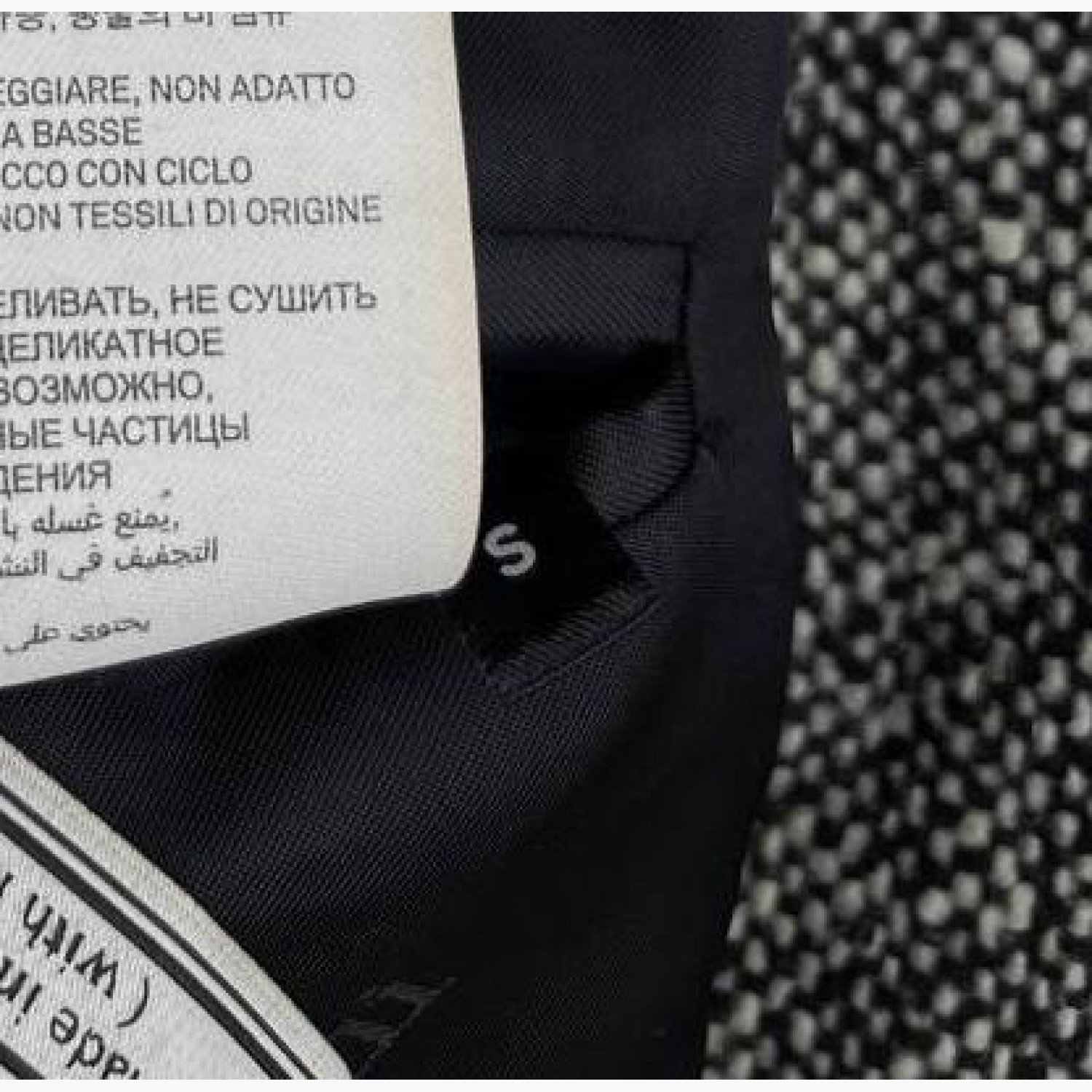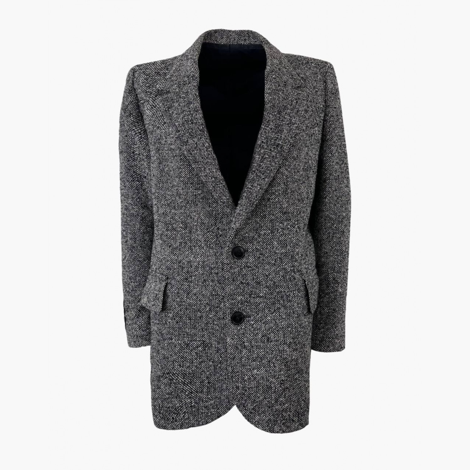 Чёрно-белый твидовый пиджак. Состав: основной материал — 77% шерсть, 23% нейлон; основная подкладка — 60% купро, 40% вискоза; карманная подкладка — 65% полиэстер, 35% хлопок. В отличном состоянии, есть незначительные следы носки.