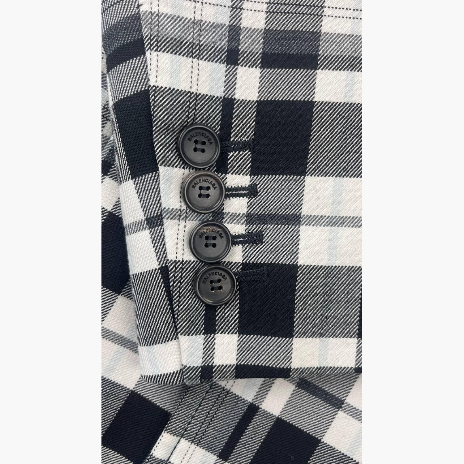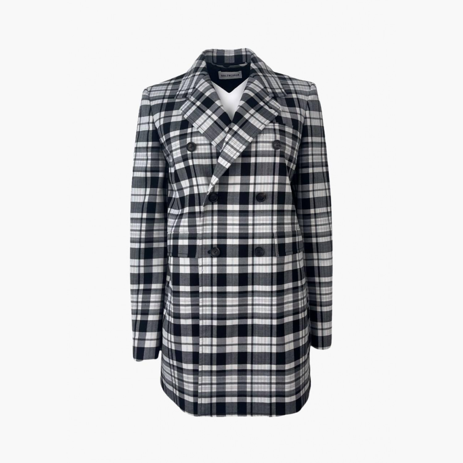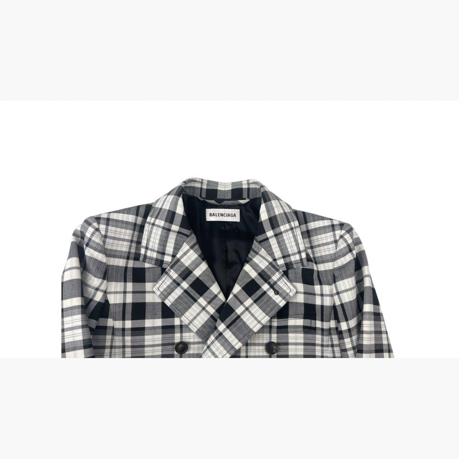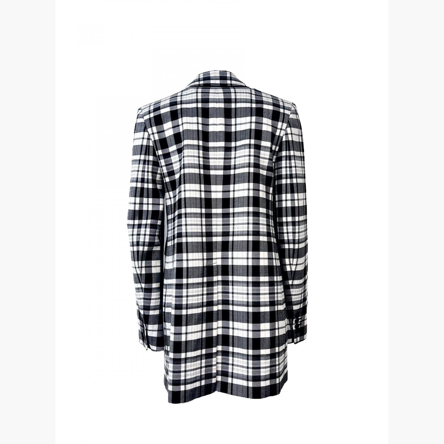 Черно-белый двубортный блейзер. В хорошем состоянии, есть незначительные следы носки.