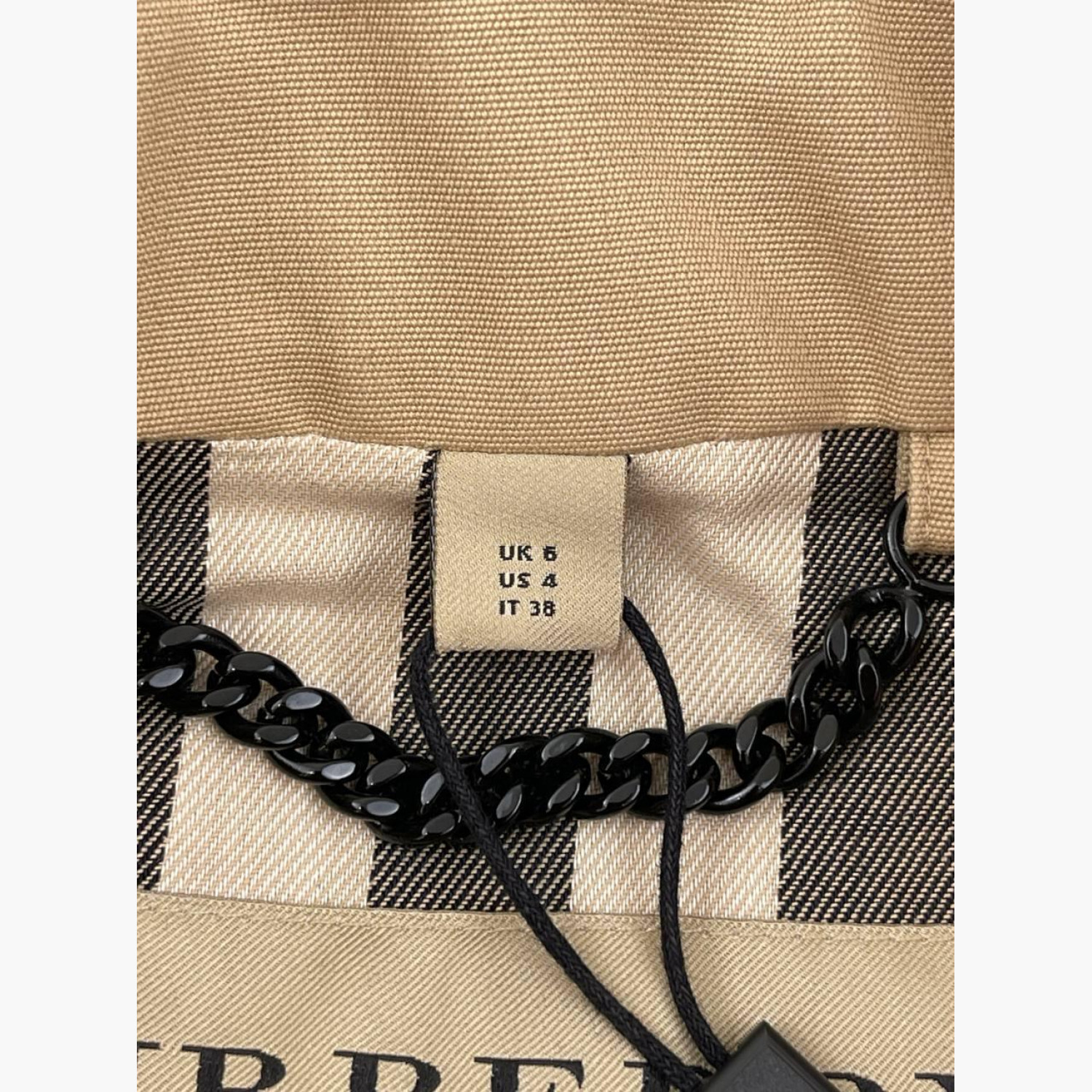 Бежевый двубортный укороченный тренч с поясом. Состав: основной материал — 65% полиэстер, 35% хлопок; подкладка рукава — 100% вискоза. Абсолютно новый, есть едва заметные следы носки.