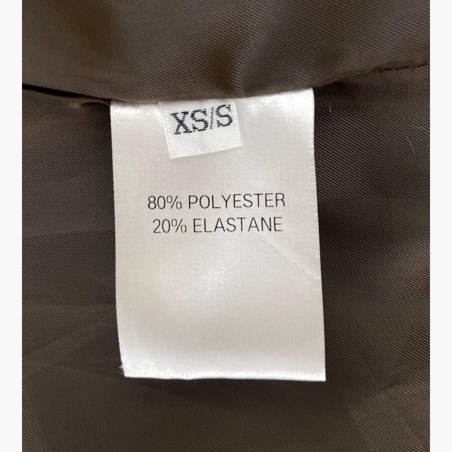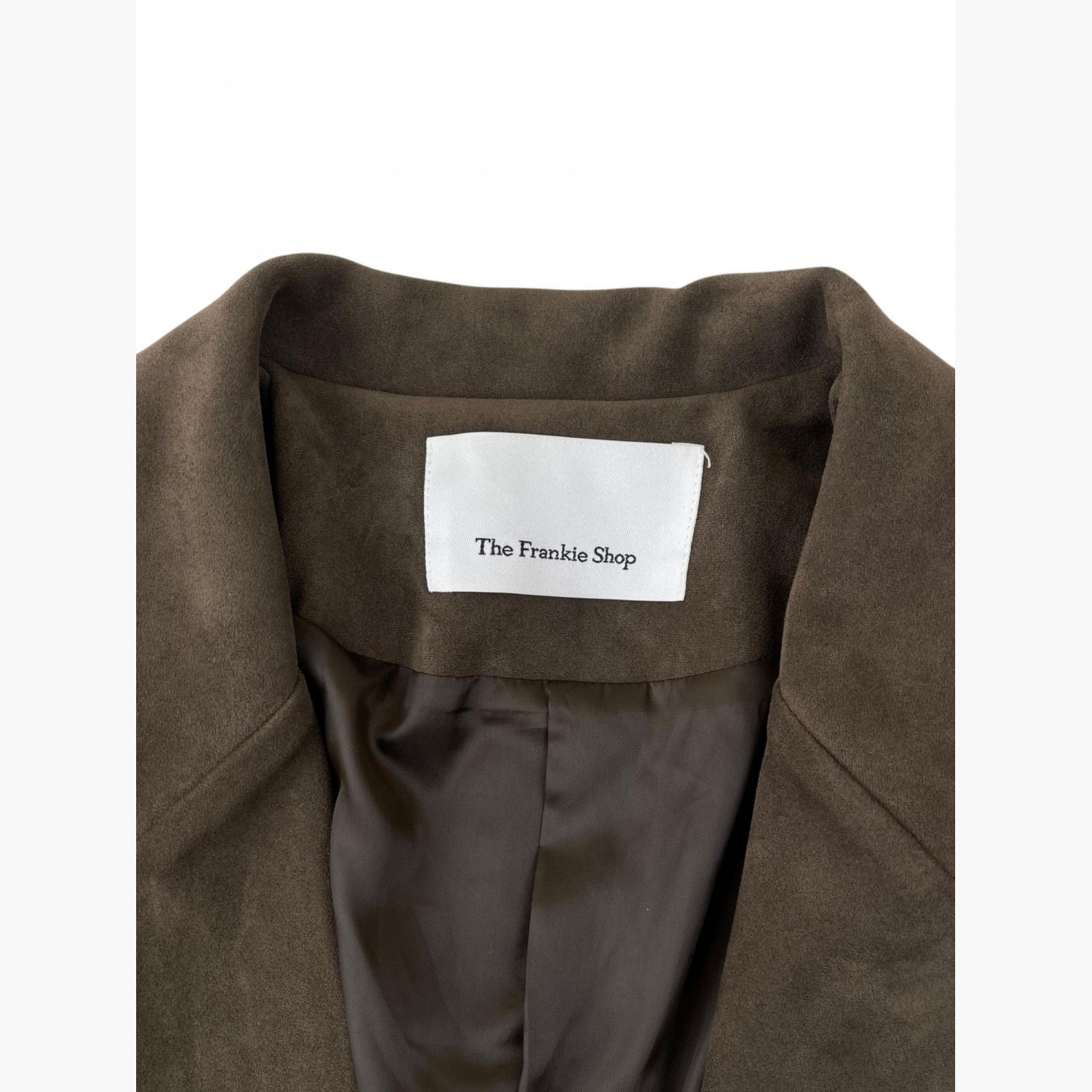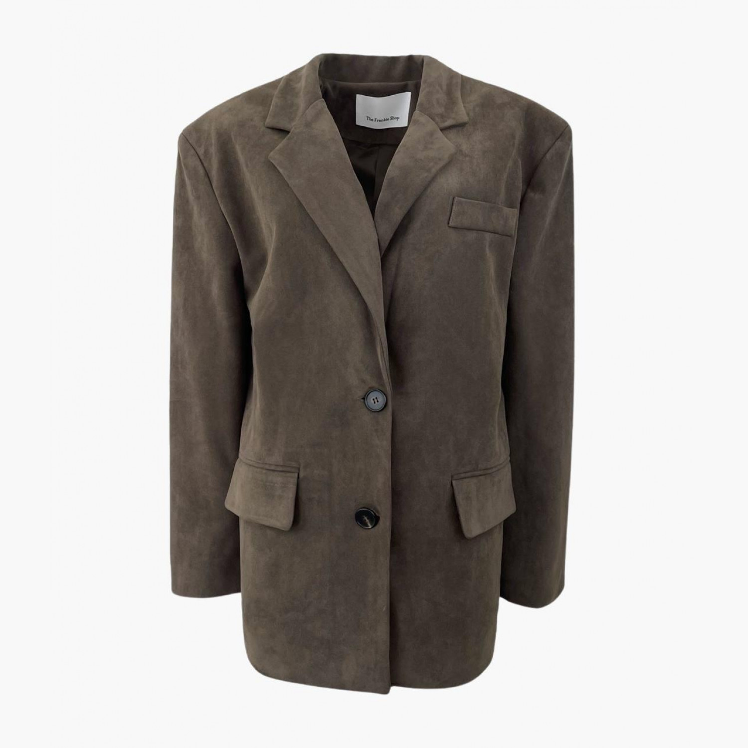 Графитовый жакет из замши на двух пуговицах. Состав: 80% полиэстер, 20% эластан. В хорошем состоянии, есть следы носки.