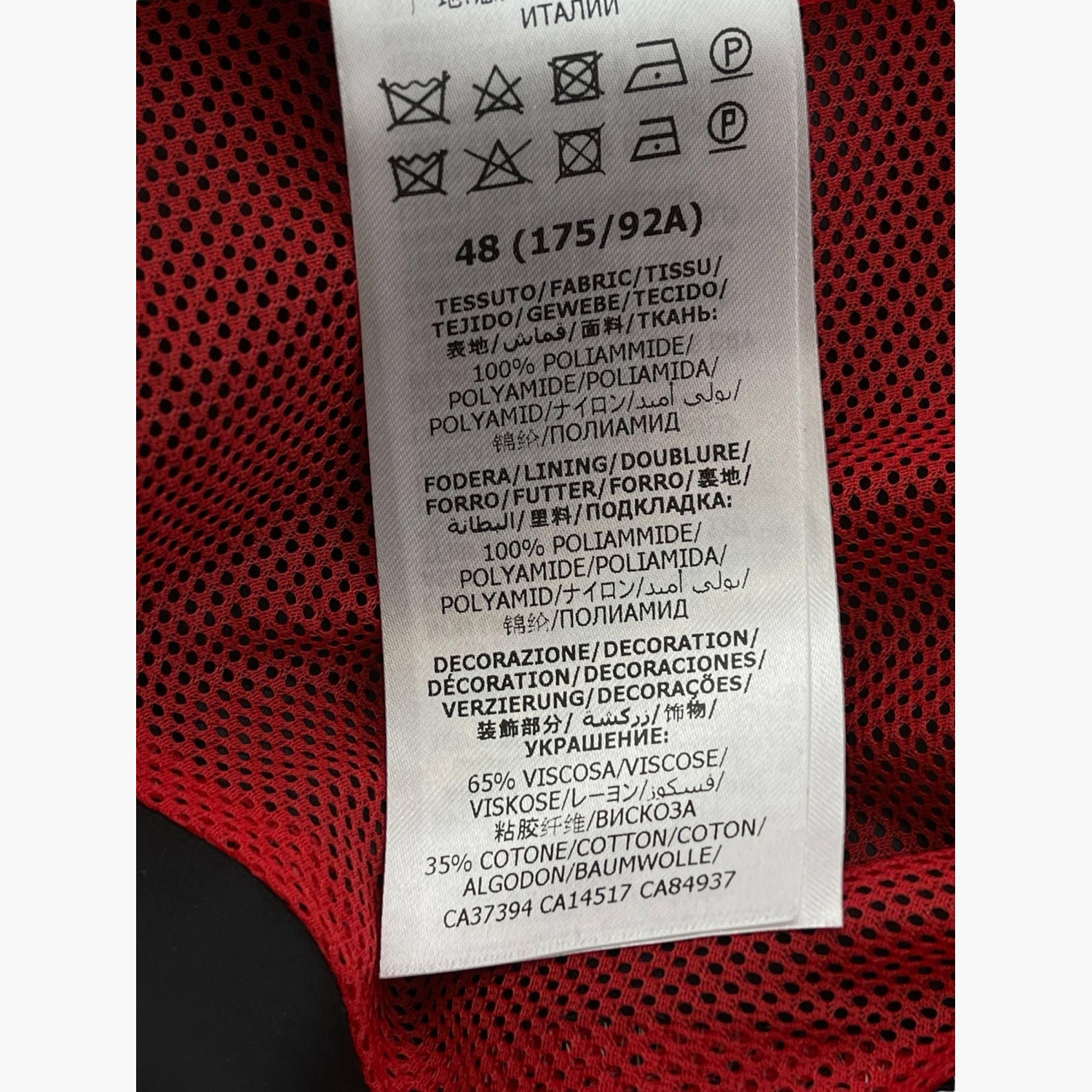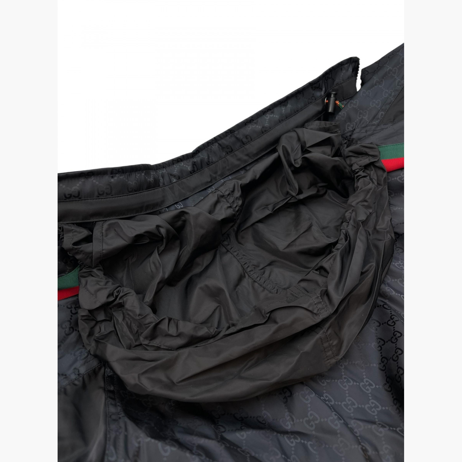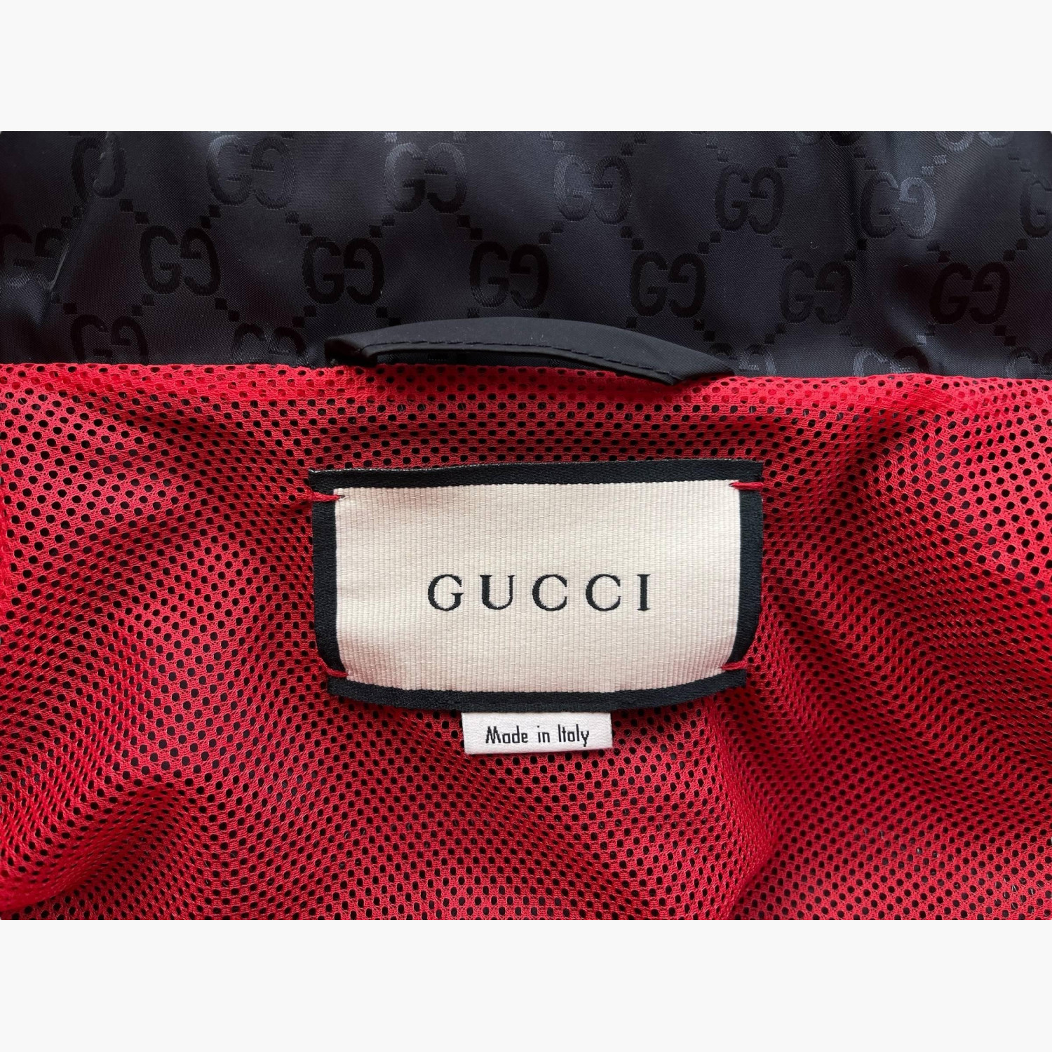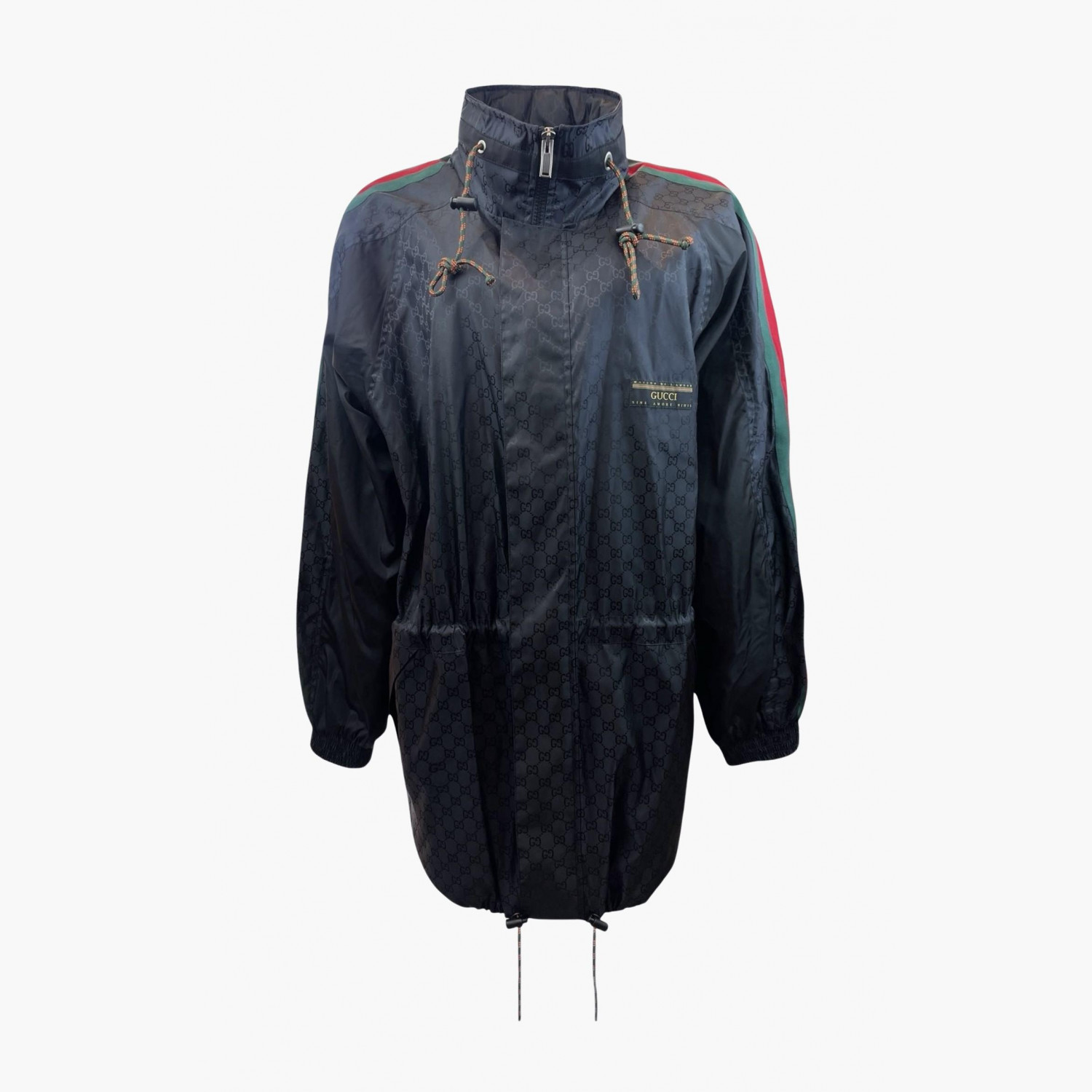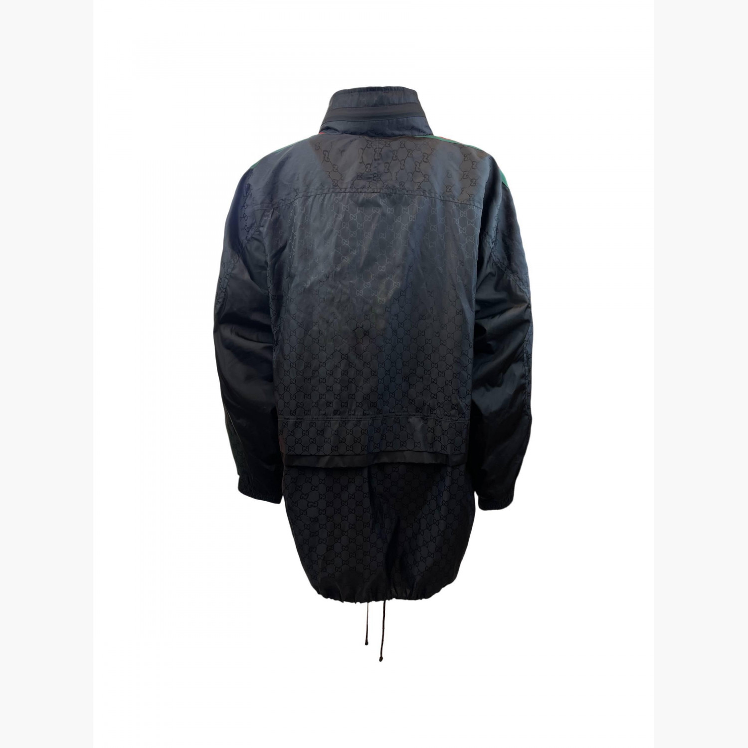 Тёмно-синяя ветровка с логотипом, с фирменными красно-зелёными полосками от плеч до низа рукавов, с потайным капюшоном.Состав: основной материал и подкладка — 100% полиамид; декор — 65% вискоза, 35% хлопок; аппликация — 100% полиэстер.В отличном состоянии, есть незначительные следы носки.
