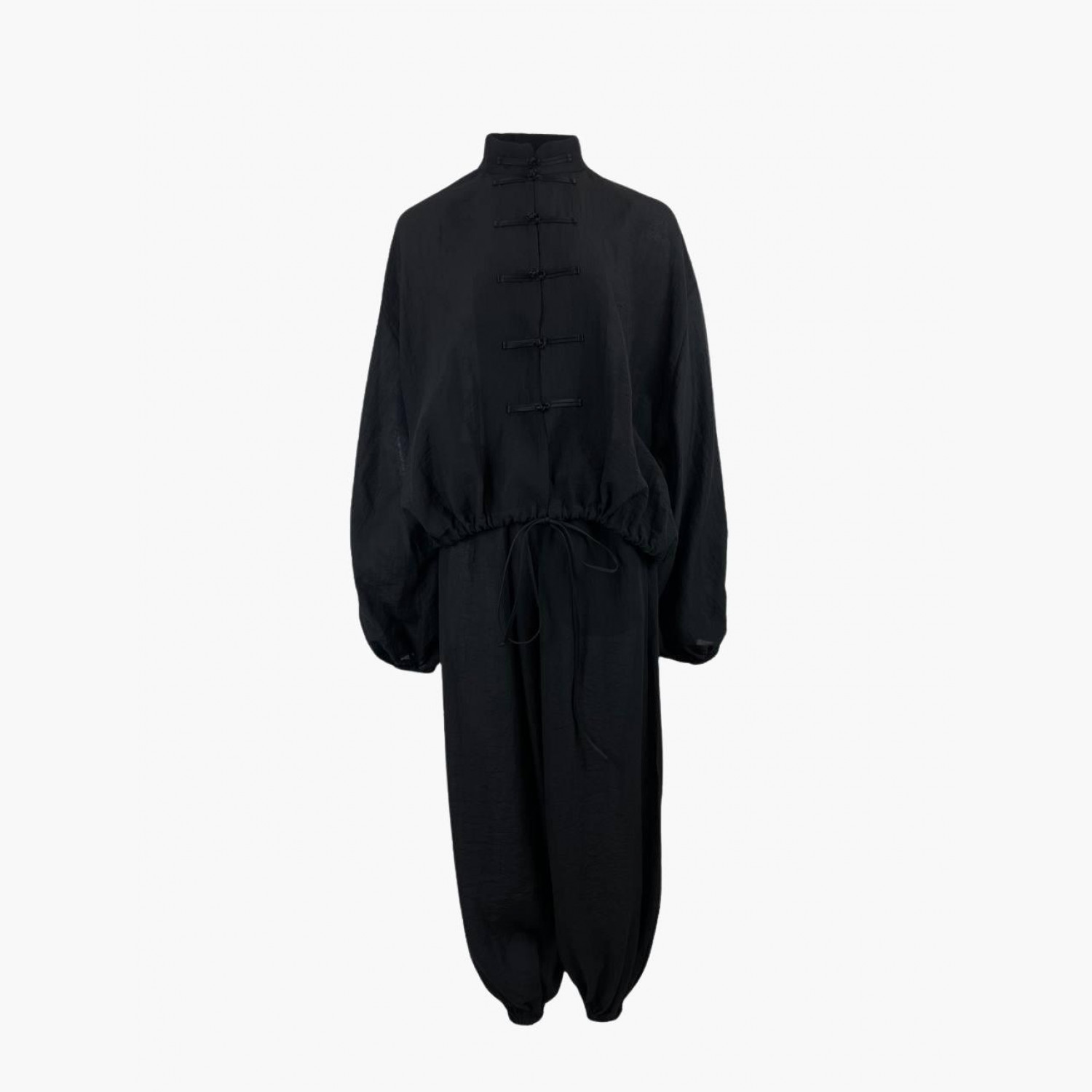 Костюм в японском стиле, манжеты блузки и брюк на резинке. Состав: 85% вискоза, 15% нейлон. В отличном состоянии, без следов носки.