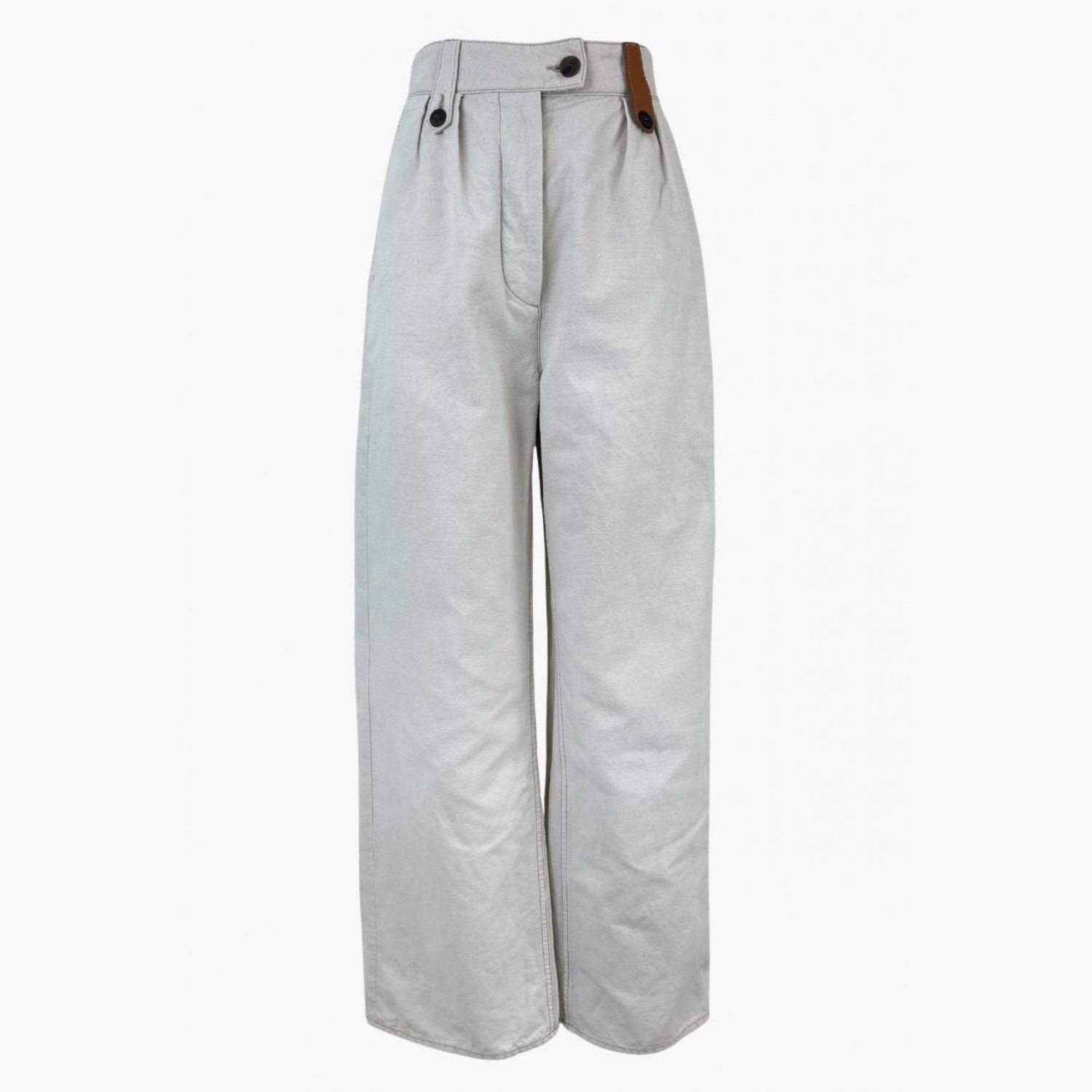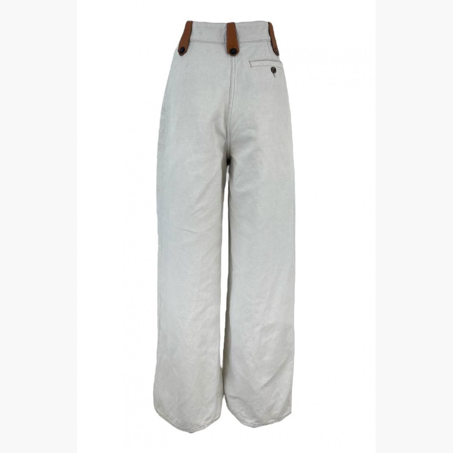 Белые широкие джинсы на высокой талии, с кожаными вставками. Состав: 61% хлопок, 39% лен. В отличном состоянии.