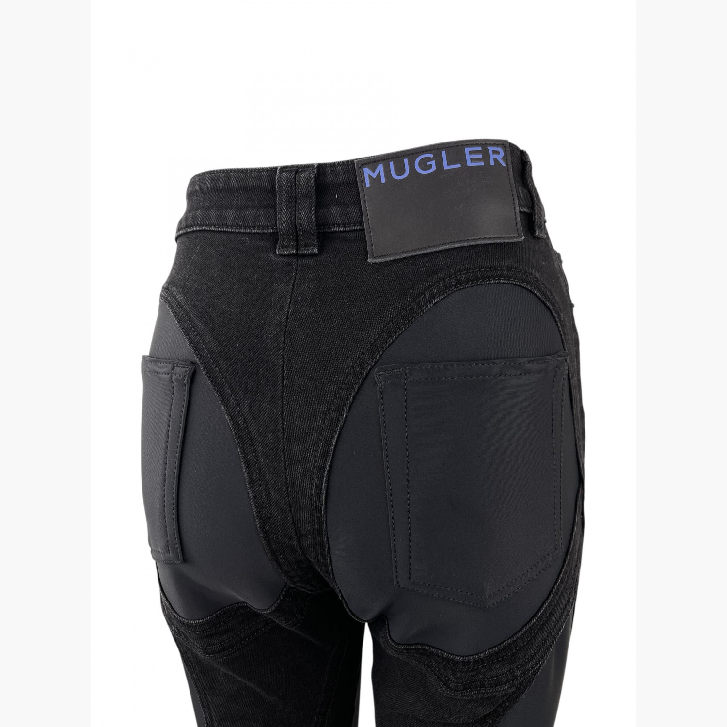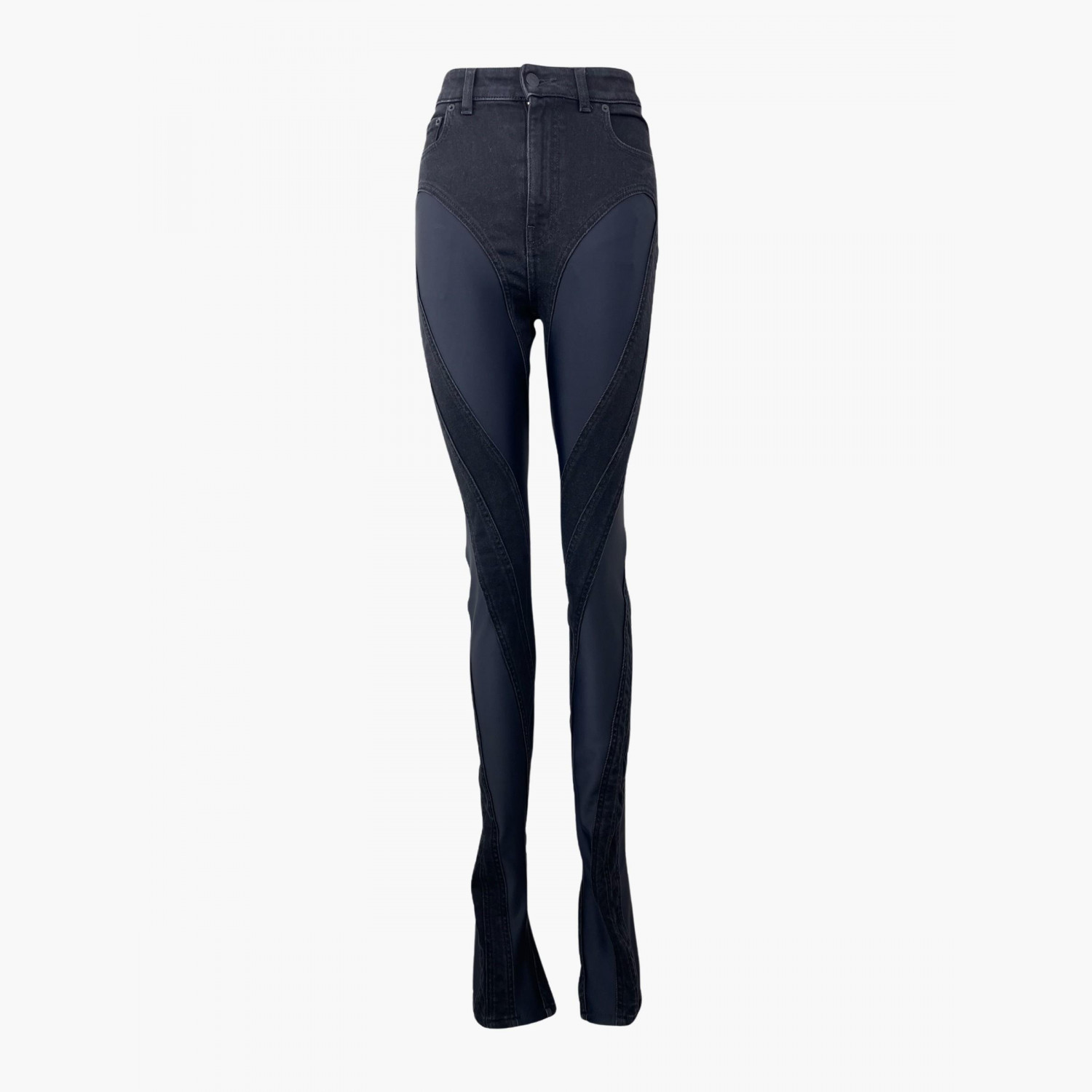 Черные джинсы с текстильными вставками. Состояние идеальное, есть незначительные следы носки.