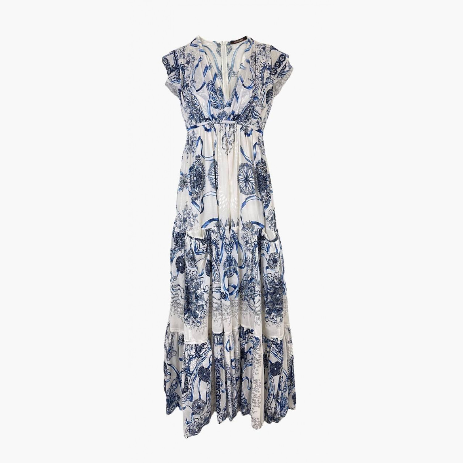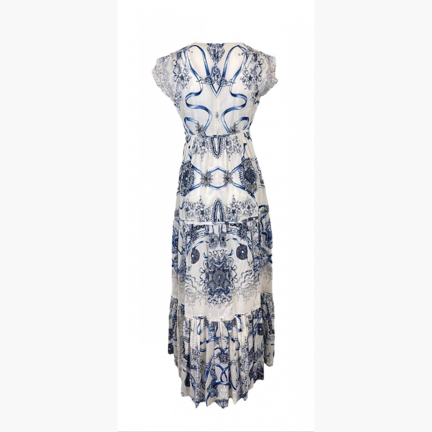 Белое длинное хлопковое платье с V-образным вырезом декольте и на молнии. В отличном состоянии, без следов носки.