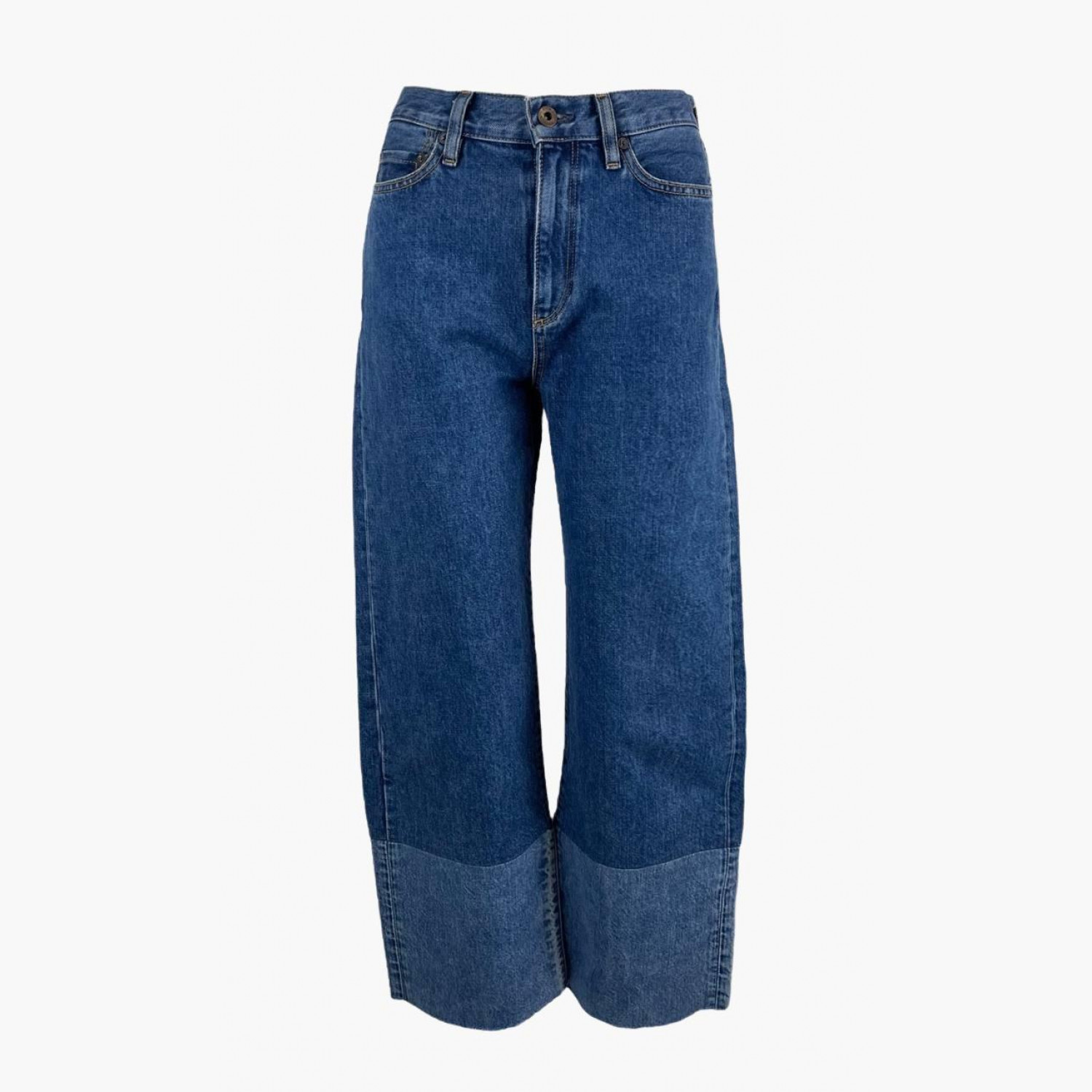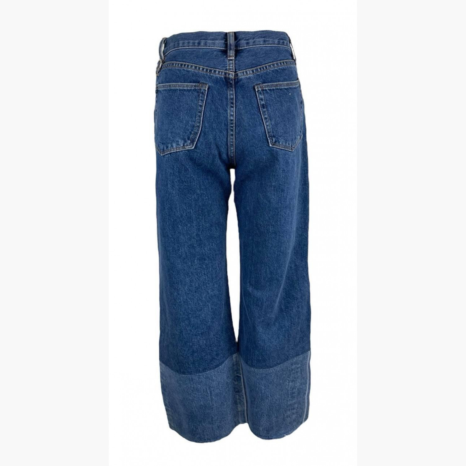 Широкие голубые джинсы со светло-голубыми вставками внизу и необработанными краями. В отличном состоянии, без следов носки.