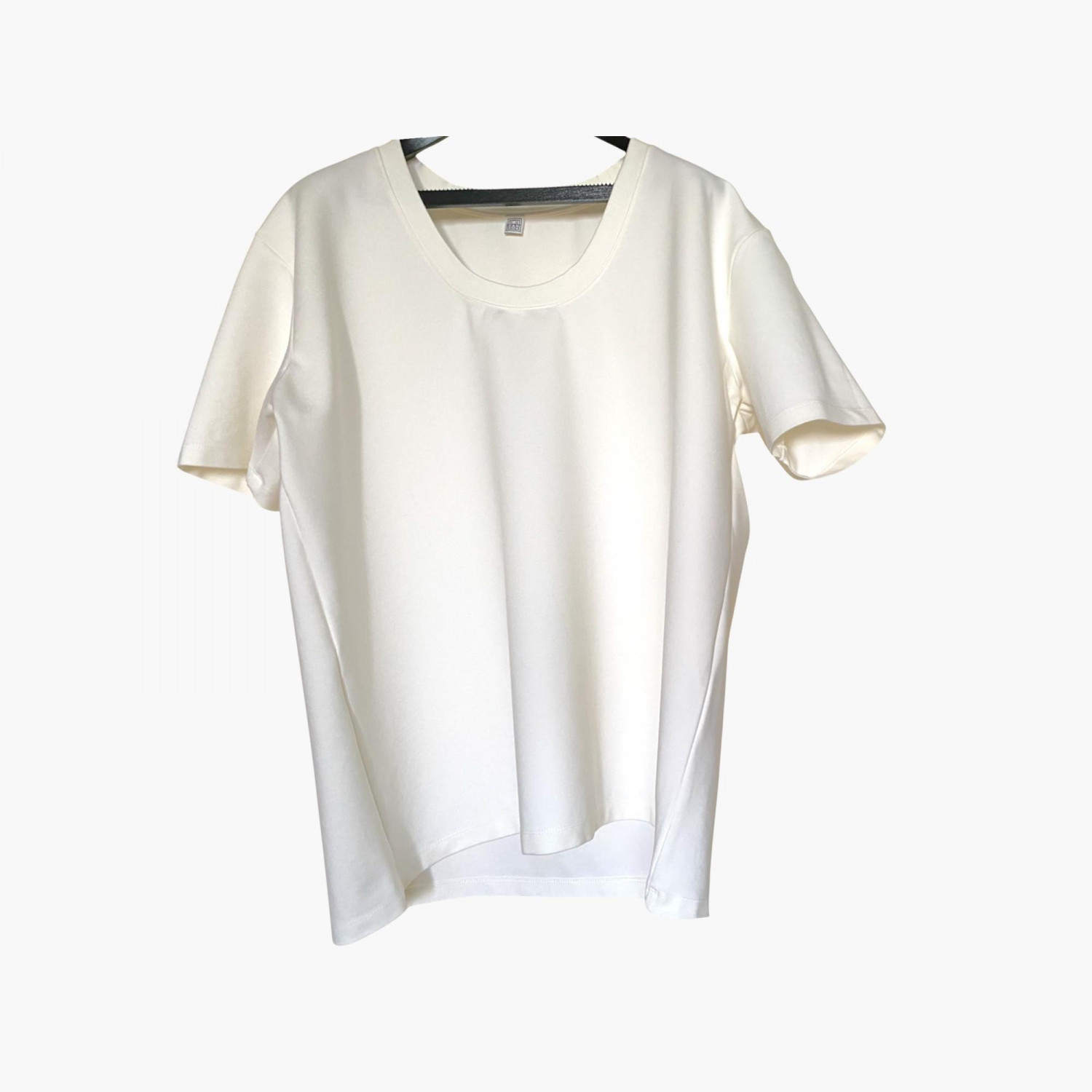 Heavy oversized tee. Глубокий овальный вырез спереди. Материал имеет приятную тяжесть и едва заметный шелковистый блеск. Крой оверсайз, подойдет на L. Состояние идеальное, не была в употреблении.
