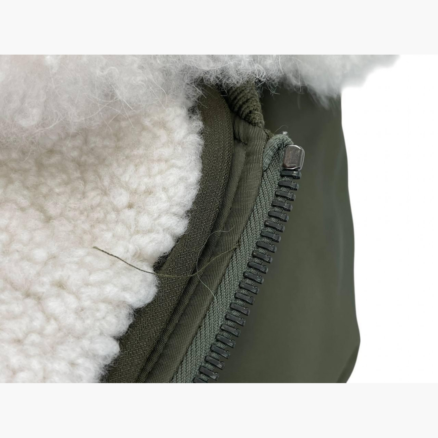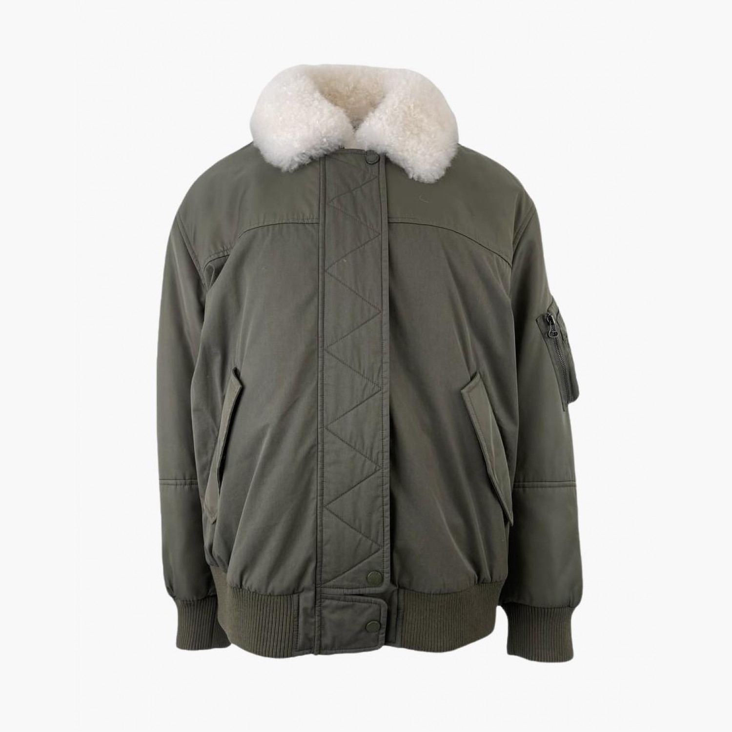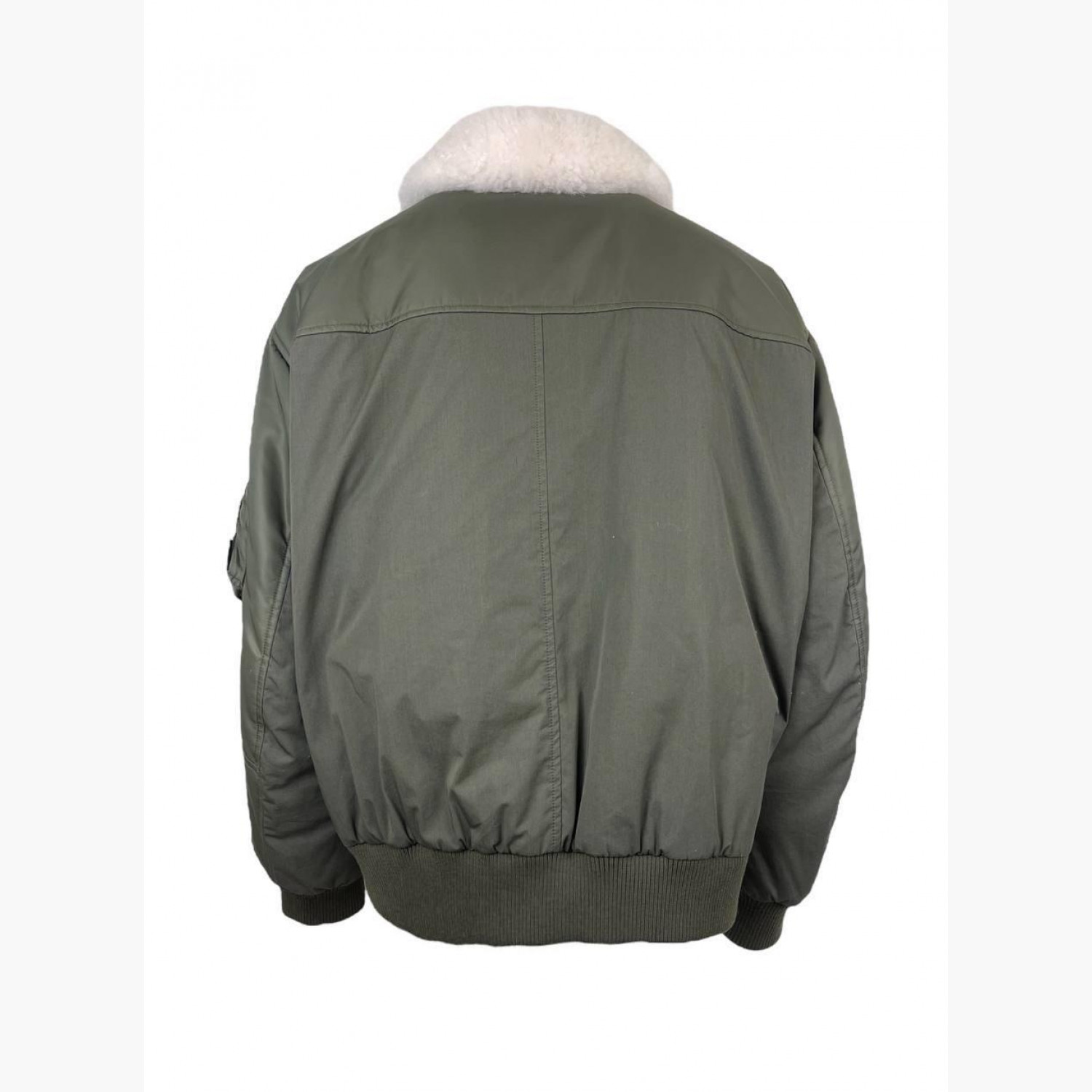 Бомбер цвета хаки с меховым воротником, с биркой. В очень хорошем состоянии, есть незначительные следы носки.
