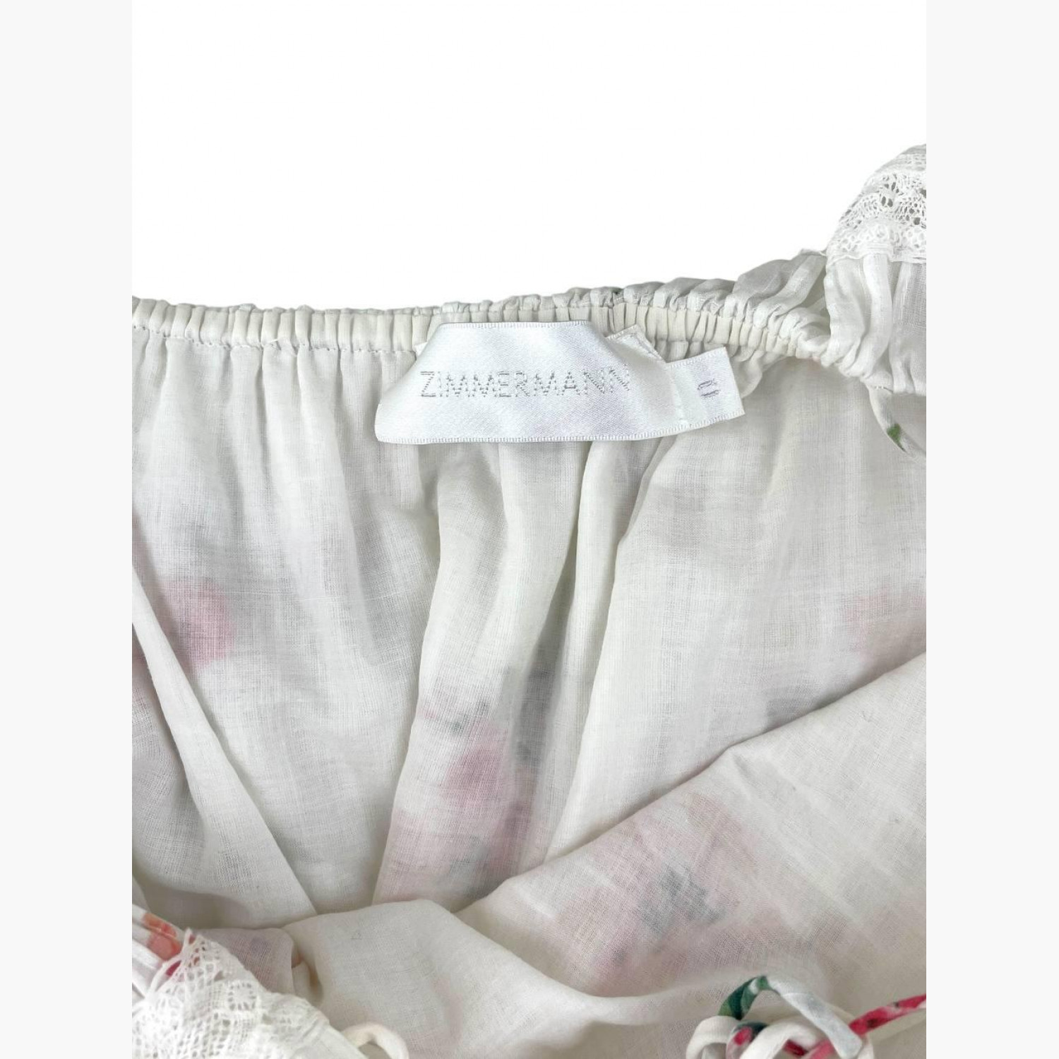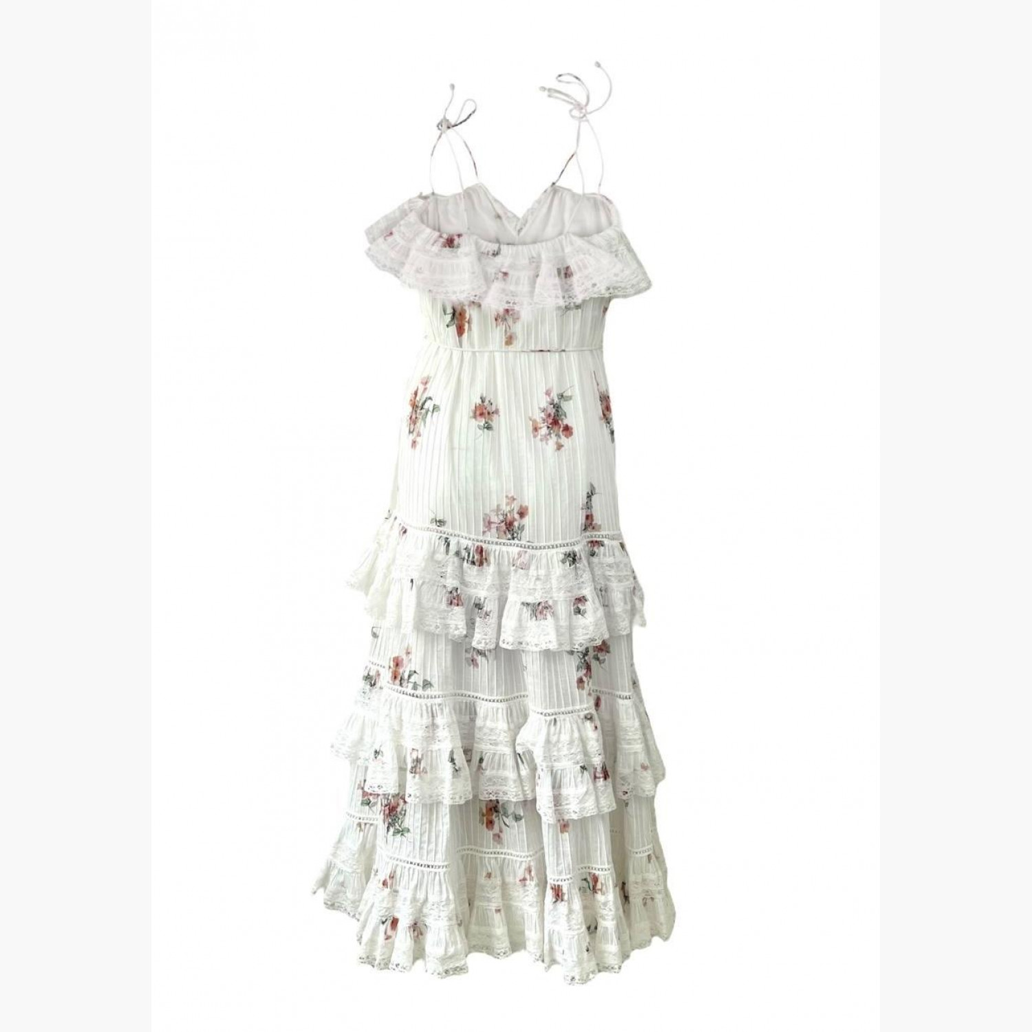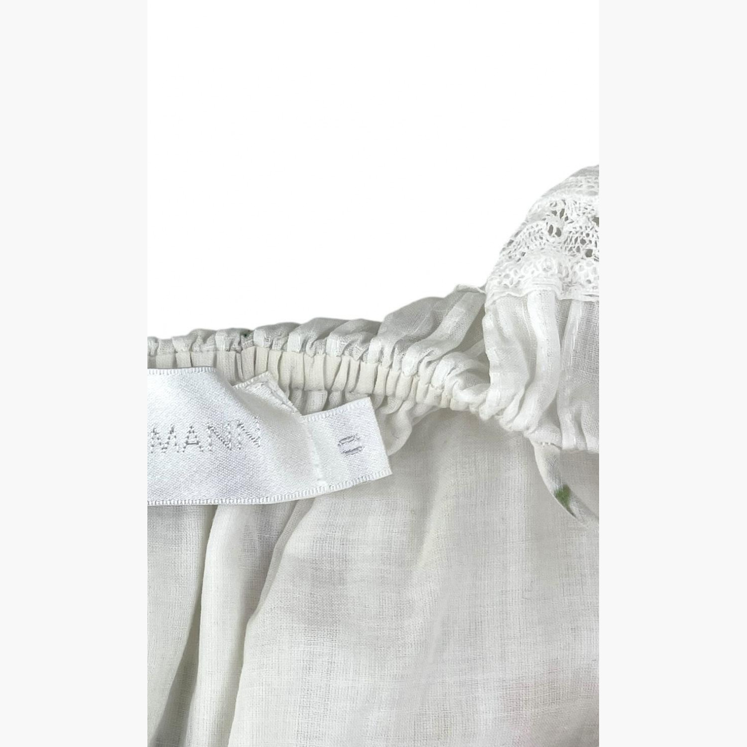 Белое платье с гипюровыми вставками в цветочном принте на бретельках. Состав: основной материал — 100% хлопок; подкладка — 100% хлопок. В очень хорошем состоянии, есть незначительные следы носки.